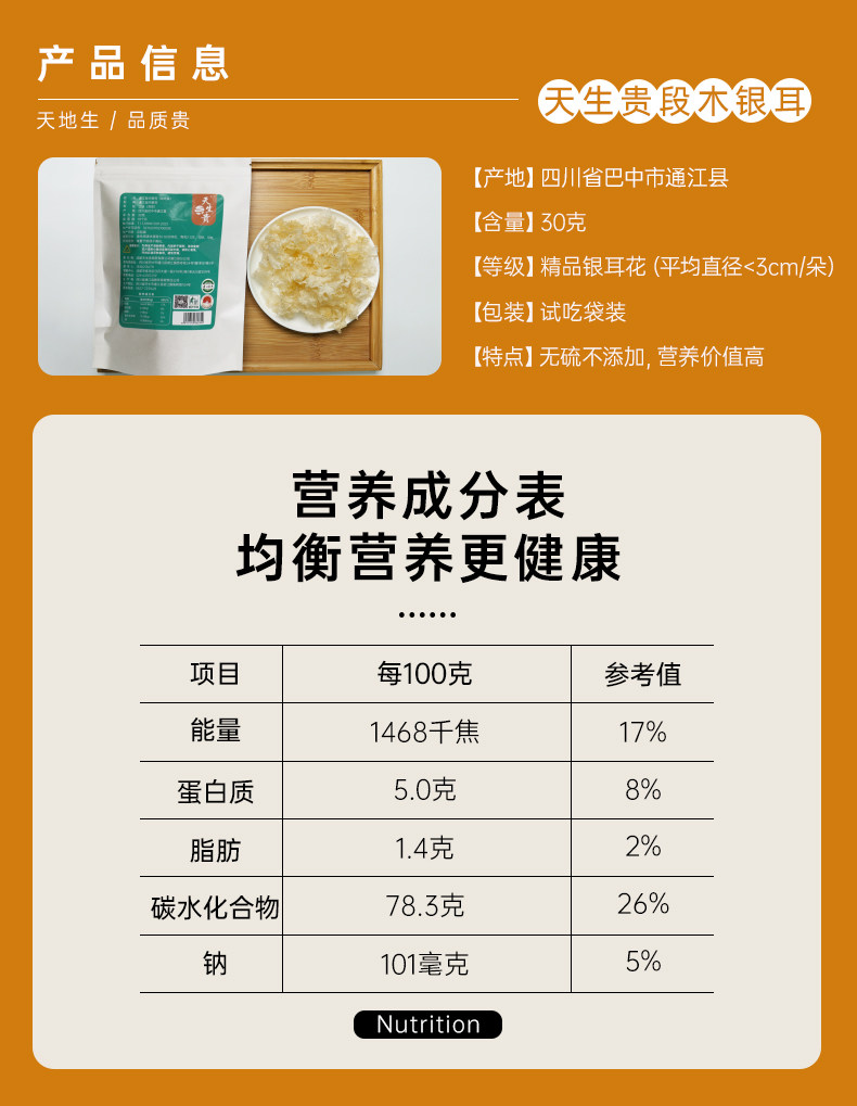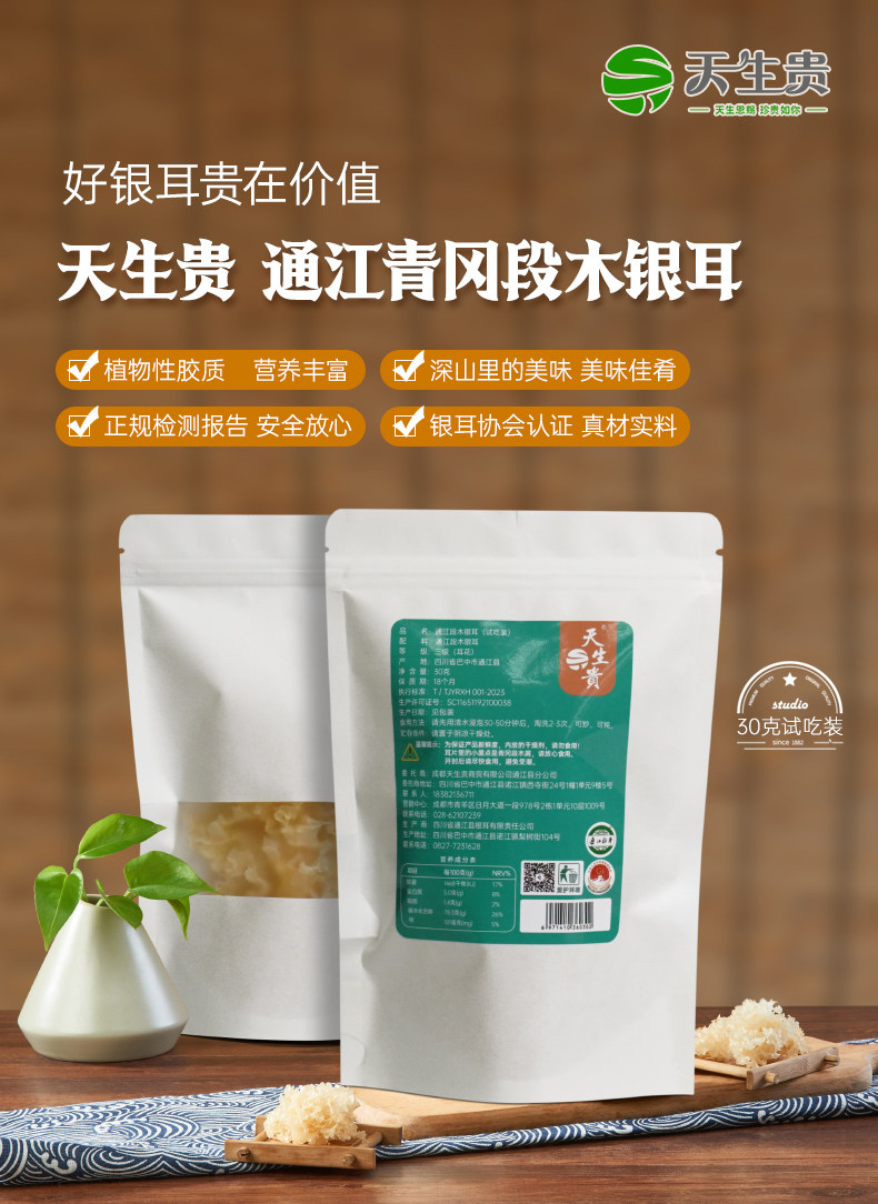 Naturally Premium Tongjiang Tremella, a Local Specialty from Bazhong, Sichuan, Sulfur-Free Glutinous Tremella for Pregnant Women [Tasting Pack] 30g