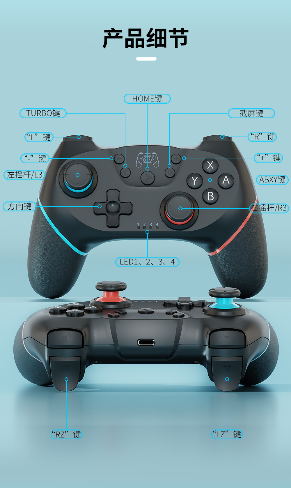 Honcam Switch Controller Ns Nintendo Switchpro Domestic Lite Game Motion Sensing Nspro Wireless Bluetooth Pc Computer Steam Oled Accessories USB Animal Crossing