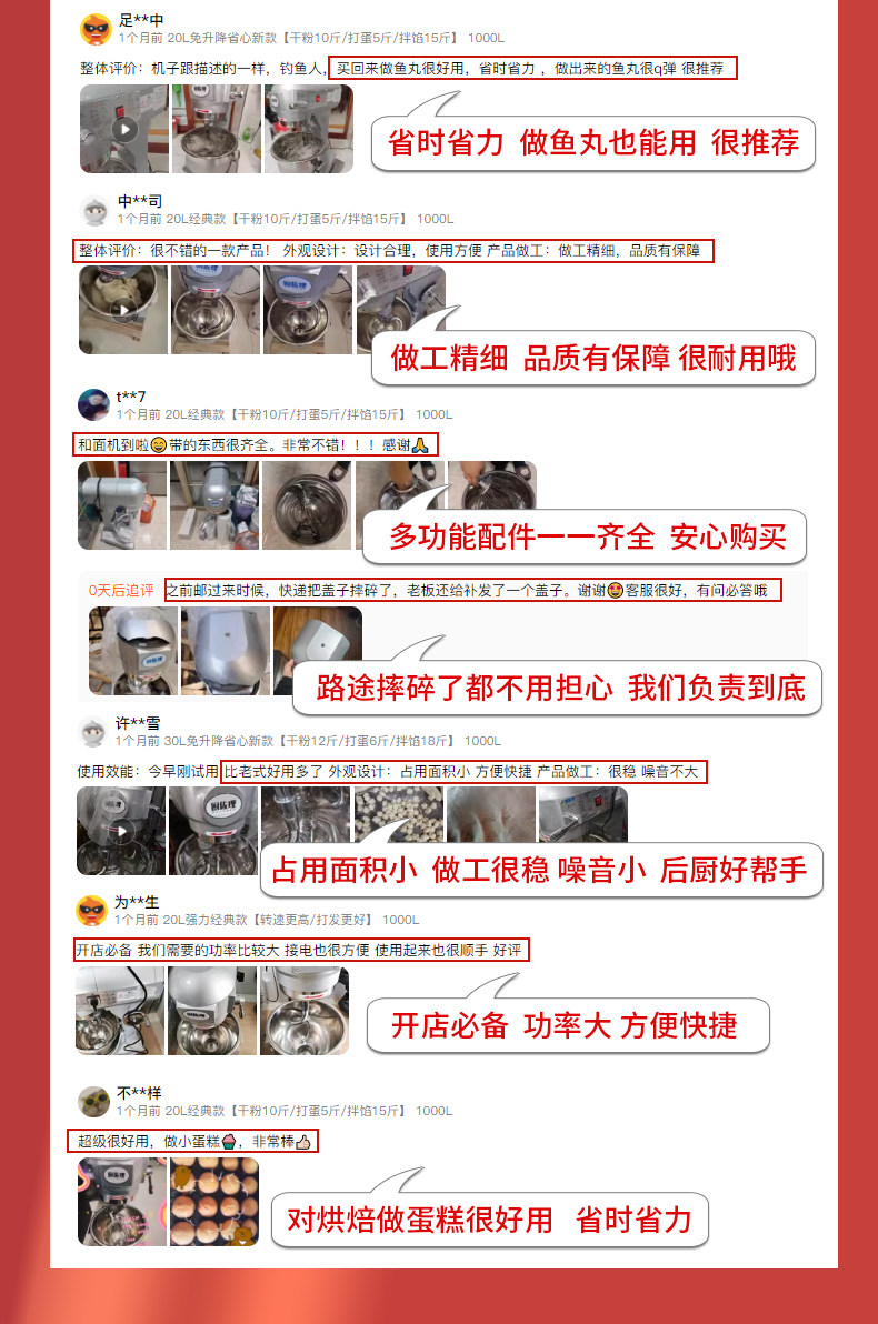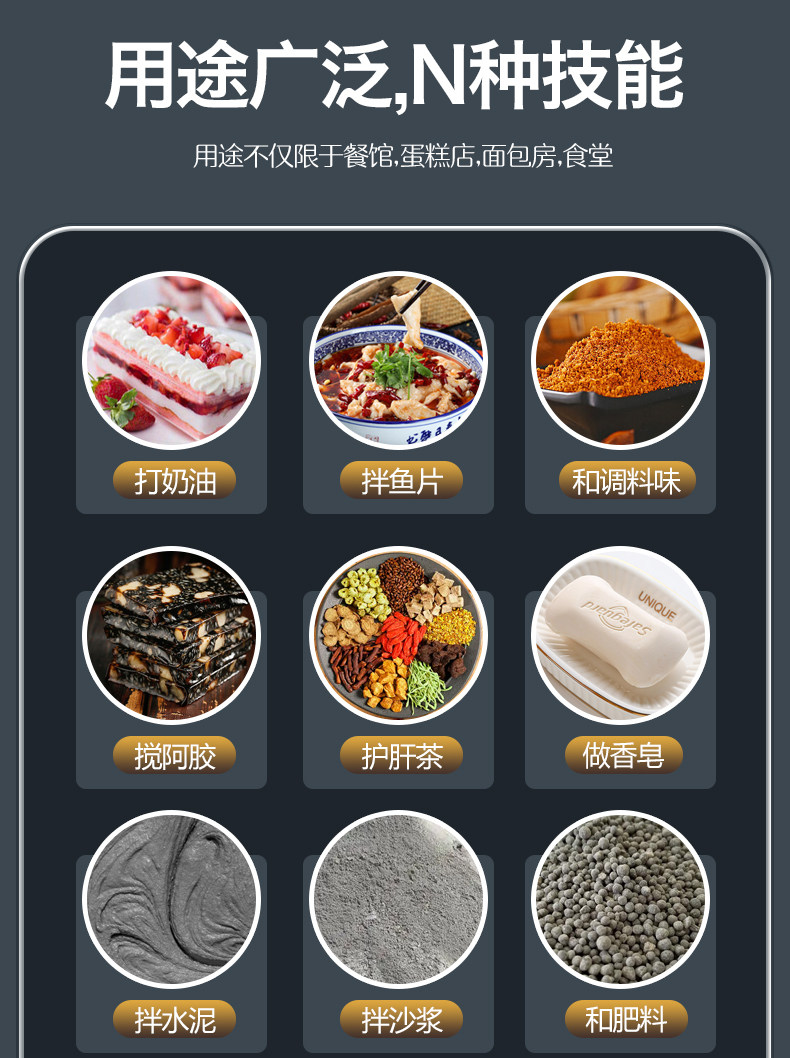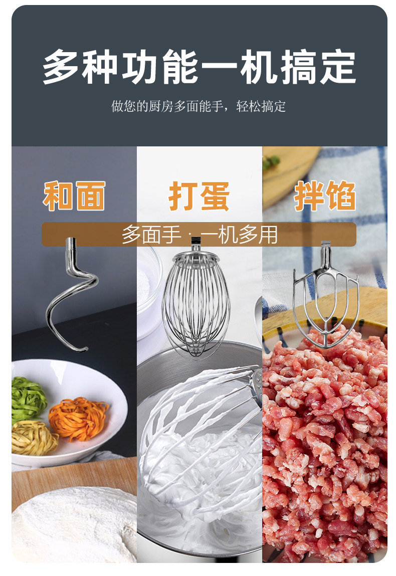 | Color Classification | B10 Classic [Dry Powder 1.0kg / Mixed Filling 2.25kg],B10 Three-Speed High-Speed Model [Dry Powder 1.0kg / Egg Beating 0.75kg / Filling Mixing 2.25kg],B15 Classic [Dry Powder 1.5kg / Mixed Filling 2.25kg],B15 Three-Speed High-Speed Model [Dry Powder 1.5kg / Egg Beating 0.75kg / Filling Mixing 2.25kg],B20 Classic [Dry Powder 5kg / Egg Beating 2.5kg / Stuffing 7.5kg],B20 Strong Classic Model [Higher Speed/Better Beating],B20 Protective Cover Classic Model [Open the Cover and Stop to Make It Safer],B30 Classic [Dry Powder 6kg / Egg Beating 3kg / Stuffing 9kg],B30 Protective Cover Classic Model [Open the Cover and Stop for More Safety],↓↓↓The Following Upgrades Are Free of Lifting and Lowering, and the Material Bucket Can Be Put on and Used↓↓↓,B10 Free Lifting and Worry-Free New Model [Dry Powder 1.0kg / Egg Beating 0.75kg / Filling Mixing 2.25kg],B20 Free Lifting and Worry-Free New Model [Dry Powder 5kg / Egg Beating 2.5kg / Filling Mixing 7.5kg],B20 Powerful, No-Lift, Worry-Free New Model [Higher Rpms/Better Whipping],B30 Free Lifting and Worry-Free New Model [Dry Powder 6kg / Egg Beating 3kg / Filling Mixing 9kg],B30 Strong Lift-Free and Worry-Free Model [Dry Powder 8kg / Egg Beating 3kg / Filling Mixing 11kg],Capacity of 1000L Is a System-Mandatory Field. Orders Will Be Shipped According to the Color and Model Selected,Material Bucket, Dough Hook, Mixing Paddle, Egg Cage |