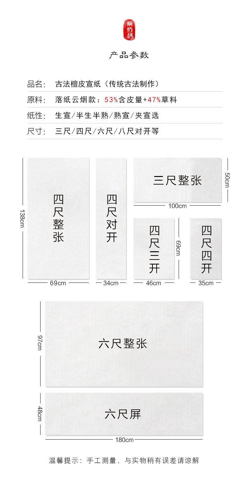 | Color Classification | [Clearance Sale! Buy $1, Get $1 Free!],[10-Year Aged Paper. Supports In-Hand Testing. Returns Accepted if Unsatisfied],[Anhui Time-Honored Brand Origin Certification],133.2cm Whole Sheet-50 Sheets (70*138cm),133.2cm Whole Sheet-100 Sheets (70*138cm),133.2cm Screen-100 Sheets (34*138cm),133.2cm Three Pages-200 Sheets (46*69cm),133.2cm Quarto-200 Sheets (34*69cm),99.9cm Whole Sheet-100 Sheets (50*100cm),199.8cm Screen-50 Sheets (47*178cm),199.8cm Whole Sheet-50 Sheets (97*180cm),133.2cm Double-Layer Sandwich-50 Sheets (70*138cm) |
