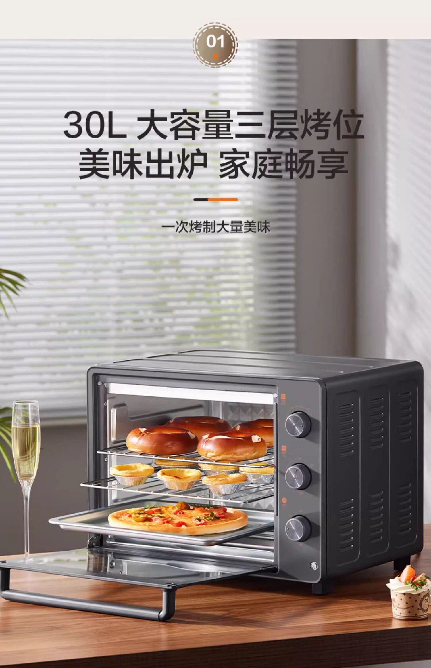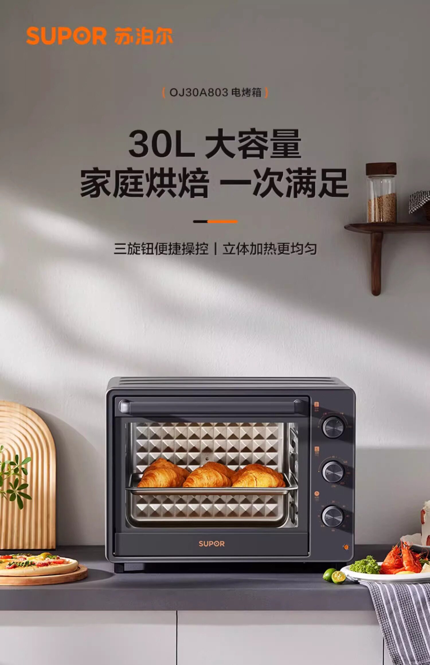 Supor Oven for Home Use, Small Multifunctional Baking Oven, 30-Liter Large Capacity Electric Oven with Steaming Function, New Model
