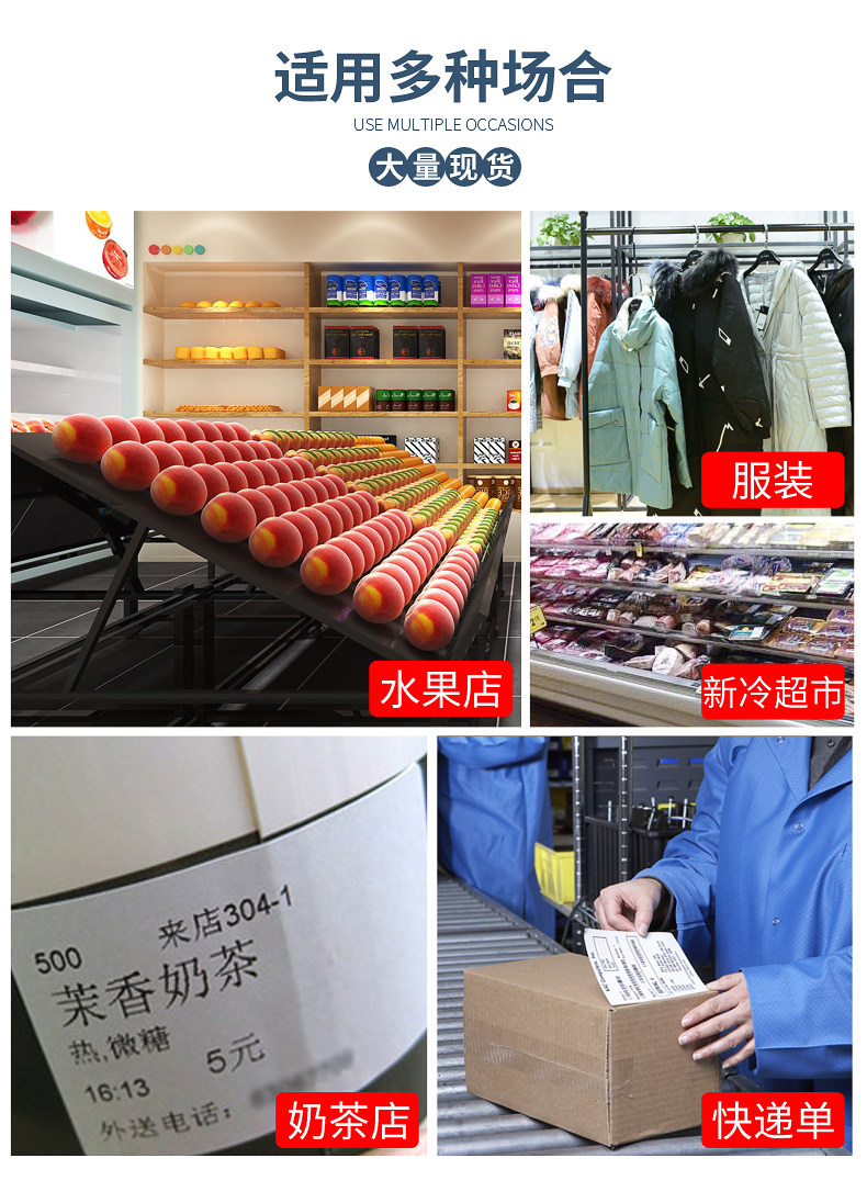 | Color Classification | 20*10*10100 Sheets*1 Roll of Four-Column Thermal Paper,25*15*8500 Sheets*1 Roll of Three-Column Thermal Paper,30*20*6500 Sheets*1 Roll of Three-Column Thermal Paper,32*19*6500 Sheets*1 Roll of Three-Column Thermal Paper,30*13*1500 Sheets*5 Rolls of Thermal Paper,40*30*800 Sheets*5 Rolls of Thermal Paper,40*50*550 Sheets*3 Rolls of Thermal Paper,50*30*650 Sheets of 4 Rolls of Thermal Paper,50*40*600 Sheets*4 Rolls of Thermal Paper,70*25*500 Sheets*1 Roll of Thermal Paper,70*20*1000 Sheets*1 Roll of Thermal Paper,70*50*350 Sheets*1 Roll of Thermal Paper,80*40*500 Sheets*2 Rolls of Thermal Paper,80*50*500 Sheets*2 Rolls of Thermal Paper,80*60*400 Sheets*1 Roll of Thermal Paper,90*60*800 Sheets*1 Roll of Thermal Paper,100*50*1000 Sheets*1 Roll of Thermal Paper,100*60*800 Sheets*1 Roll of Thermal Paper,100*70*600 Sheets*1 Roll of Thermal Paper,100*80*600 Sheets*1 Roll of Thermal Paper,100*100*500 Sheets*1 Roll of Thermal Paper,100*120*350 Sheets*1 Roll of Thermal Paper,100*150*300 Sheets*1 Roll,Customized Model--Please Check the Price before Bidding |