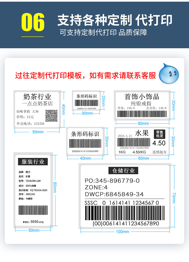 Aili Three-Proof Thermal Label Coding Paper Multi-Pack 10 20 30 50 70 80 Self-Adhesive E-Mail Blank
