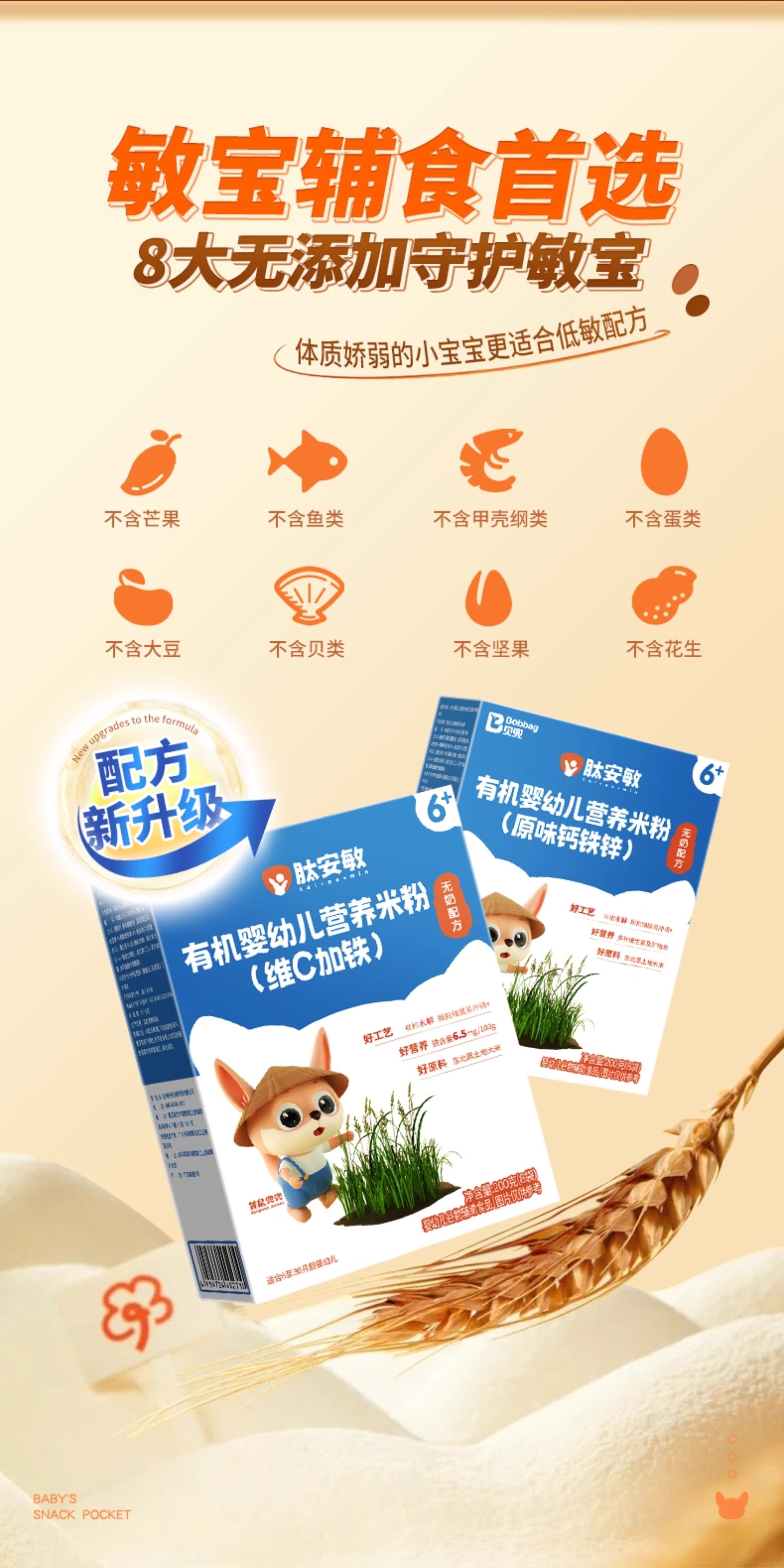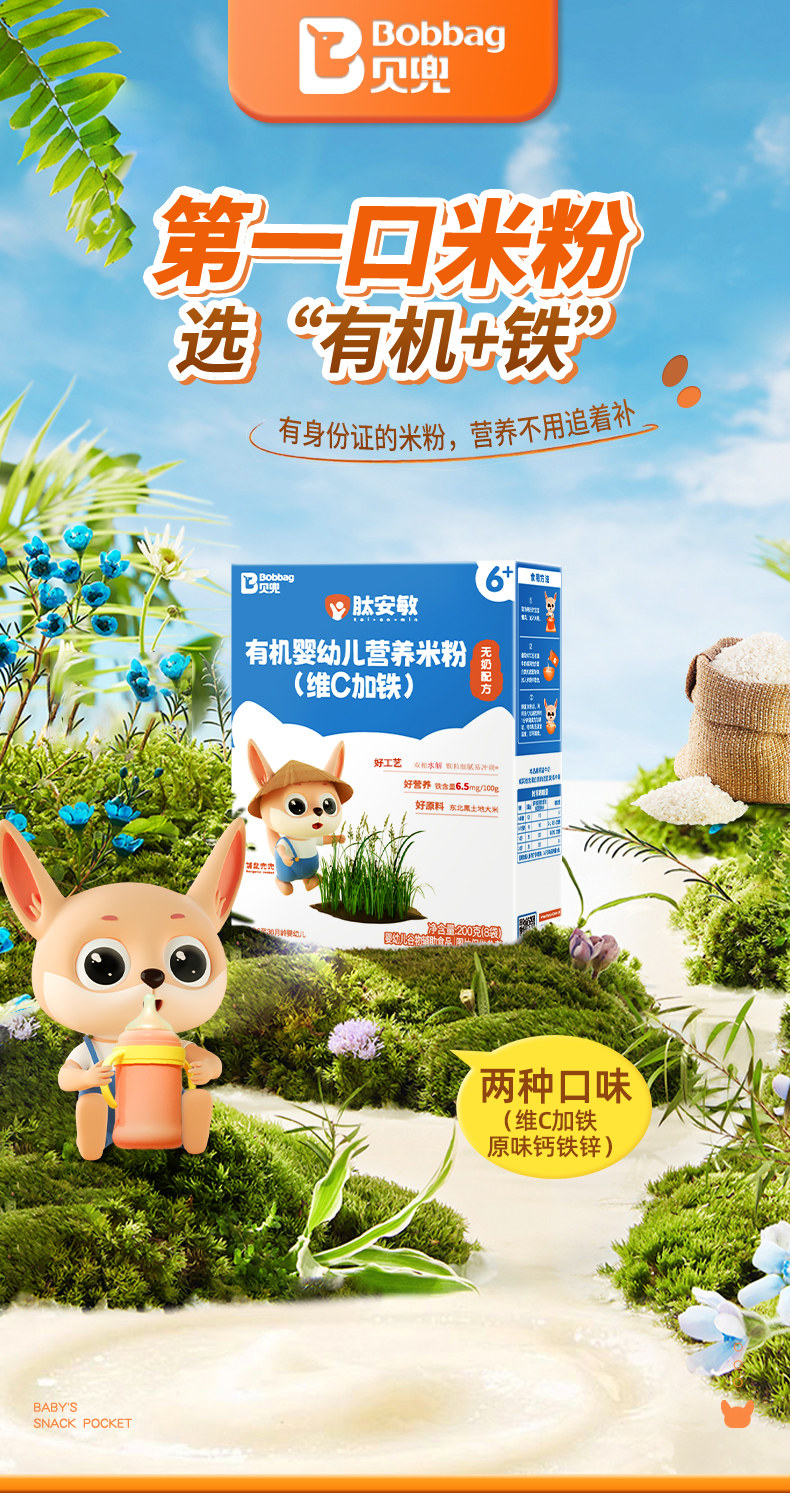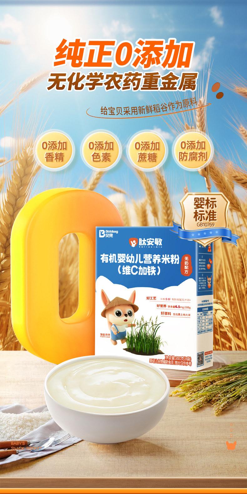 Beidou Infant Boxed Organic Rice Cereal Supplement, Gluten-Free, Egg-Free, Nutritious Rice Paste, Fortified with Iron, Ferrous Iron, Rice Milk