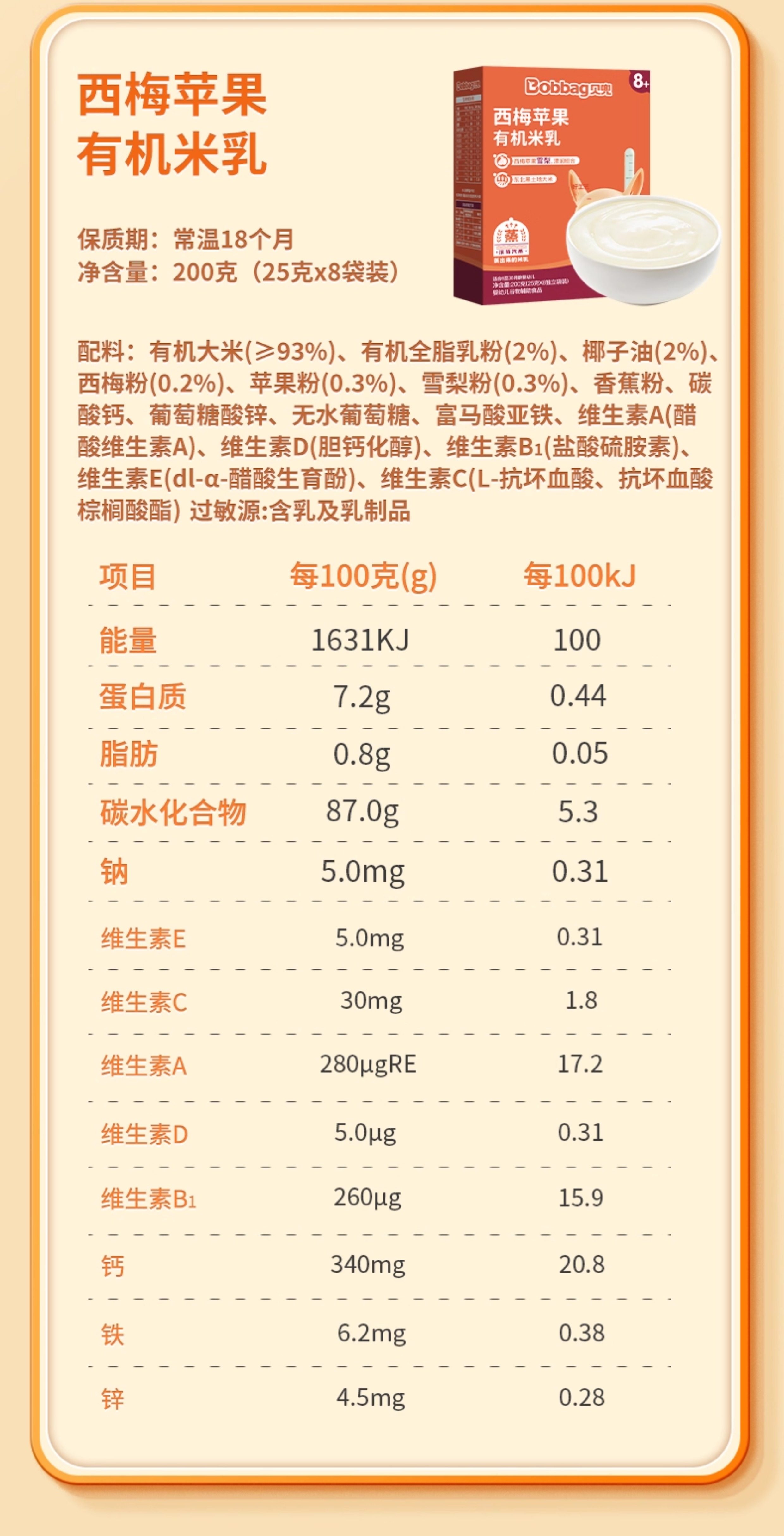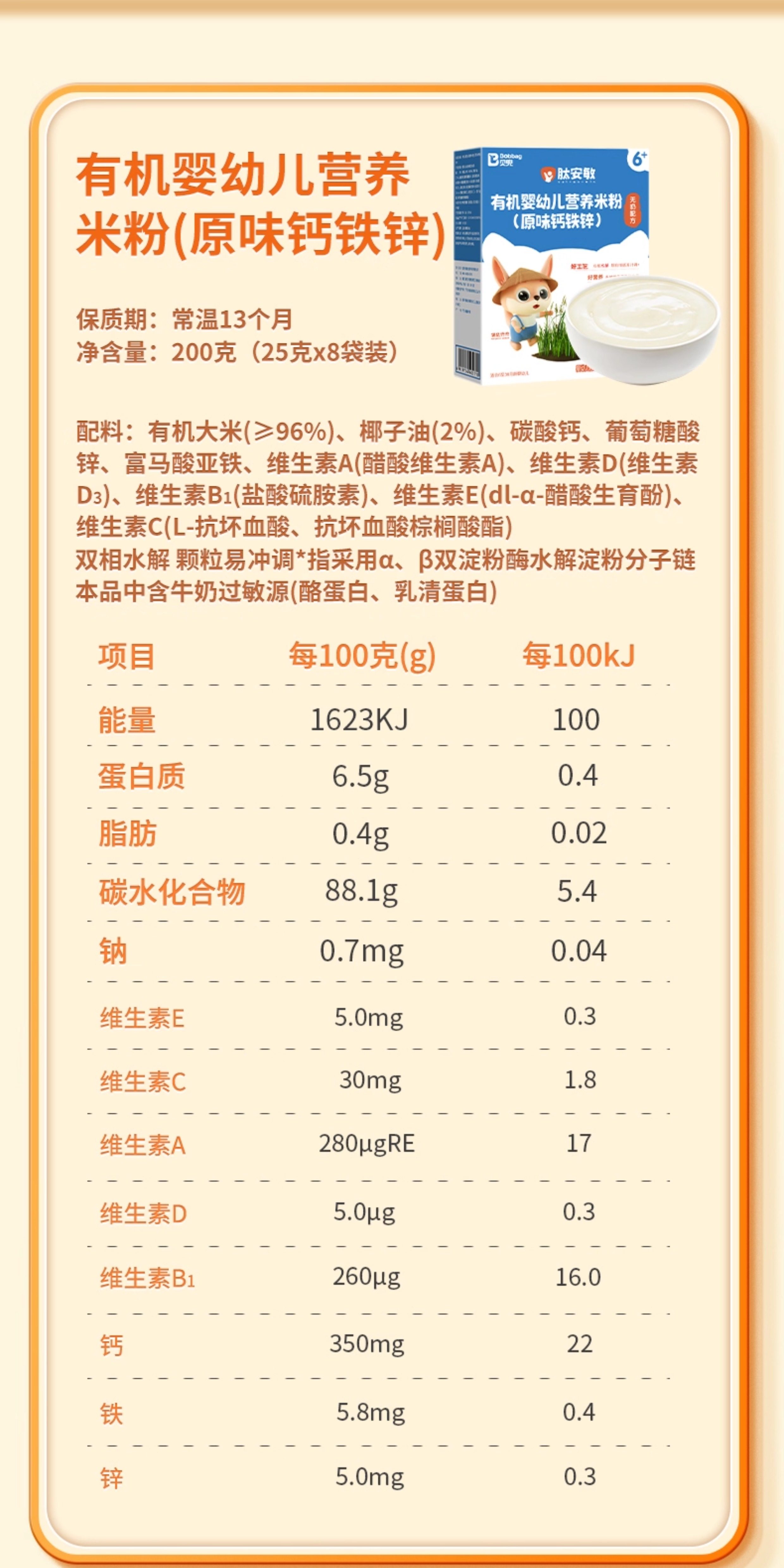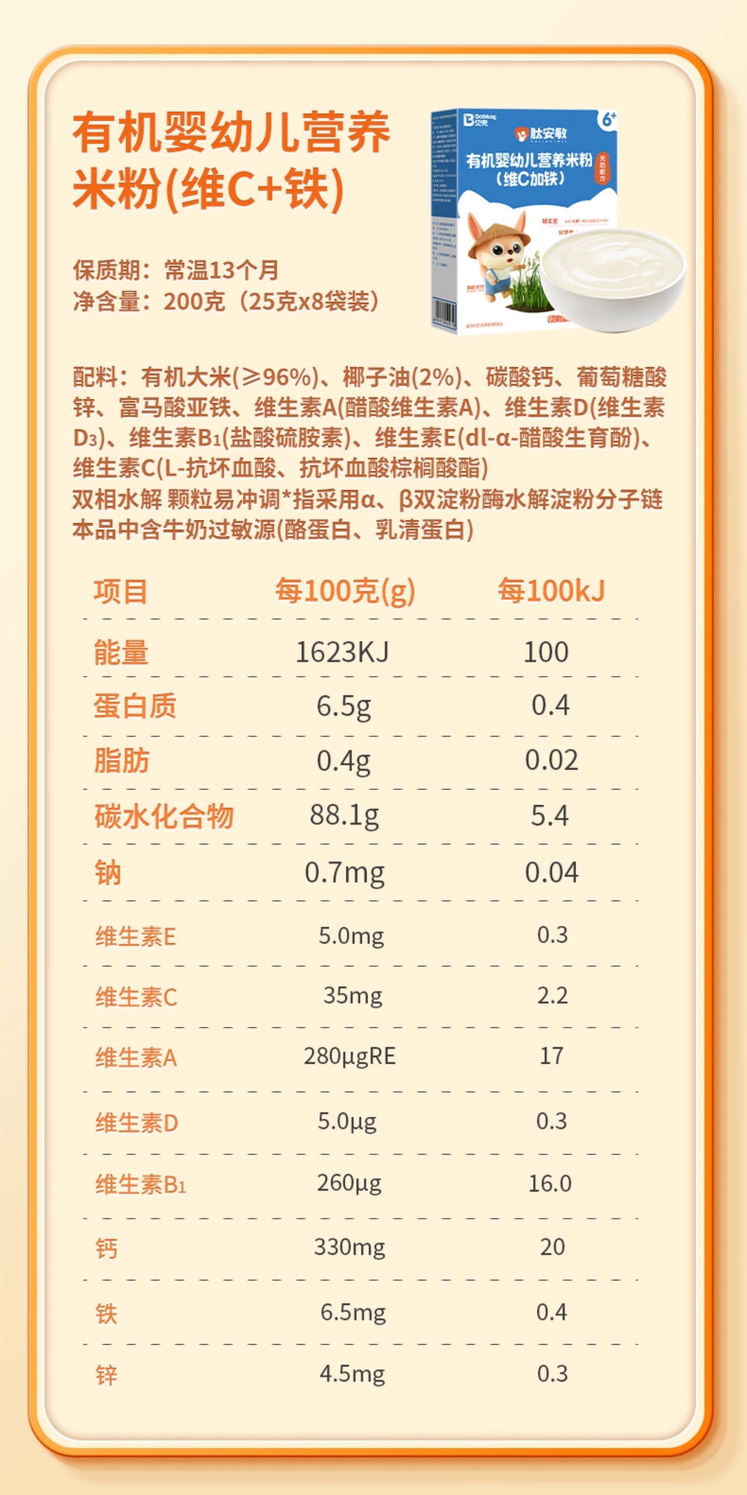 Beidou Infant Boxed Organic Rice Cereal Supplement, Gluten-Free, Egg-Free, Nutritious Rice Paste, Fortified with Iron, Ferrous Iron, Rice Milk