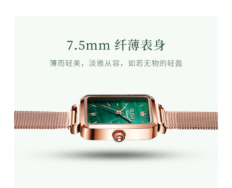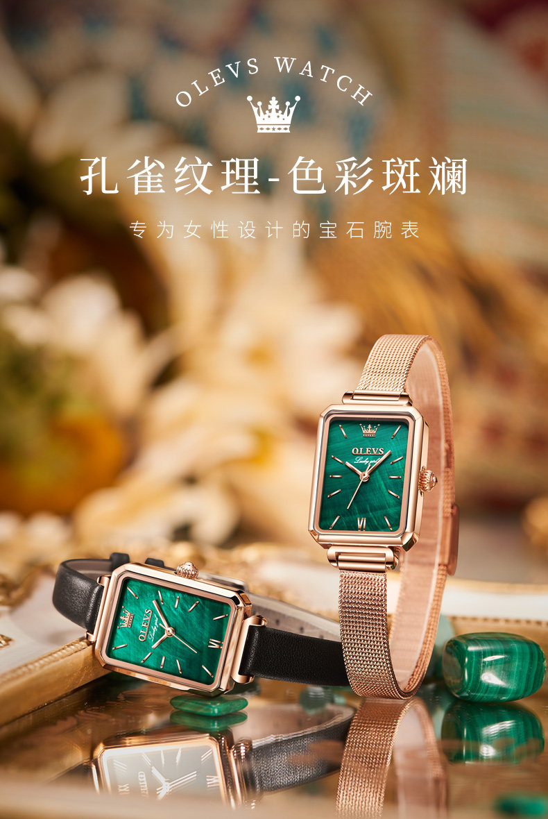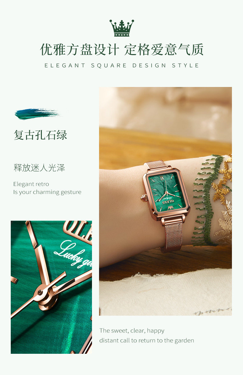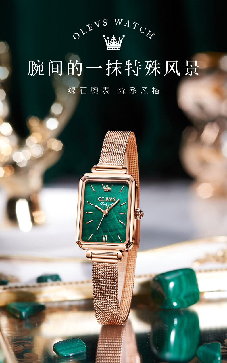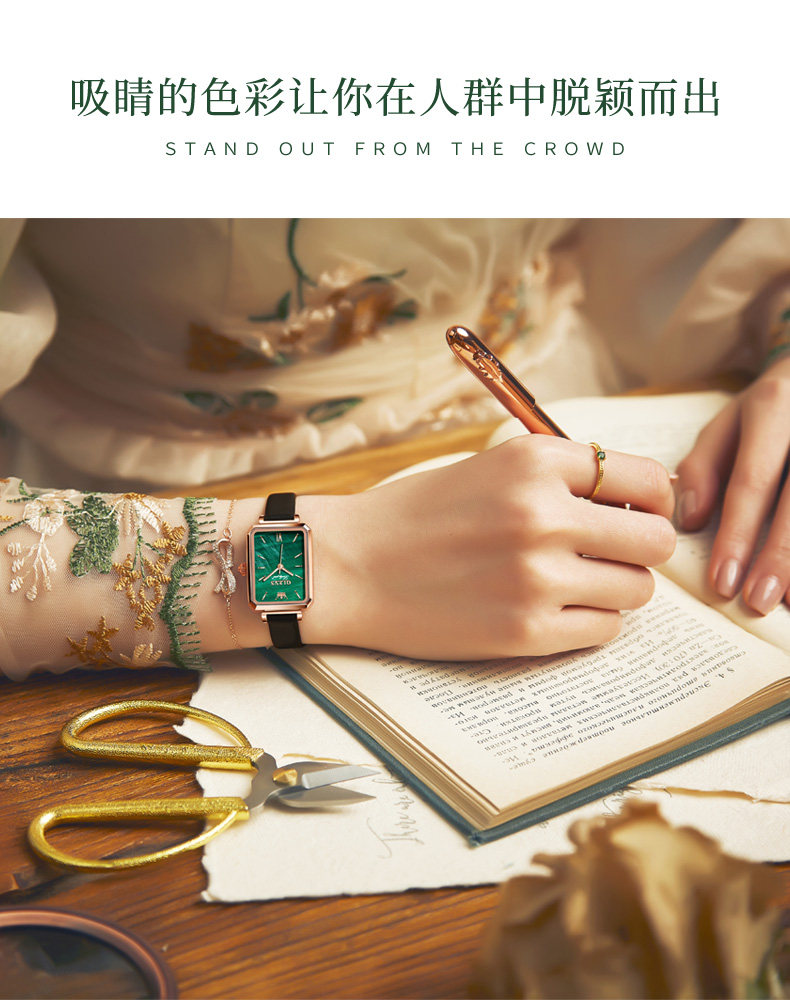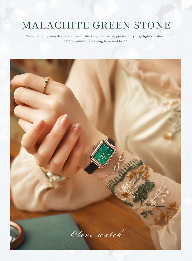 New Year's Gift New Brand Women's Watch Genuine Women's Watch Niche Light Luxury Watch Square Small Green Watch
