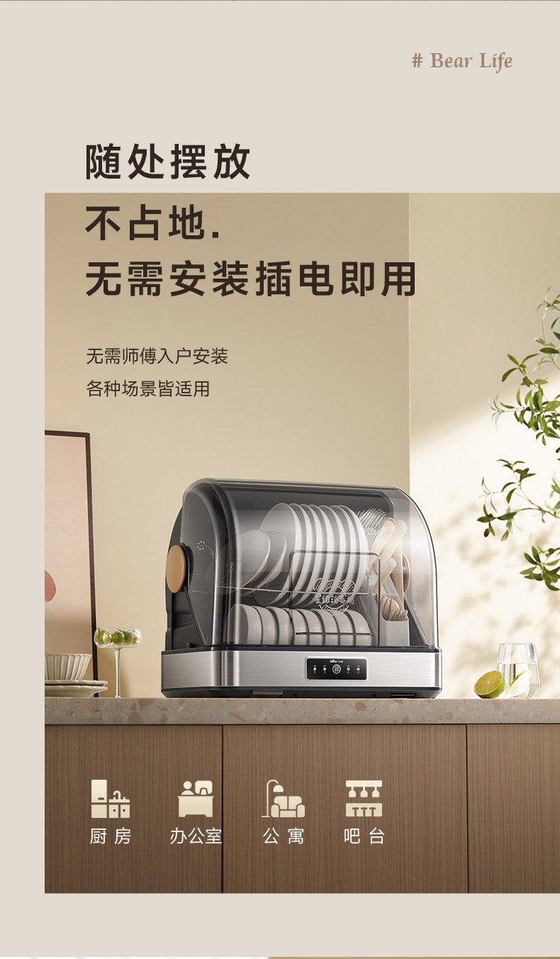 Bear Multifunctional Sterilizer Cabinet for Home Use, Small Desktop Model for Drying and Sterilizing Bowls, Chopsticks, Dishes, and Baby Bottles with Ultraviolet Sterilization