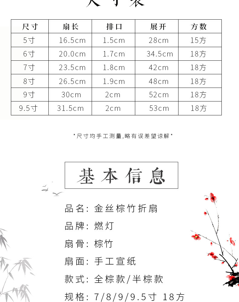 | Color Classification | 5inch Small Round Head Half Brown[Sprinkled Gold Fan],6inch Half Brown with Tassels[Sprinkled Gold Fan],7inch Half Brown with Light[Plain White Fan],7inch Half Brown with Light[Plain Black Fan],7inch Small Eggplants Half Brown[Plain White Fan],7inch Ancient Square Head Half Brown[Plain White Fan],8inch Half Brown with Light[Plain White Fan],8inch Half Brown with Light[Plain Black Fan],9inch Half Brown with Light[Plain White Fan],9inch Half Brown with Light[Plain Black Fan],9inch Small Eggplants Half Brown[Plain White Fan],9inch Small Eggplants Half Brown[Plain Black Fan],9inch Ancient Square Head Half Brown[Plain White Fan],9inch Ancient Square Head Half Brown[Plain Black Fan],9.5inch Half Brown with Light[Plain White Fan],9.5inch Half Brown with Light[Plain Black Fan],9.5inch Pick Lamp Square Black Bamboo Core[Plain White Fan],9.5inch Pick Lamp Square Black Bamboo Core[Plain Black Fan],9.5inch Ancient Square Head Half Brown[Plain White Fan],9.5inch Ancient Square Head Half Brown[Plain Black Fan],9.5 Small Eggplants Half Brown[Plain White Fan],9.5 Small Eggplants Half Brown[Plain Black Fan],9.5inch Ancient Square Head Half Brown[Blue Gold Fan],9.5inch Ancient Square Head Half Brown[Black Gold Fan Surface],9.5inch Ancient Square Head Half Brown[White Gold Fan],9.5inch Ancient Square Head Half Brown[Green Real Gold Fan],9.5inch Ancient Square Head Half Brown[Red Gold Fan],9.5inch Ancient Square Head Half Brown[Caviar Real Gold Fan],9.5inch Half Brown with Light[Blue Gold Fan],9.5inch Half Brown Black Bamboo Core[Gypsophila Double Innocent Gold Fan],9.5inch Half Brown with Light[Black Gold Fan Surface],9.5inch Brown Bamboo Bamboo Core Dragon Scale Wheel[Plain White Fan],9.5inch Brown Bamboo Bamboo Core Dragon Scale Wheel[Plain Black Fan],8inch Pick Light Square Head All Brown[Plain White Fan],8inch Pick the Light Square Full Brown[Plain Black Fan],9.5inch Pick the Light Square Full Brown[Plain White Fan],9.5inch Pick the Light Square Full Brown[Plain Black Fan],9.5inch Pick the Light Square Full Brown[Black Gold Fan Surface],9.5inch Pick the Light Square Full Brown[Blue Gold Fan],9.5inch Small Eggplants All Brown[Plain White Fan],9.5inch Small Eggplants All Brown[Plain Black Fan],9.5inch Small Eggplants All Brown[Black Gold Fan Surface],8inch Small Eggplants Half Brown[Plain Black Fan],9.5inch Small Eggplant Head Black Bamboo Core[Plain White Fan],9.5inch Small Eggplant Head Black Bamboo Core[Plain Black Fan] |