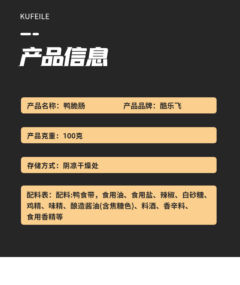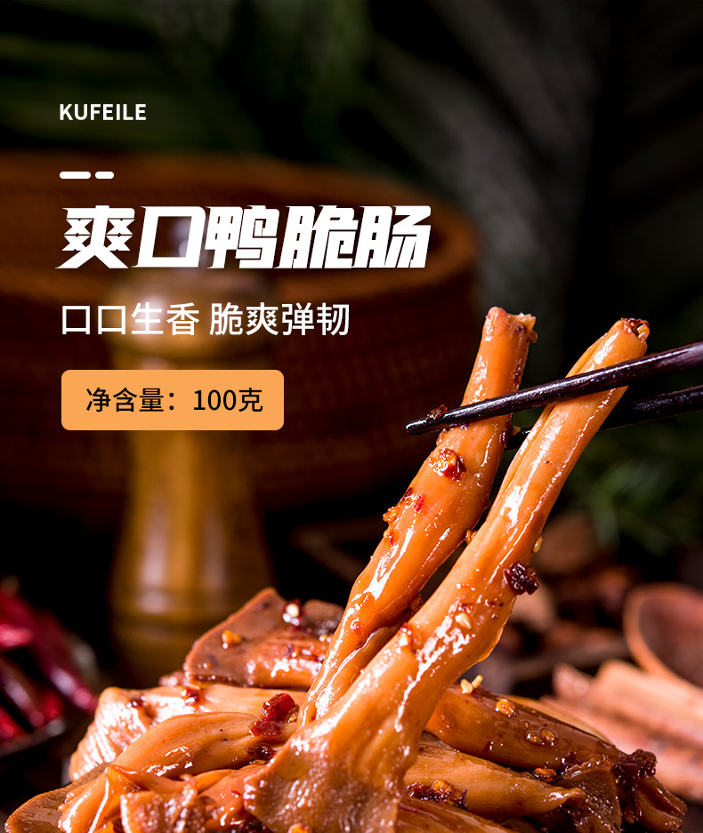 Kufei Le Fresh Duck Intestines Spicy Duck Meat Snack Braised Ready-To-Eat Snack Hunan Specialty 100g