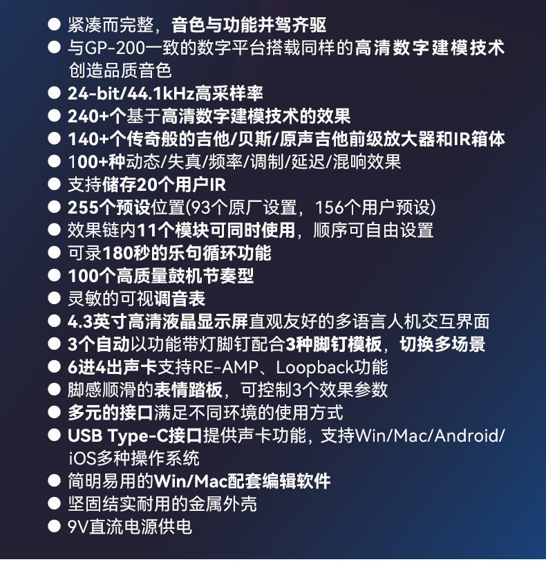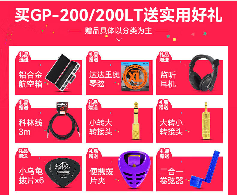 | Color Classification | Gp-100 Black + Gift, Gp-100 Vt Chameleon + Gift, Gp-200 Black + Bag + Gift,Gp-200 Black + Flight Case + Free Gift, Gp-200 Red + Bag + Gift,Gp-200 Red + Flight Case + Free Gift, Gp-200Lt+Flight Case+Gift, Gp-200Jr+Flight Case+Gifts, Gp-200X+ Effects Package+Gifts, Gp-200X+Flight Case+Gift |