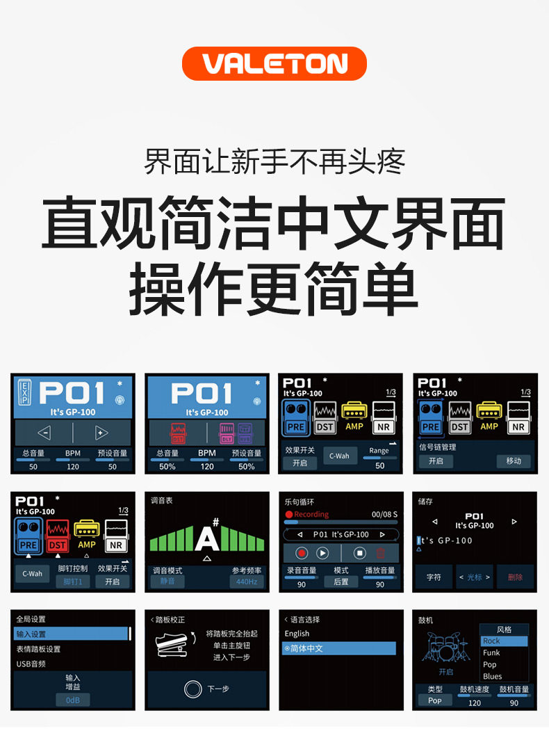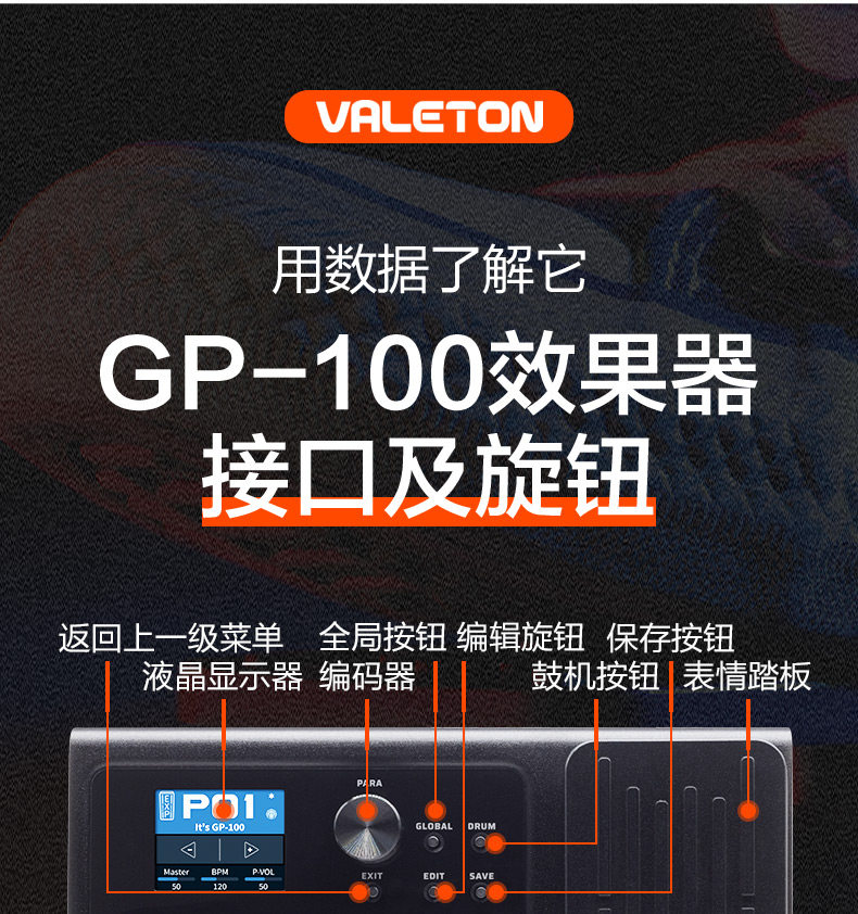 Valeton Gp100 Gp200 Lt Jr Vt Electric Guitar Multi-Effects Processor Bass Drum Machine Ir