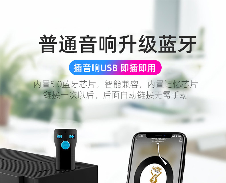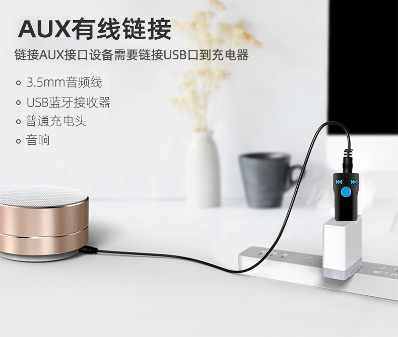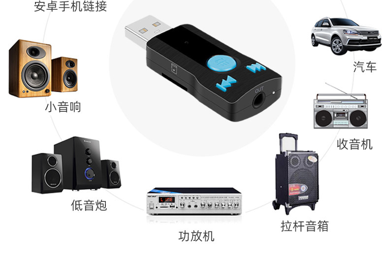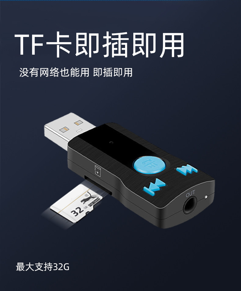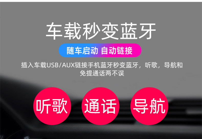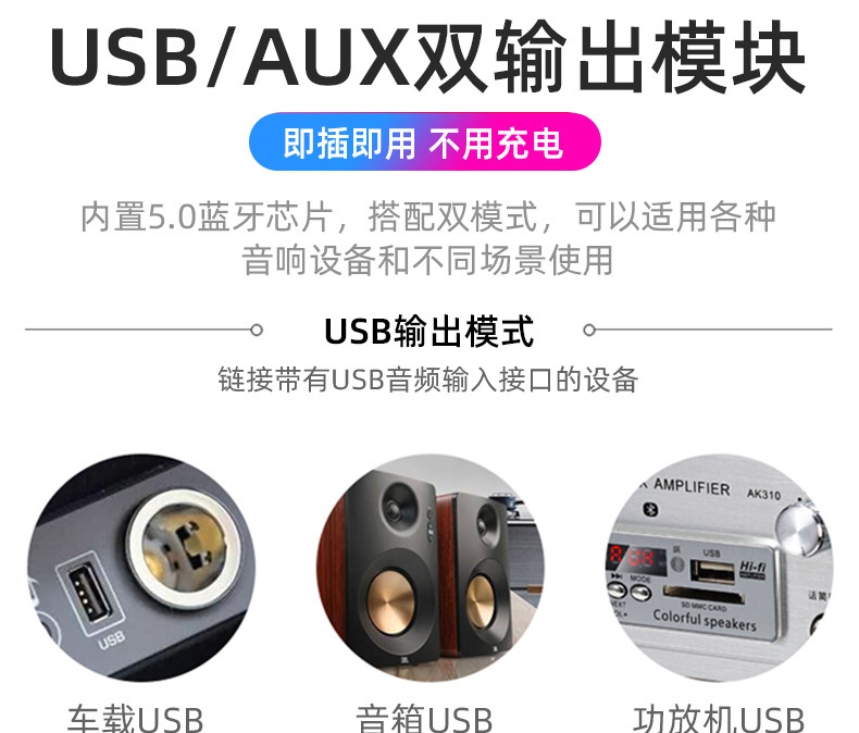 Dual Output Car USB Bluetooth Receiver, Audio Box Amplifier, Wired to Wireless Aux Stereo Plug-In Card