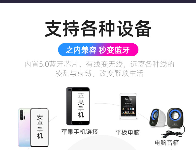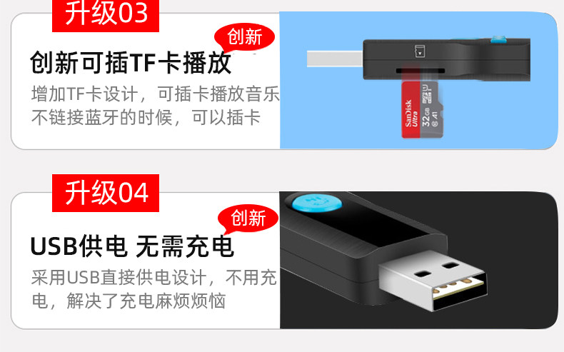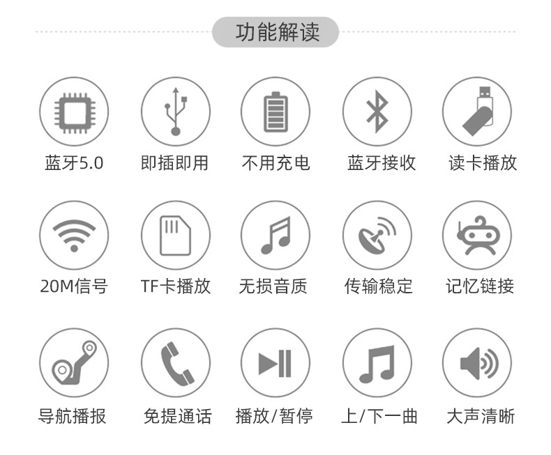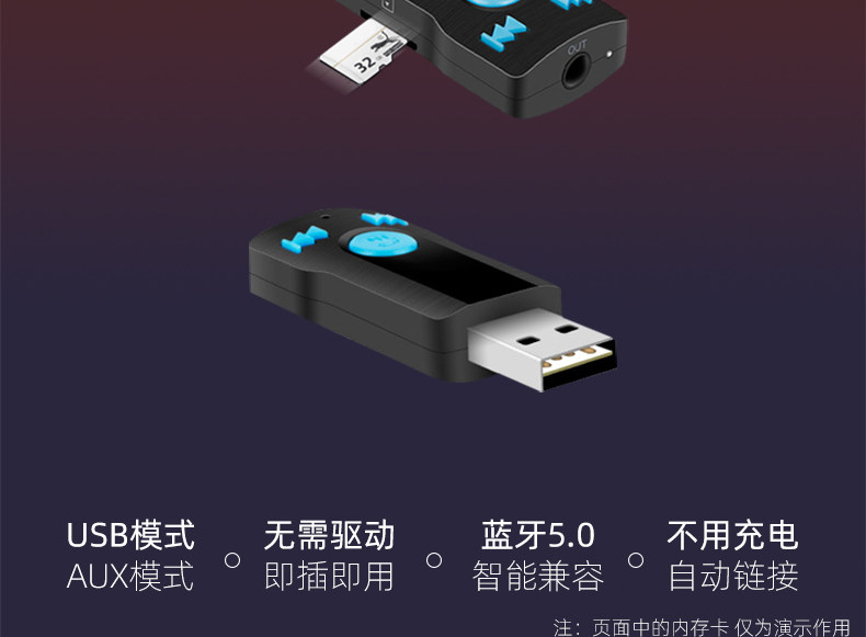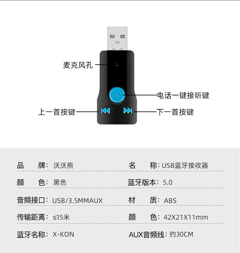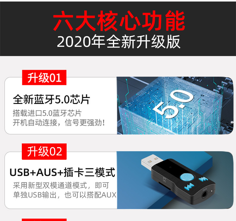 Dual Output Car USB Bluetooth Receiver, Audio Box Amplifier, Wired to Wireless Aux Stereo Plug-In Card
