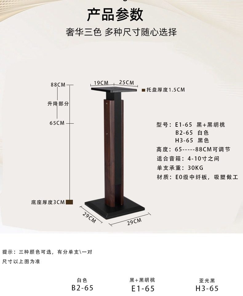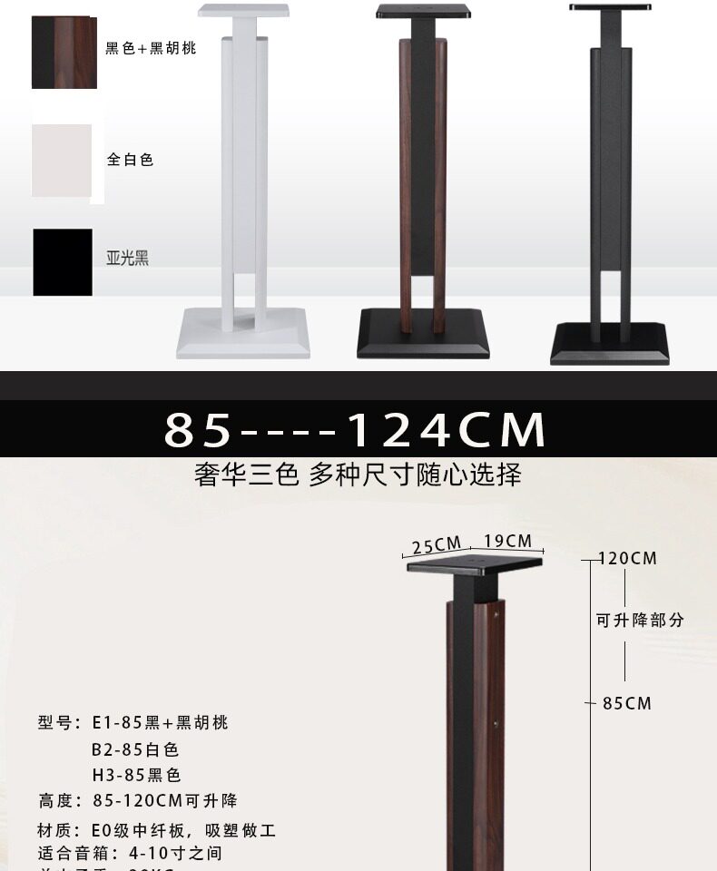 | Color Classification | E1-65 Walnut Color Pair,H3-65 Black Pair,E1-85 Walnut Color Pair,B2-85 Pair,H3-85 Black Pair,R-65 Pair,R-85 Pair,Jd-65 Pair (Can Support 12inch),Jd-85 Pair (Can Support 12inch),E7 Steel and Wood Combination (Applicable to 6-12inch) |