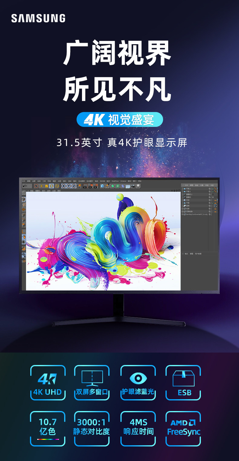Samsung U32J592Uqc 32-Inch 4K High-Definition Computer Monitor Design Drawing Lcd Desktop Display