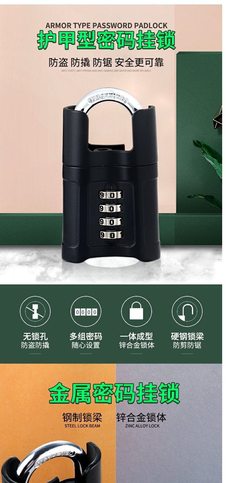 Reinforced Combination Padlock Anti-Cutting Armored Code Lock Factory Iron Door Warehouse Door Code Lock