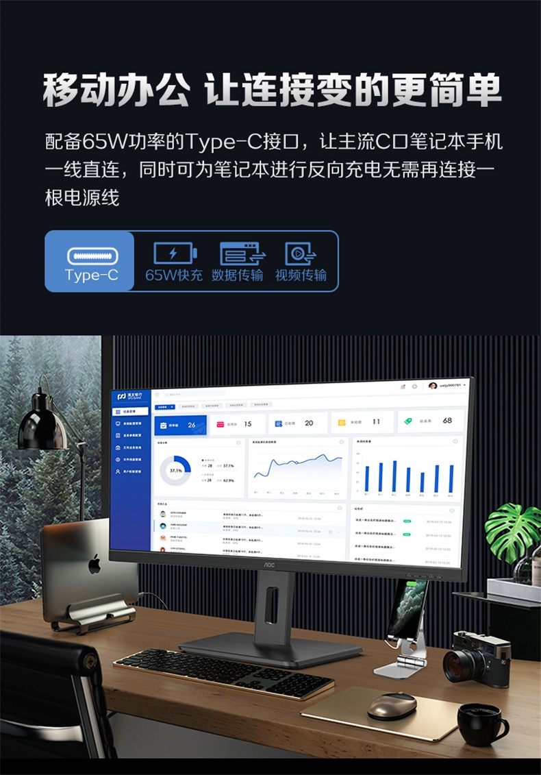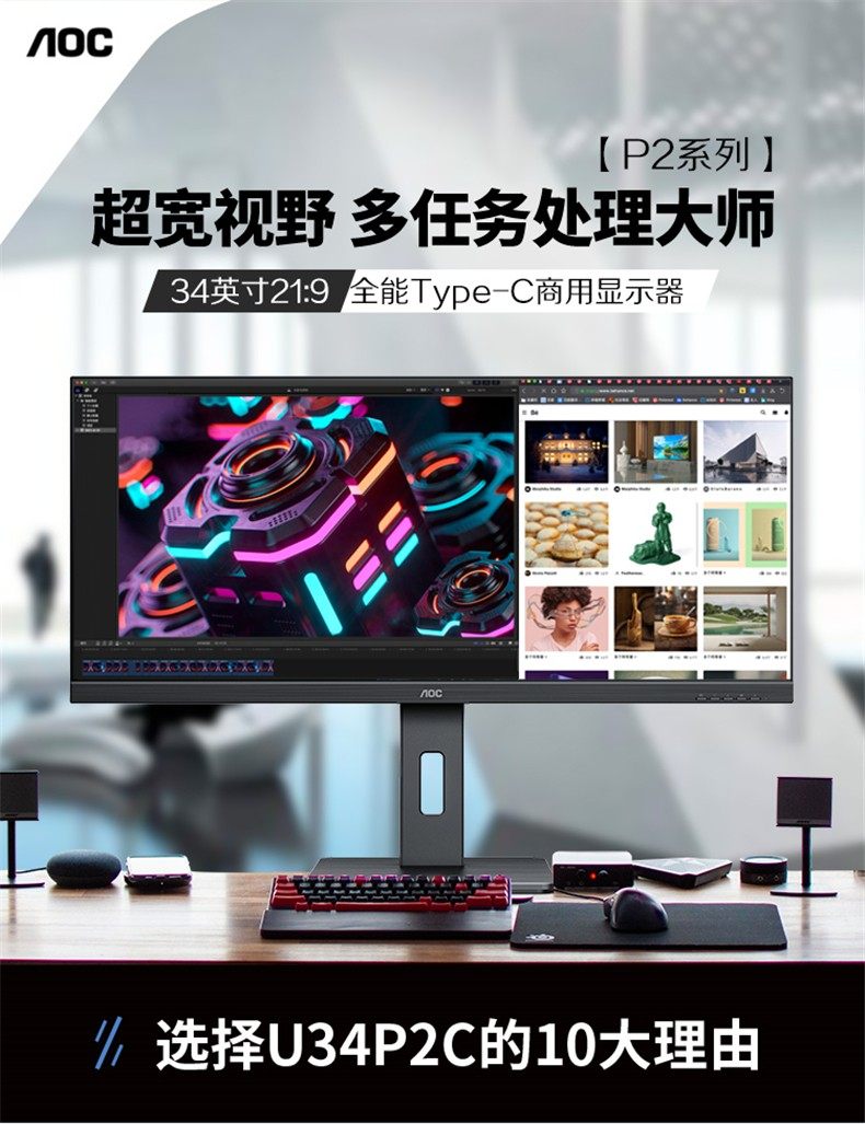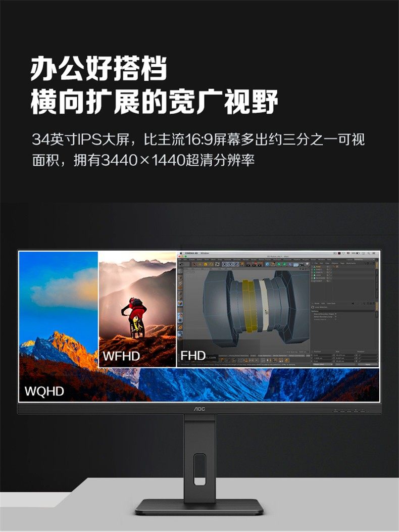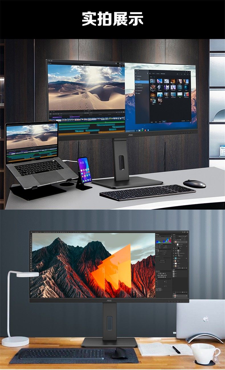 Aoc U34P2C 34inch Quasi-4K High-Definition Ips Fish Screen Commercial Computer Monitor Vertical Screen Wall-Mounted 32