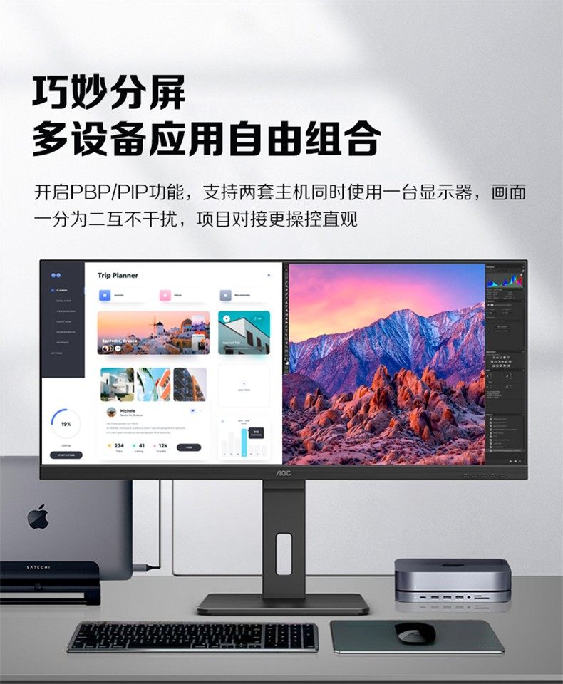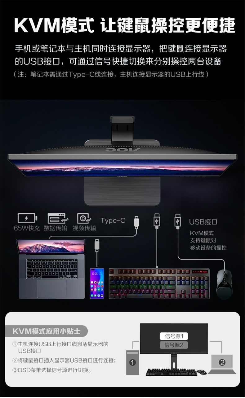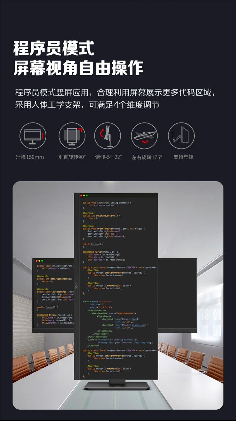 Aoc U34P2C 34inch Quasi-4K High-Definition Ips Fish Screen Commercial Computer Monitor Vertical Screen Wall-Mounted 32