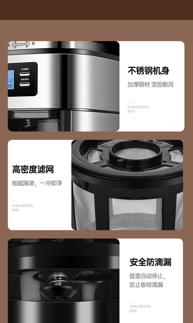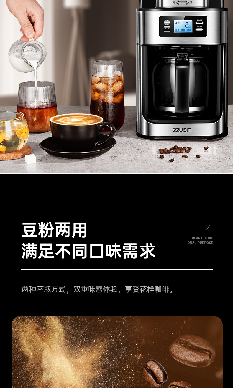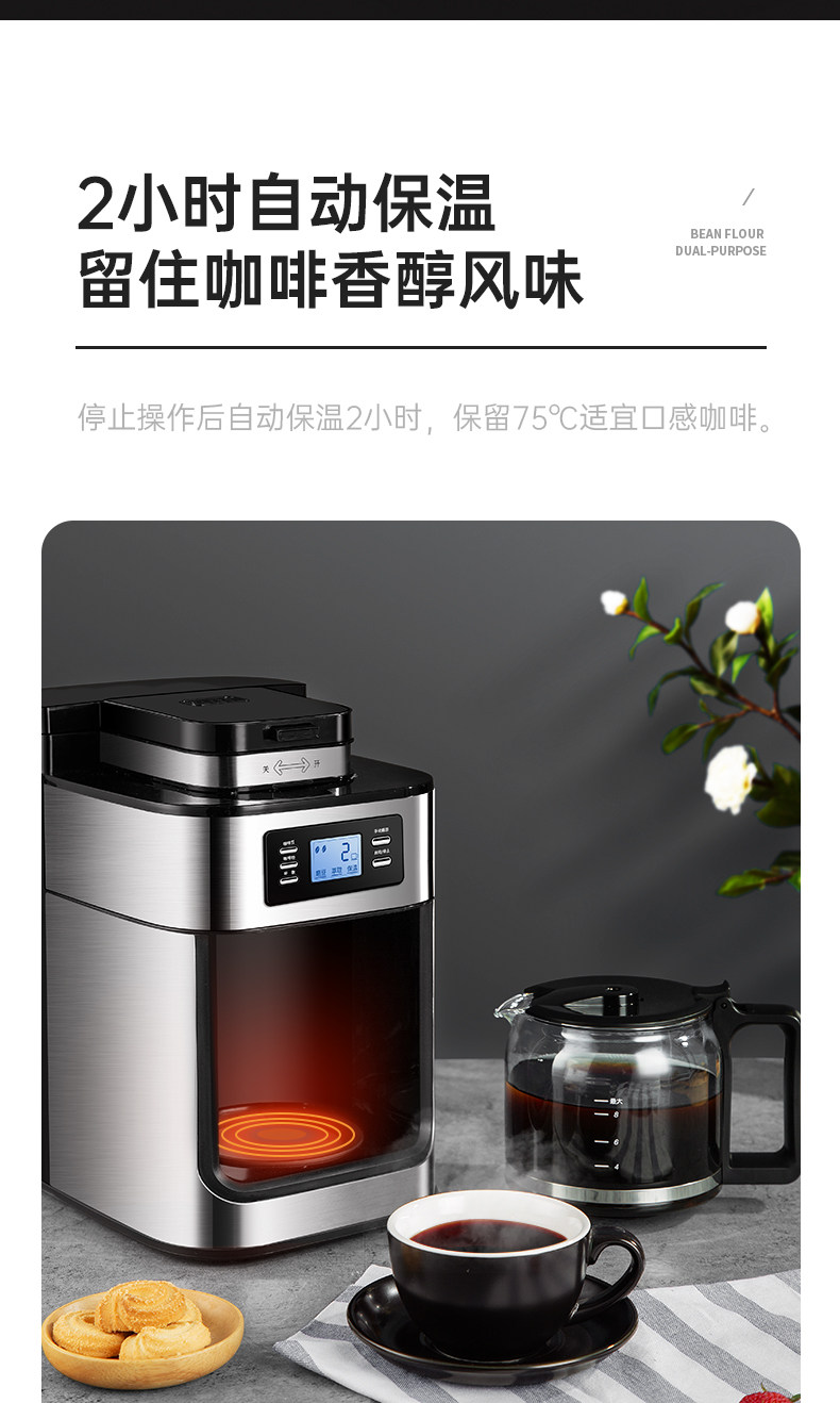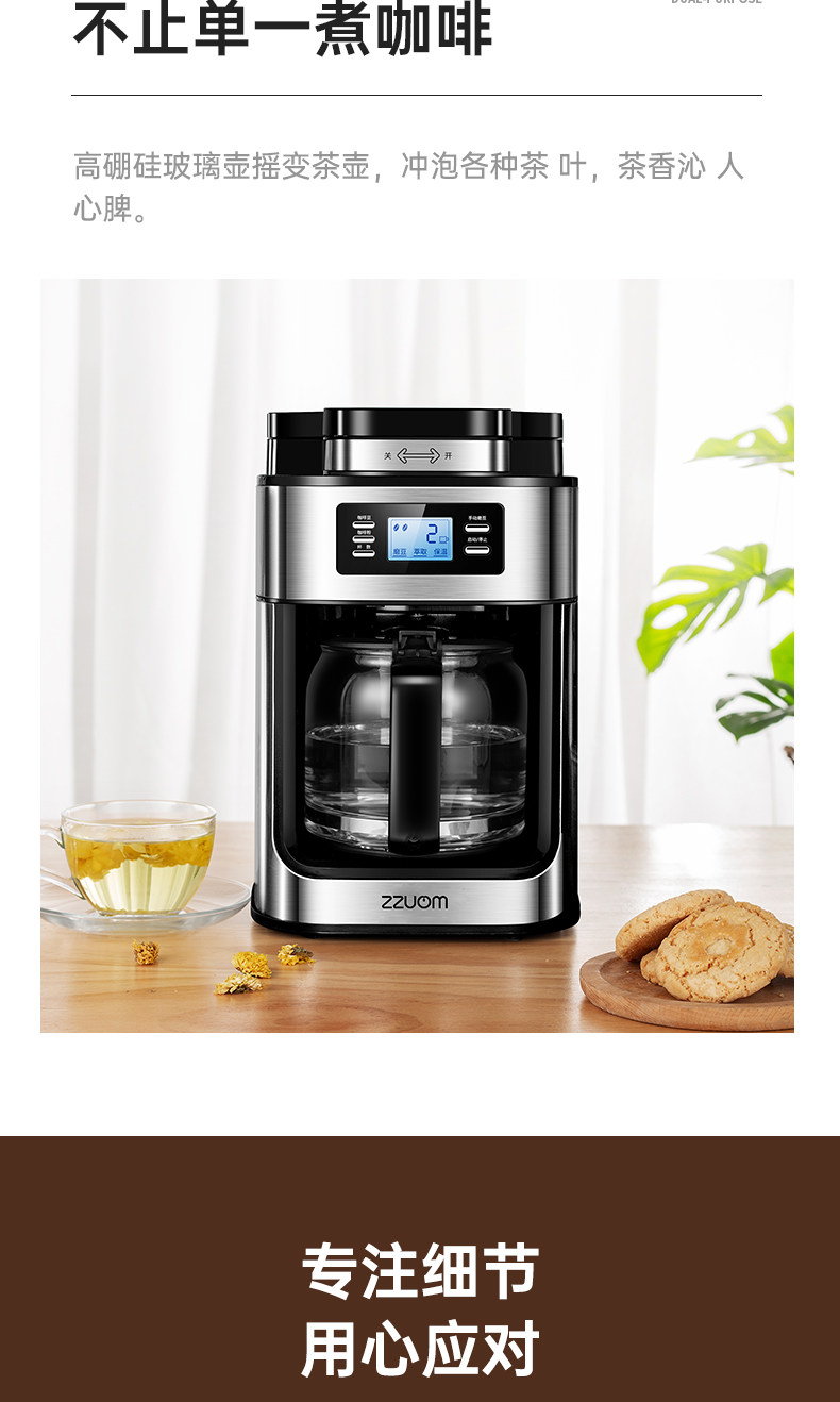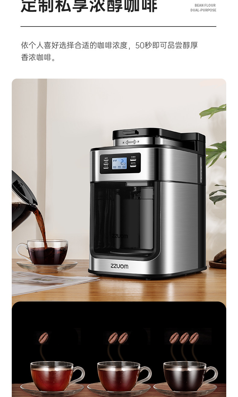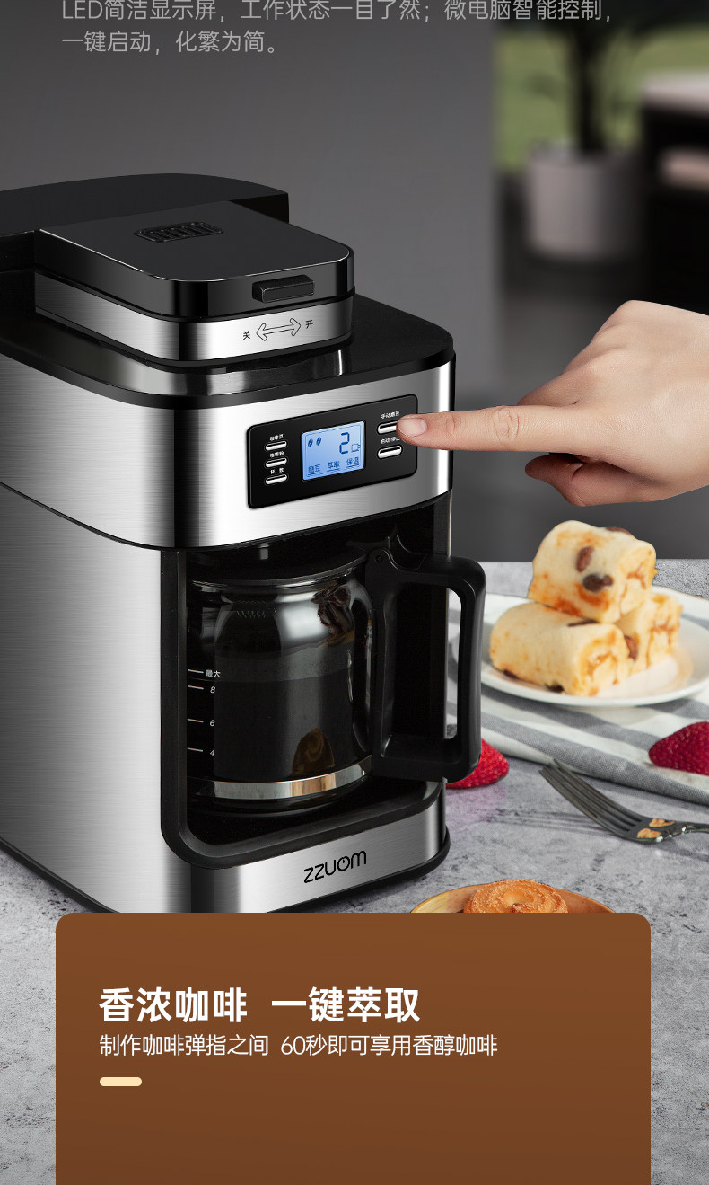 Zuozuomo Coffee Machine with Integrated Grinder, Fully Automatic Home Coffee Grinder, Office American Drip Coffee Maker