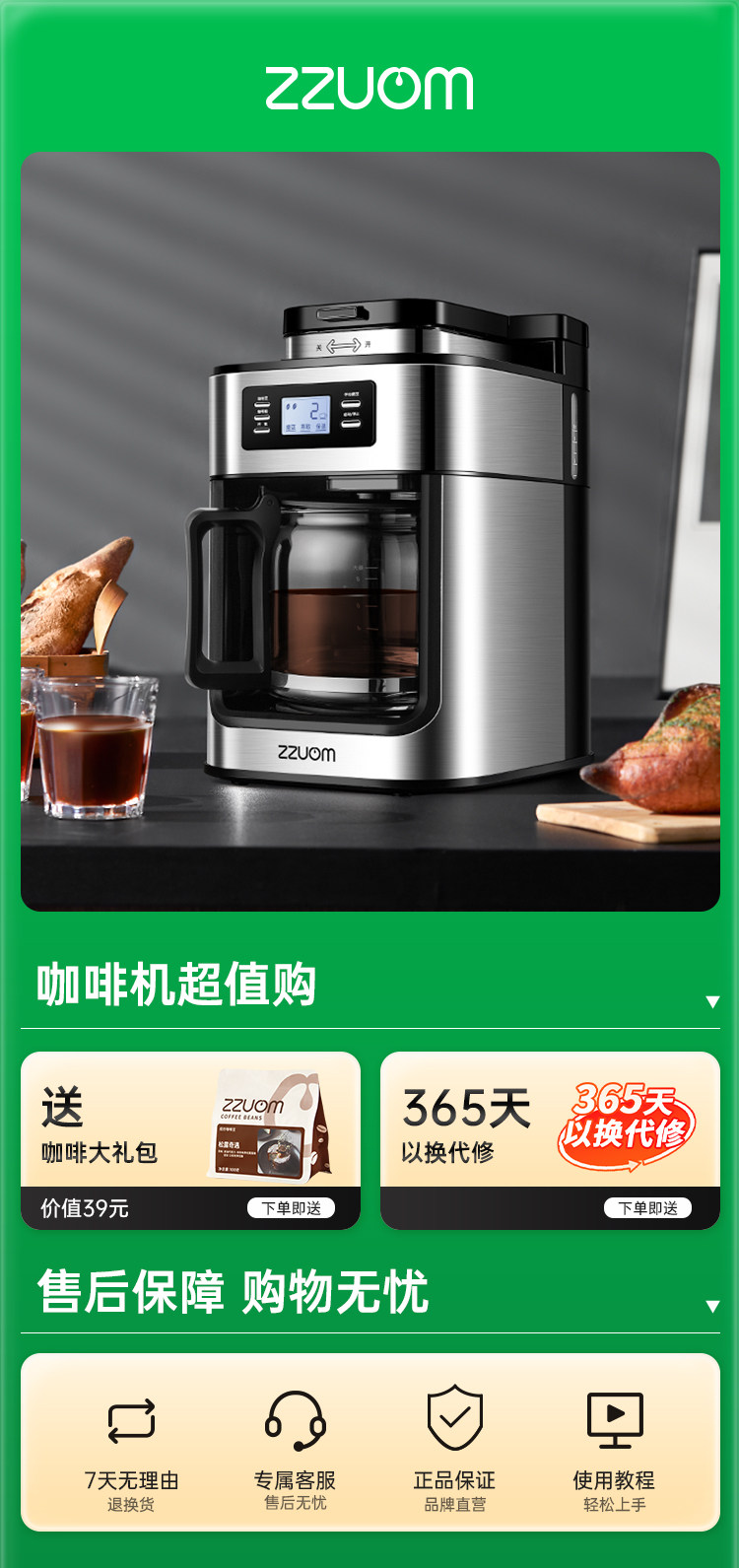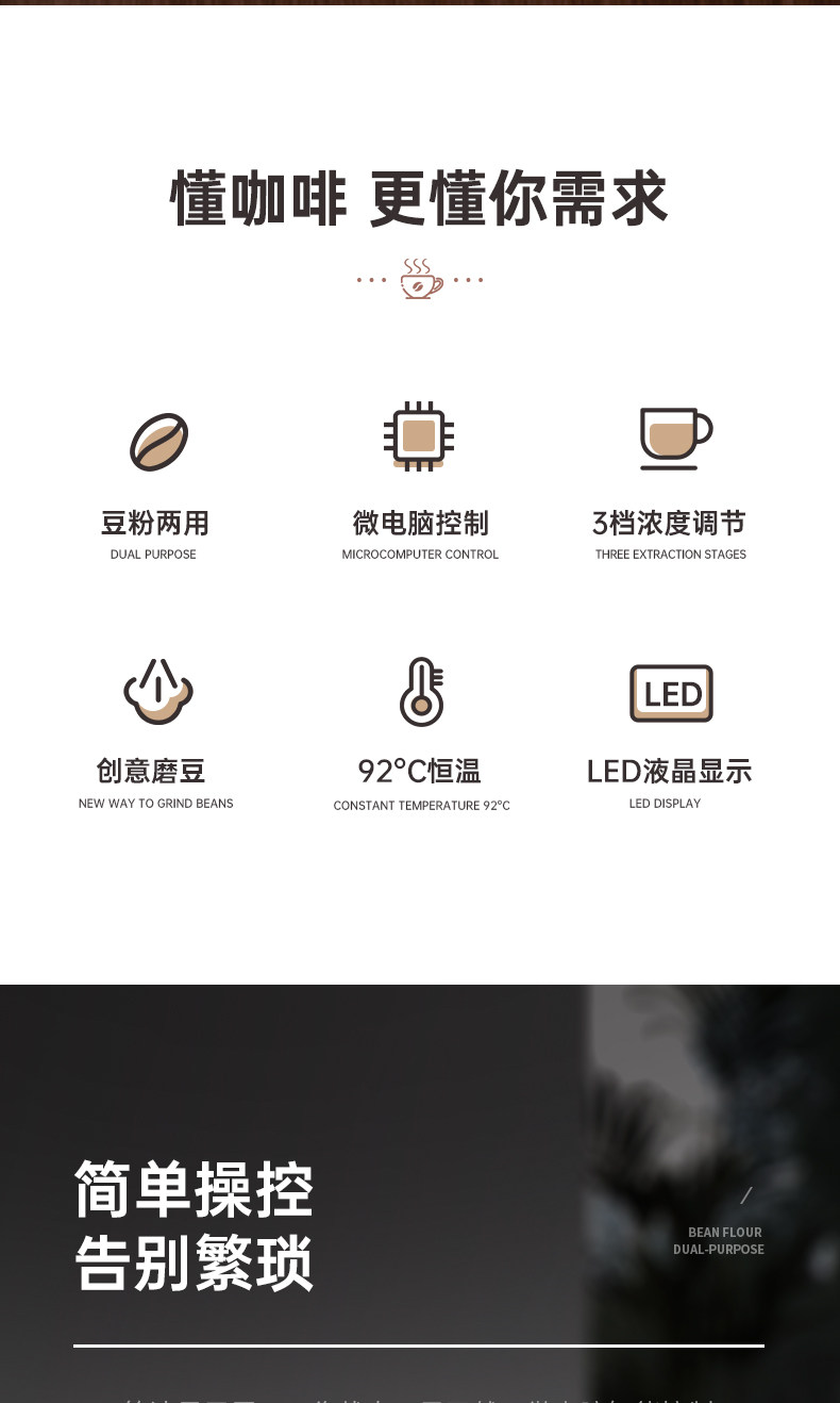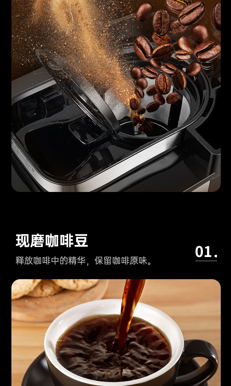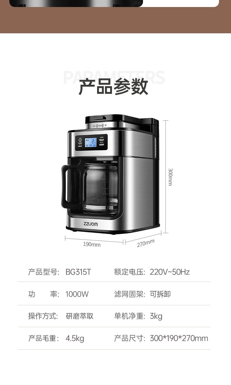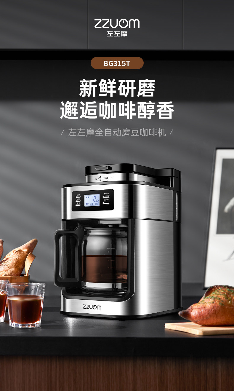 Zuozuomo Coffee Machine with Integrated Grinder, Fully Automatic Home Coffee Grinder, Office American Drip Coffee Maker