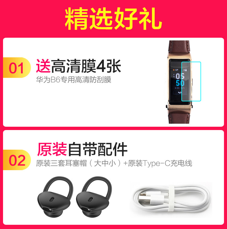 | Color Classification | Huawei B6 Sports Model [Obsidian Black] + Film*4,Huawei B6 Sports Model [Coral Red] + Film*4,Huawei B6 Fashion Edition [Mocha Brown] + Sticker*4,Huawei B6 Fashion Edition [Camellia Brown] + Film*4,Huawei B6 Exclusive Edition [Titanium Silver Gray] + Film*4,Huawei B6 Sports Model [Obsidian Black] + Film*4 + Leather or Silicone Strap,Huawei B6 Sports Model [Coral Red] + Film*4 + Leather or Silicone Strap,Huawei B6 Fashion Edition [Mocha Brown] + Film*4 + Leather or Silicone Strap,Huawei B6 Fashion Edition [Camellia Brown] + Film*4 + Leather or Silicone Strap,Huawei B6 Exclusive Edition [Titanium Silver Gray] + Film*4 + Genuine Leather or Silicone Strap,Huawei B6 Sports Model [Obsidian Black] + Film*4 + Free Metal Watch Strap,Huawei B6 Sports Model [Coral Red] + Film*4 + Free Metal Watch Strap,Huawei B6 Fashion Edition [Mocha Brown] + Film*4 + Free Metal Watch Strap,Huawei B6 Fashion Edition [Camellia Brown] + Film*4 + Free Metal Strap,Huawei B6 Exclusive Edition [Titanium Silver Gray] + Film*4 + Free Metal Watch Strap |