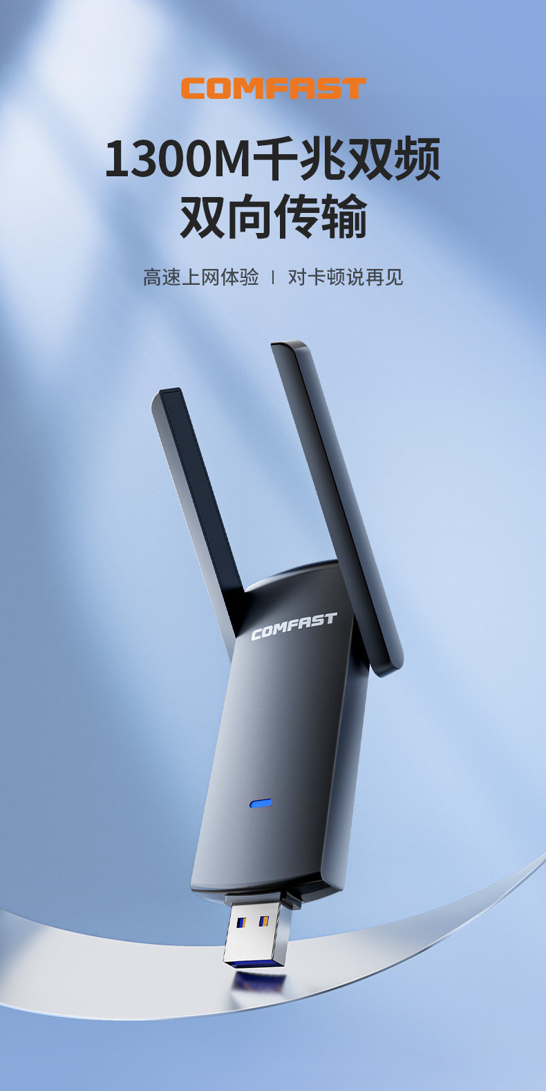 Comfast Wireless Network Card Desktop Computer Wifi Receiver and Transmitter 1300m Gigabit Dual-Band Driver-Free Desktop Usb3.0 Notebook External 5g Wireless Network Connector 924Ac