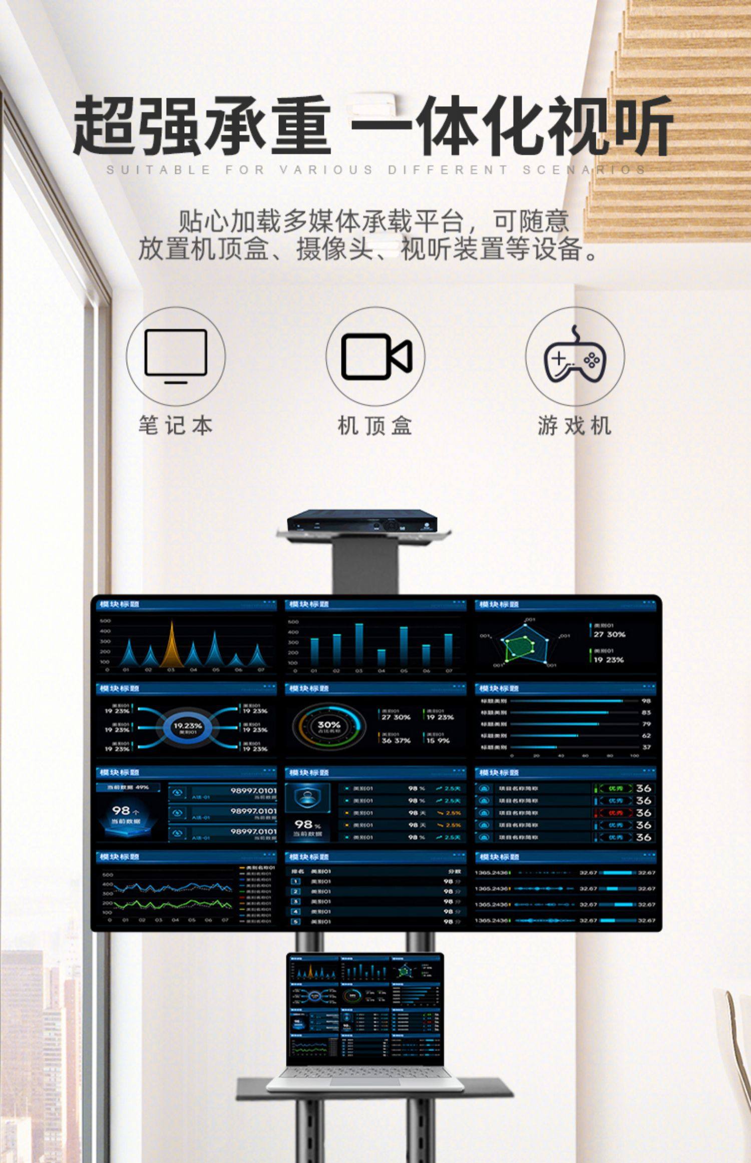 Tv Movable Floor-Standing Stand 32435560inch All-In-One Monitor Display Vertical Cart Hanger