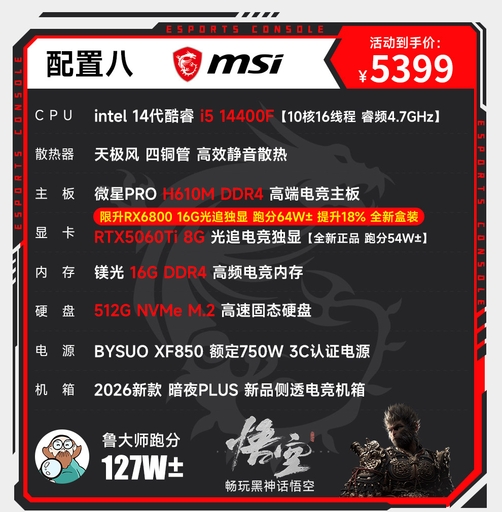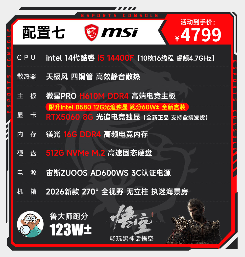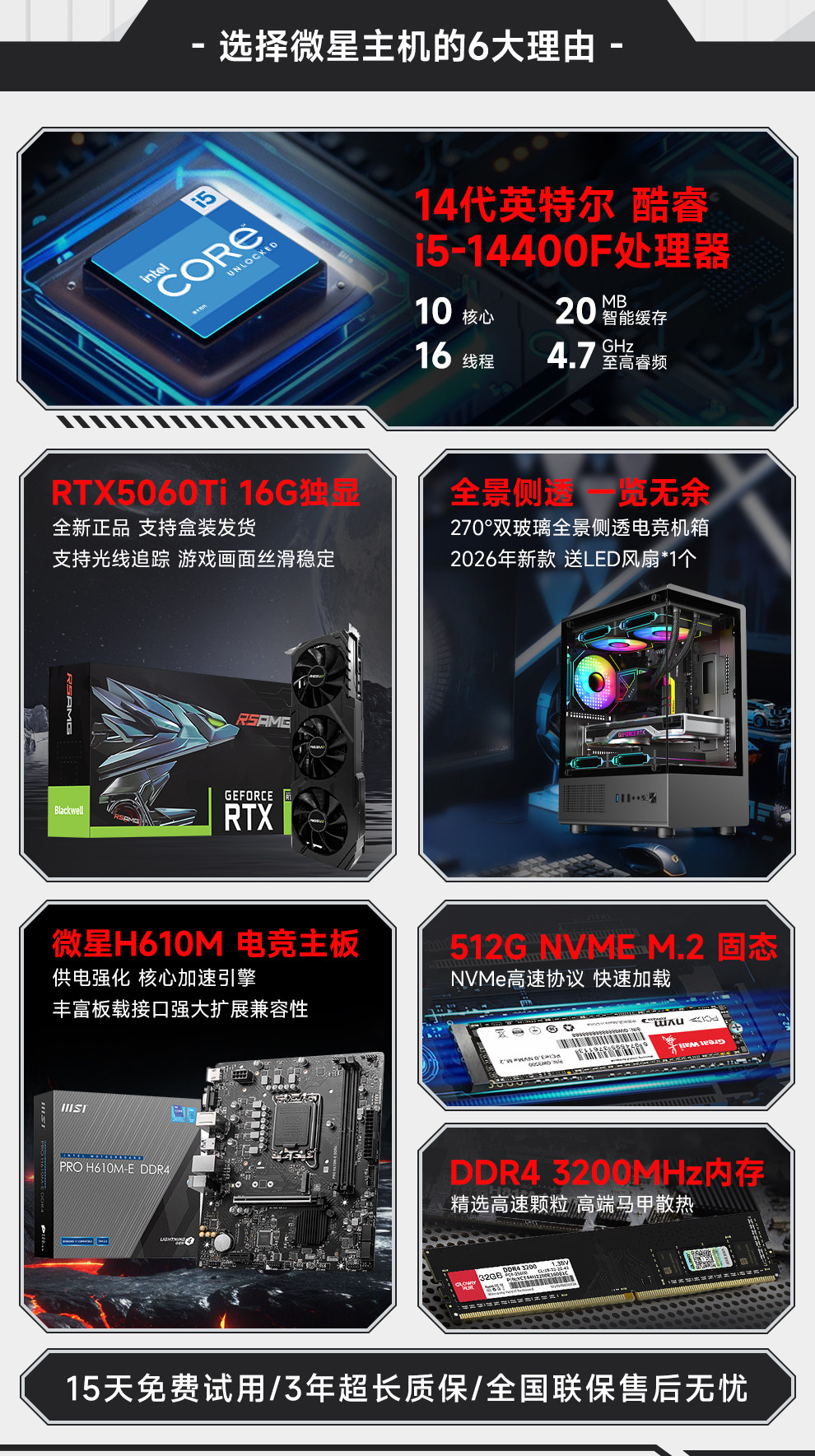 Msi 14Th Generation Core I5 14400F/Rtx3050/3060/4060/5060Ti Computer Desktop for Gaming, E-Sports, and DIY Assembly
