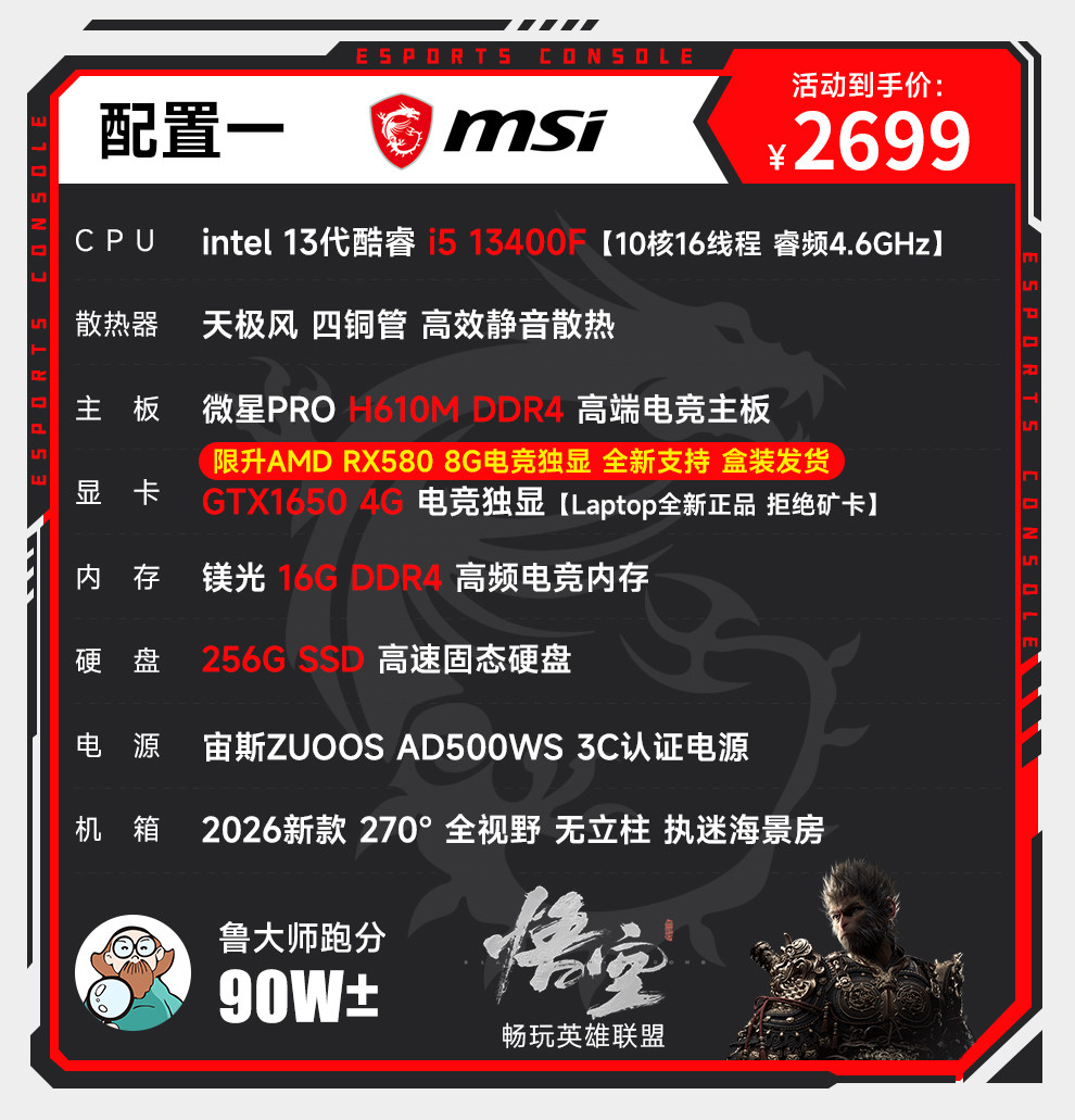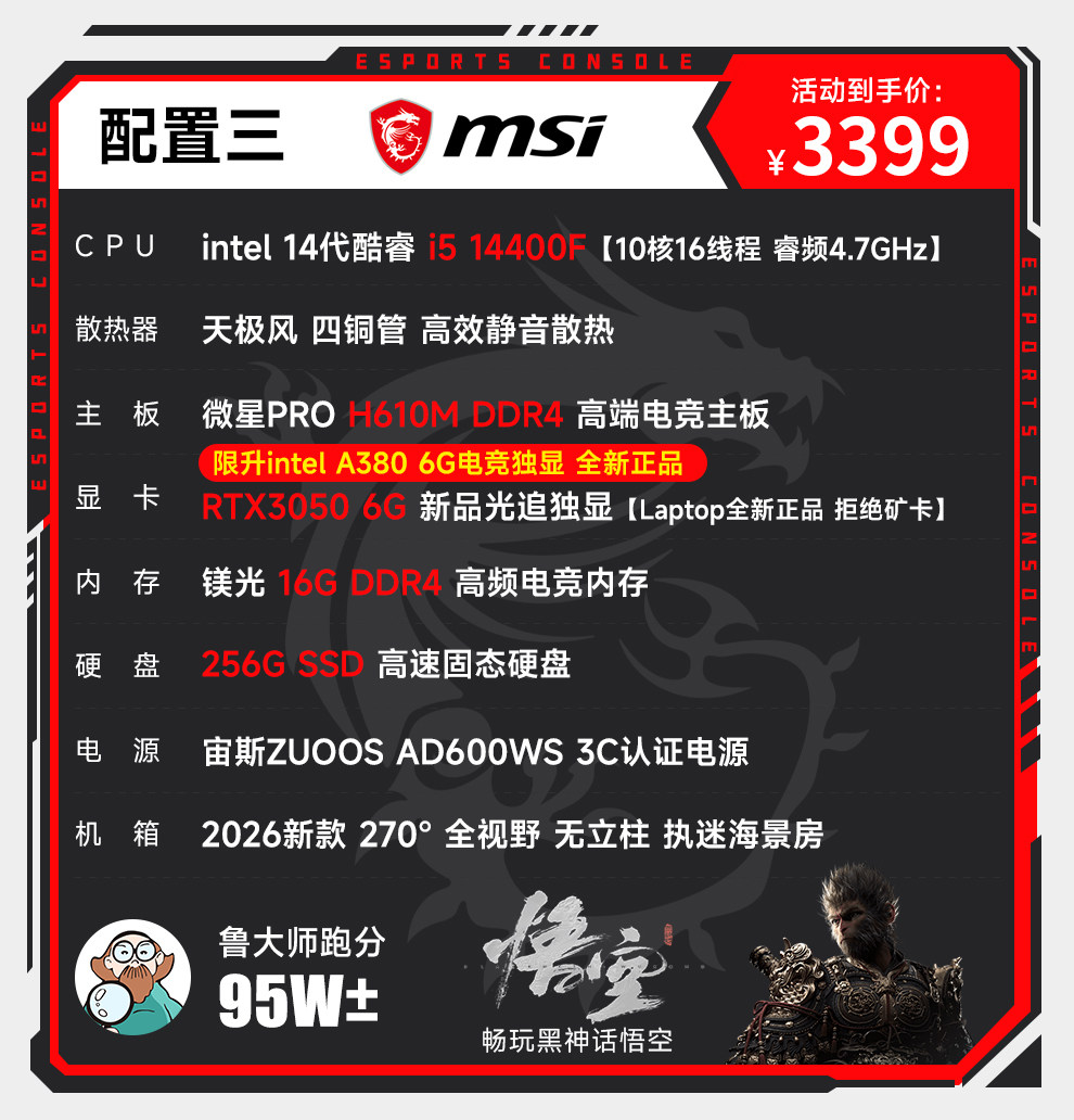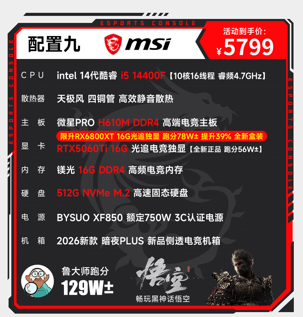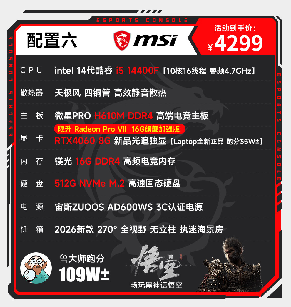 Msi 14Th Generation Core I5 14400F/Rtx3050/3060/4060/5060Ti Computer Desktop for Gaming, E-Sports, and DIY Assembly