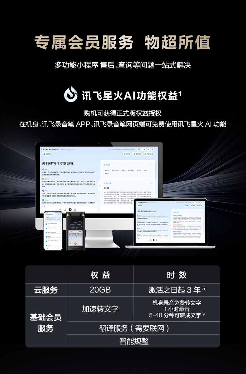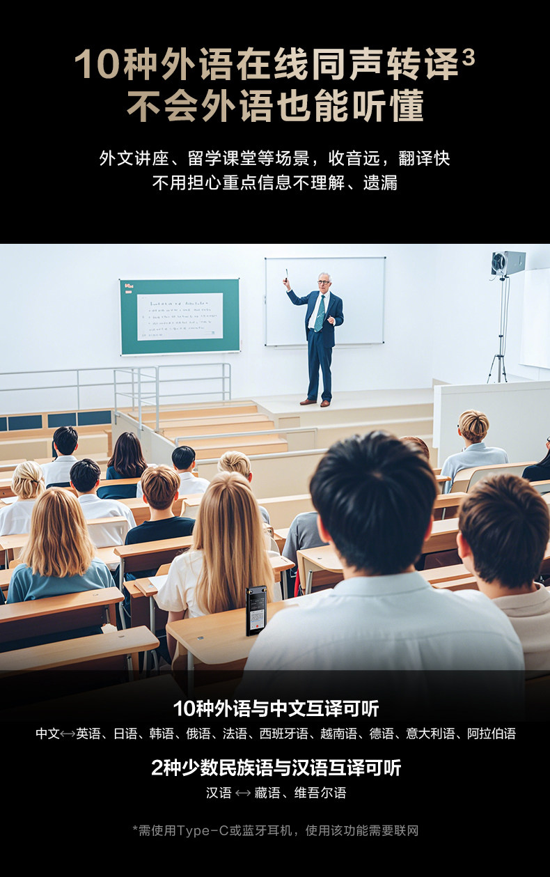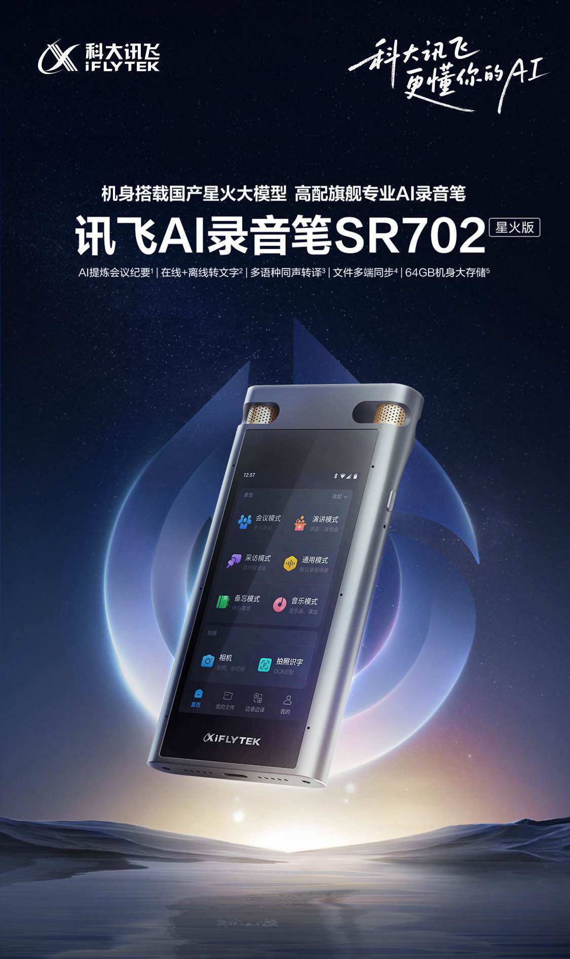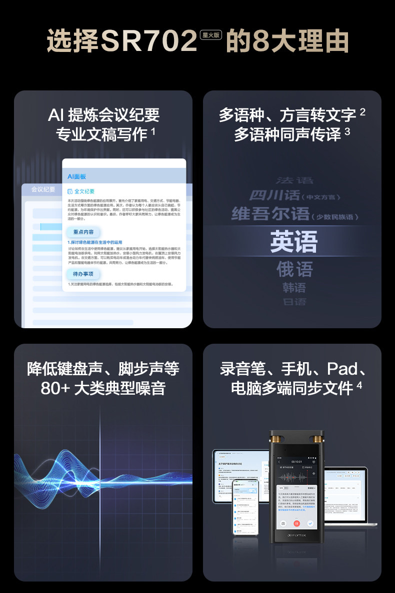 Iflytek Ai Voice Recorder Sr702 Spark Edition Multi-Language Professional Recording Meeting Minutes Recording to Text