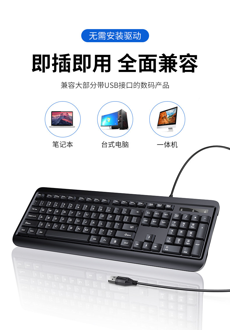 Tafik Keyboard Desktop Computer Home External Keyboard Mouse Wired Waterproof Silent Thin and Light Office General-Purpose
