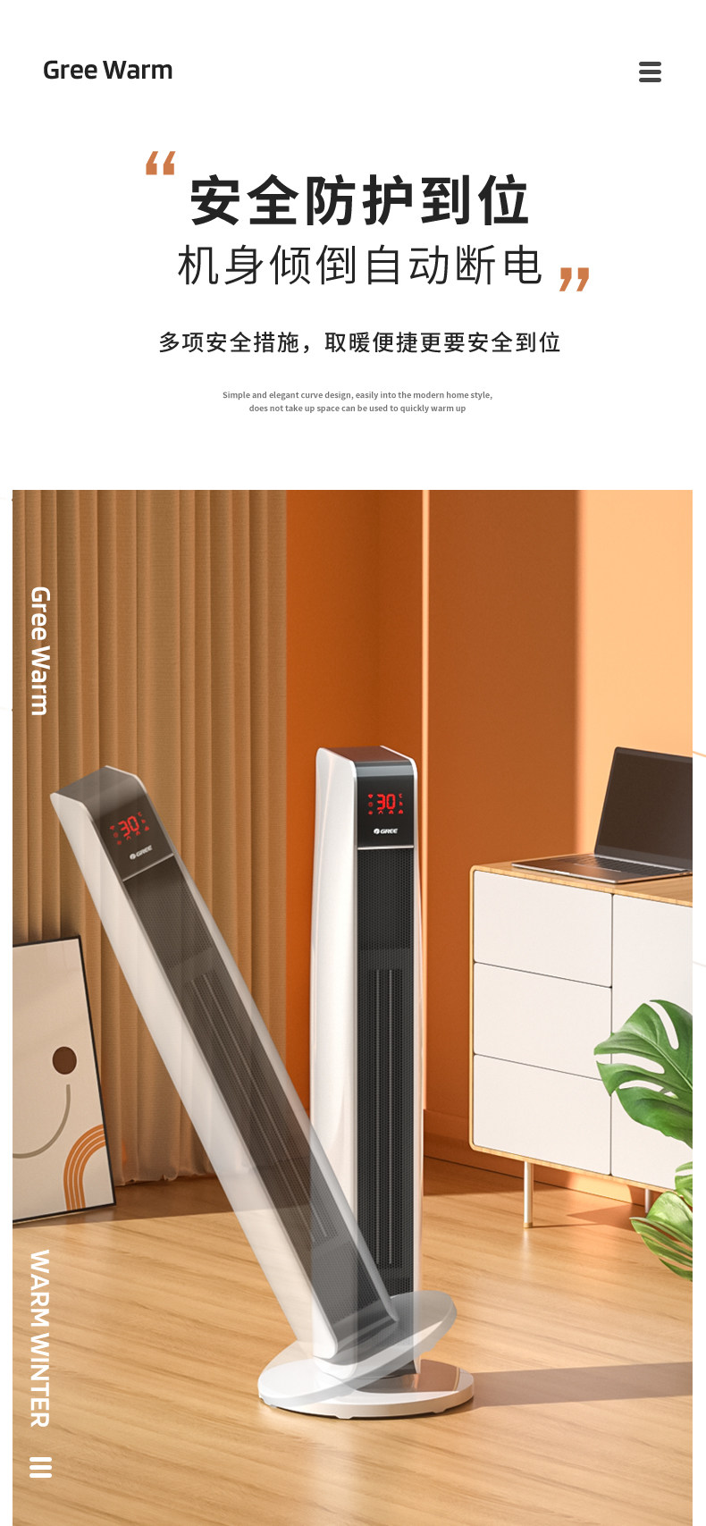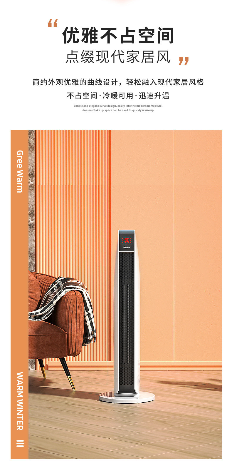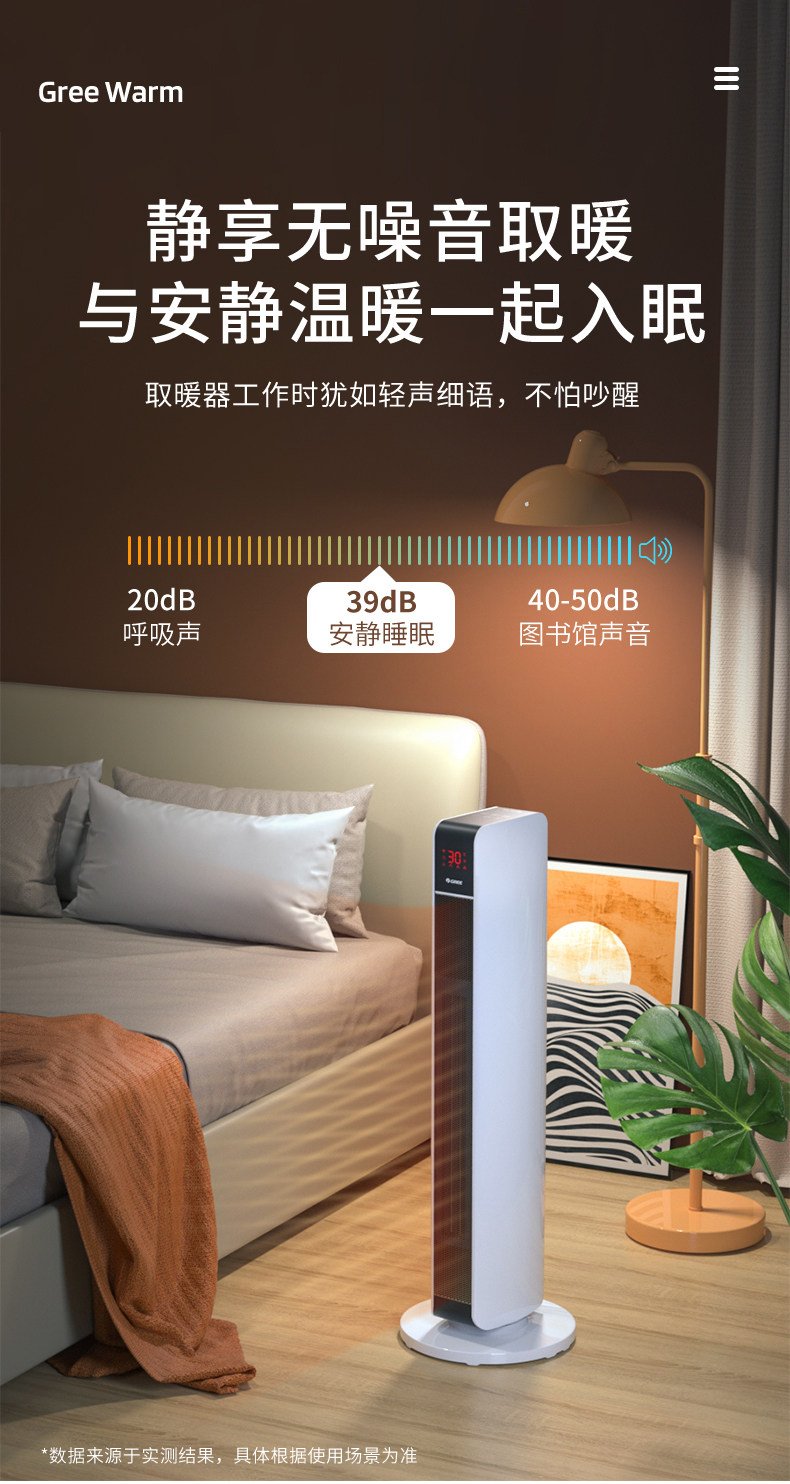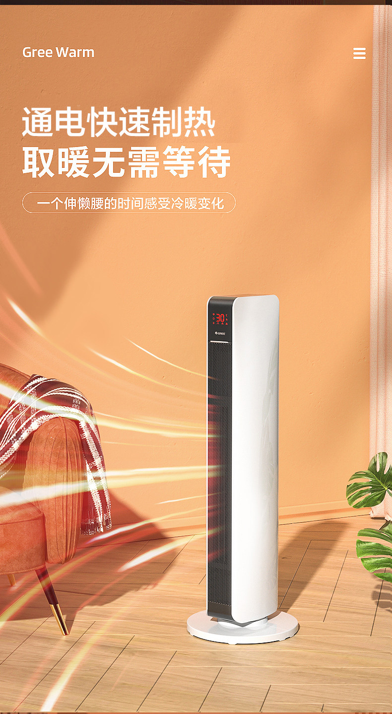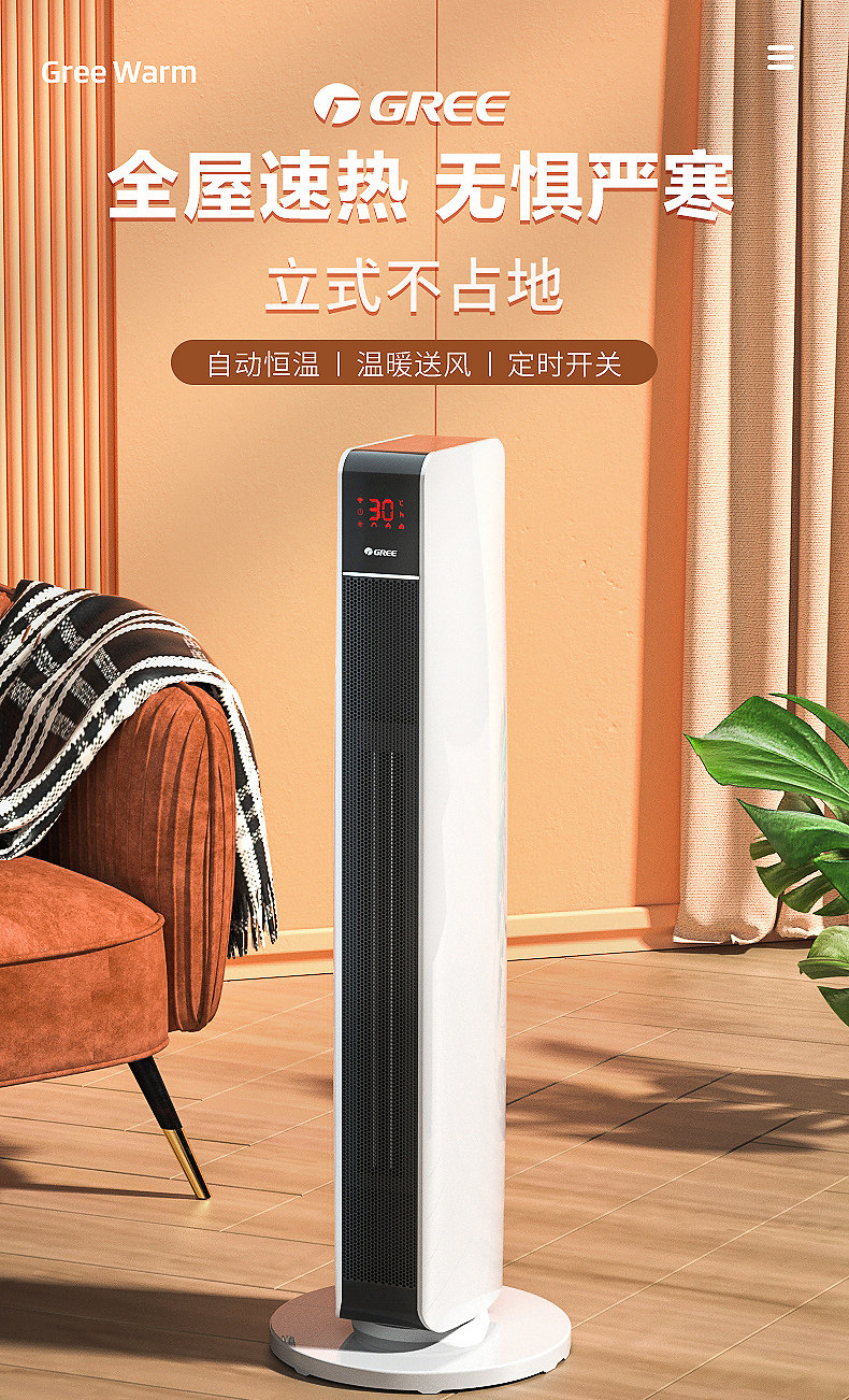 Gree Fan Heater for Home Use, Energy-Saving, Wifi, Oscillating, Electric Heater for Bedroom, Vertical, Remote Control, Fast Heating, Large Area Heater