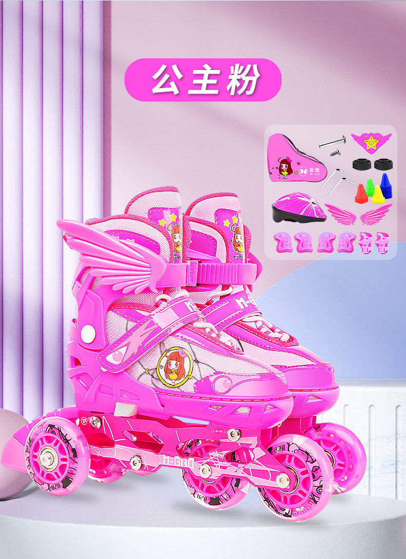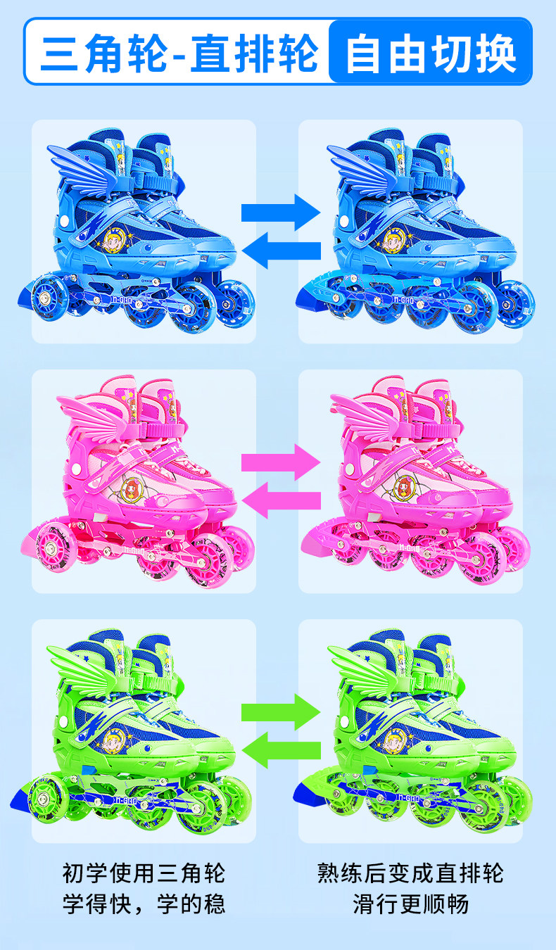 Triangular Roller Skates for Children, Beginner Full Set, Inline Roller Skating, Double Row, for Girls and Boys, Adjustable