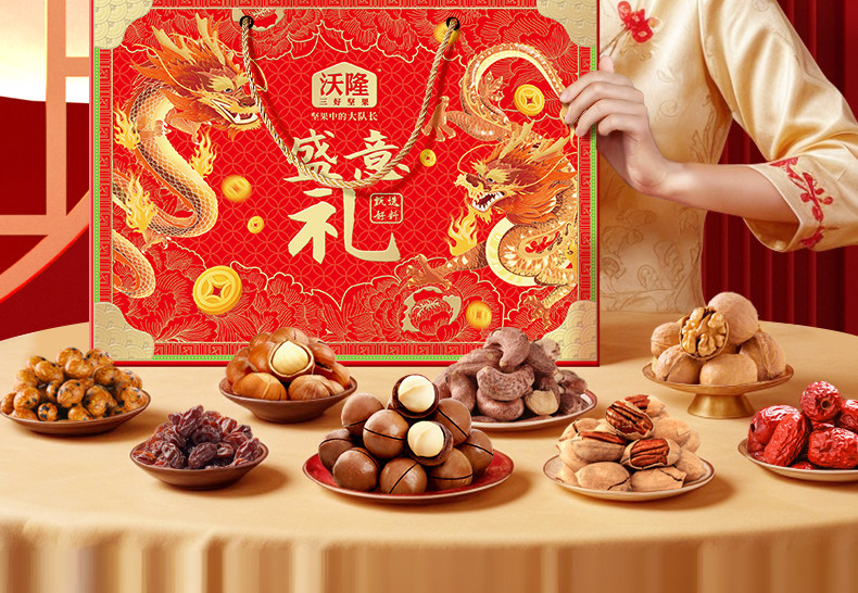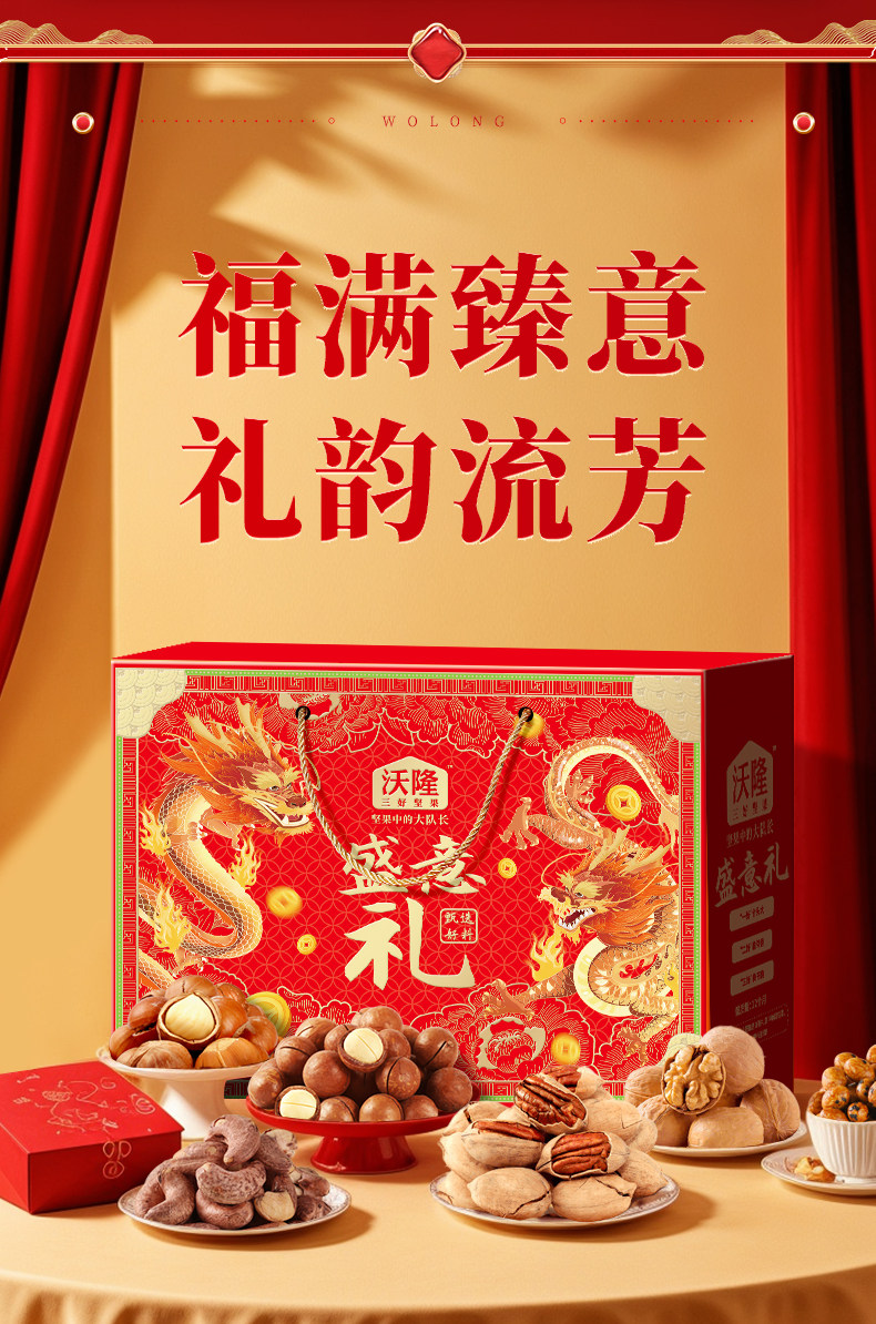Wolong Nut Gift Box Nut Gift 1.22kg Snacks Holiday Gift Great Choice for Stocking up Snacks Roasted Nuts Gift Box Dried Fruits