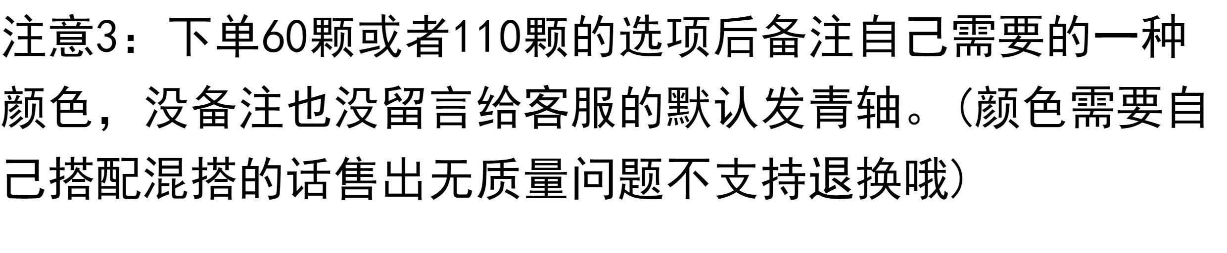 | Color Classification | 10 Standard Green Axes,10 Standard Red Shafts,10 Standard Tea Shafts,10 Standard Black Shafts,10 Standard Purple Shafts,10 Standard Green Axes,10 Rare Gold Axes,10 Rare Silver Shafts,10 Rare Orange Shafts,10 Silent White Shafts,10 Silent Gray Shafts,10 Silent Yellow Shafts,10 Dustproof Green Shafts,10 Dustproof Red Shafts,10 Dustproof Black Shafts,10 Dustproof Tea Shafts,10 Dustproof Purple Shafts,10 Dustproof Green Shafts,Choose Any 60 Pieces of Green, Black, Purple and Green Tea (the Default Is Green Axis if There Is No Remark),Choose Any 90 Pieces of Black, Red, Purple and Green Tea (Canned) (if Not Noted, the Default Is Green Axis),Choose Any 110 Pieces of Green, Black, Purple and Green Tea (Canned) (if Not Noted, the Default Is Green Axis),Choose Any 110 Rare Gold, Silver, or Orange (Canned) Switches (Default Gold Switch if No Preference Is Specified),Silent White, Gray, and Yellow Switches - Choose Any 110 (Jar Packaging) (Default White Switches if No Selection Is Specified),Gateron 12-Axis Shaft Tester,One Gateron 12-Axis Each (Only Shaft Body),Peach Axis V2 10 5-Pin Version,Lime Axis V2 10 5-Pin Version,10 Silent Marine Axes,10 Panda Axes,10 Dustproof Silver Shafts,10 Crystal Axes |