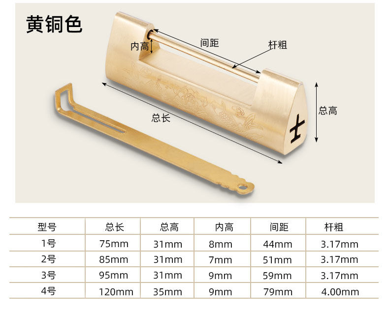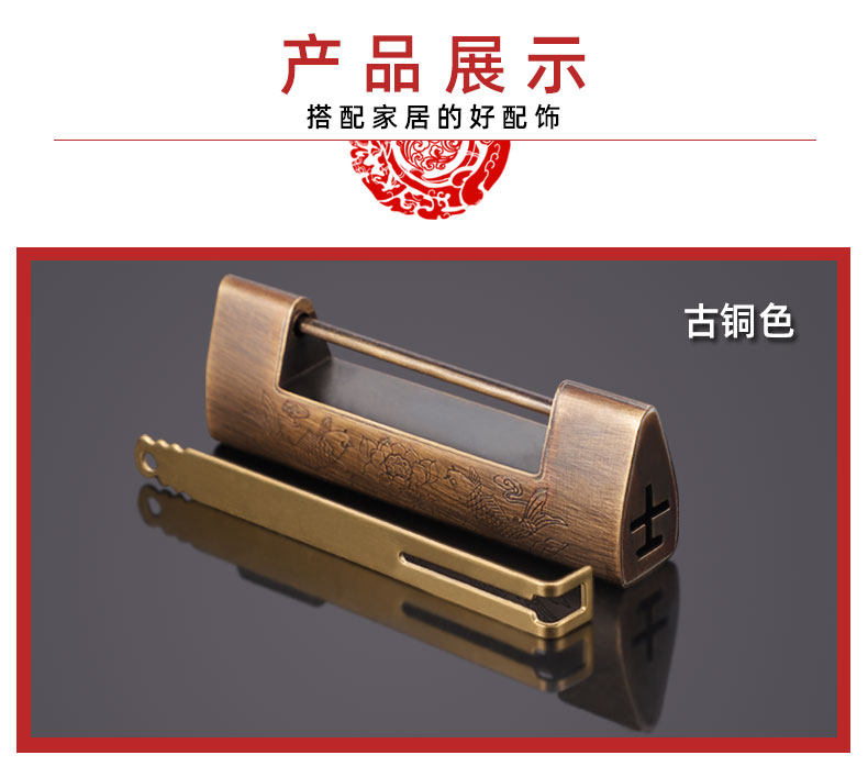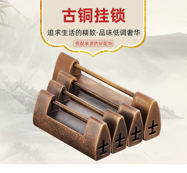 | Color Classification | Copper Color 7.5cm (Spacing 4.4cm),Copper Color 8.5cm (Spacing 5.1cm),Copper Color 9.5cm (Spacing 5.9cm),Copper Color 12cm (Spacing 7.9cm),Today's Special Offer✅Bronze 7.5cm (Spacing 4.4cm),Bronze 7.5cm (Spacing 4.4cm),Bronze 8.5cm (Spacing 5.2cm),Bronze 9.5cm (Spacing 5.9cm),Bronze 12cm (Spacing 7.9cm),Yuanbao Small Lock (Spacing 1.6cm),Fish-Shaped Small Lock (Spacing 3.1cm),Flower and Bird Small Lock (Spacing 2.4cm) |