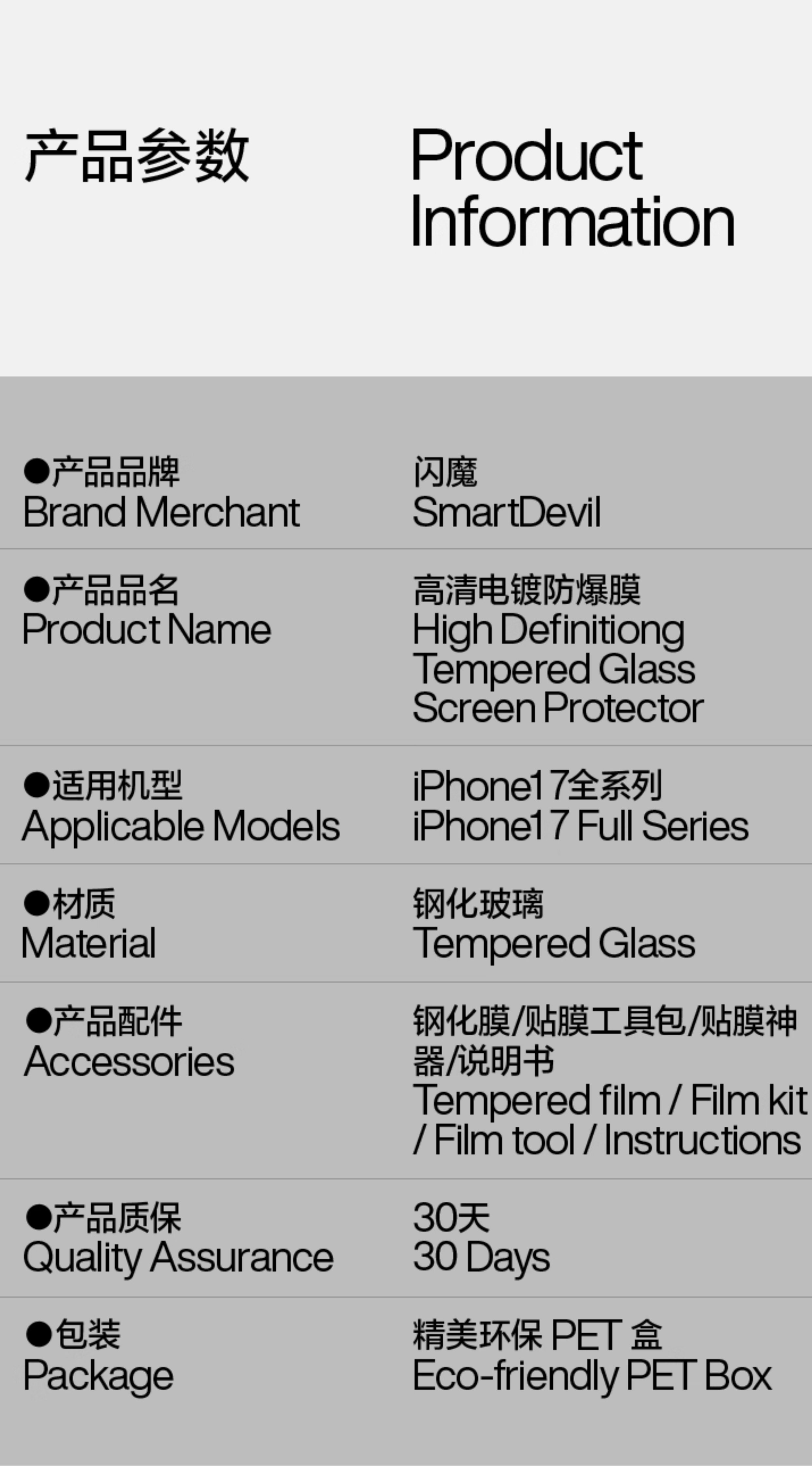 | Package List | Packaging Box, Tempered Glass Screen Protector, Screen Protector Application Kit, User Manual, Certificate of Conformity |