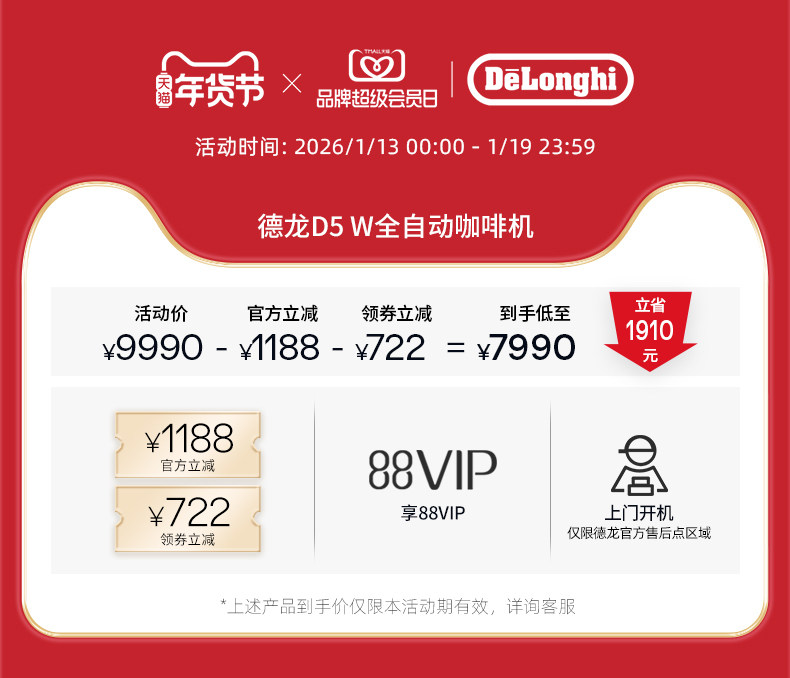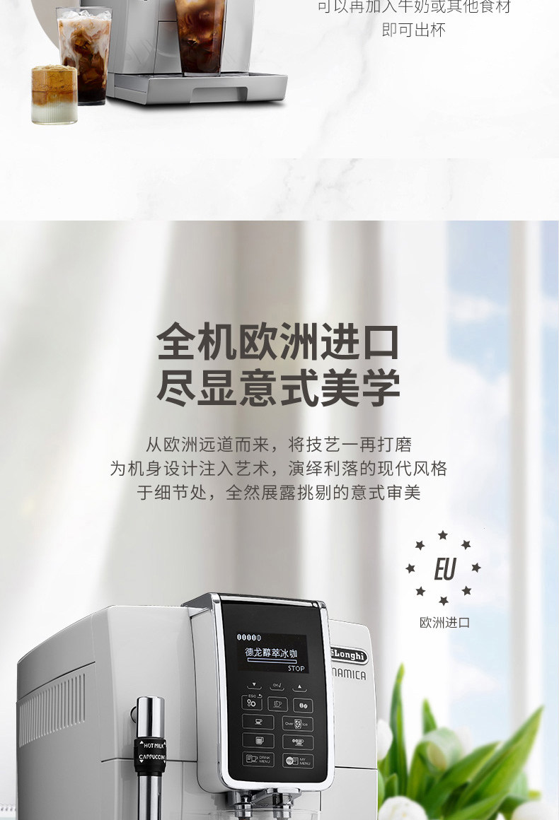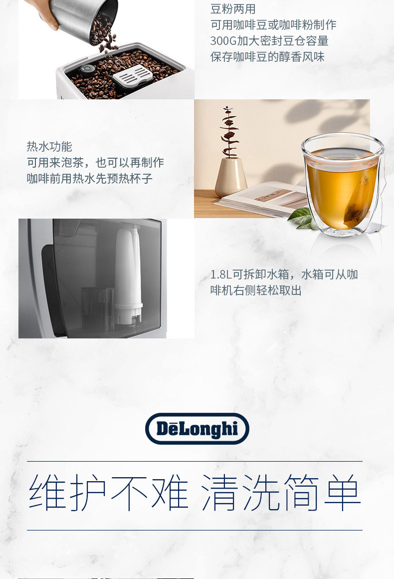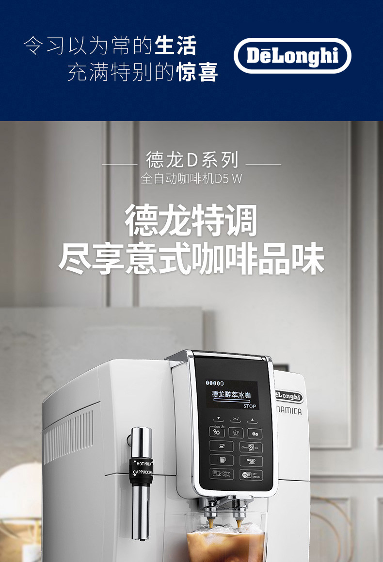 Delonghi D5W Fully Automatic Coffee Machine Imported for Home Use, Small Italian-Style Freshly Ground Coffee for Chinese Offices