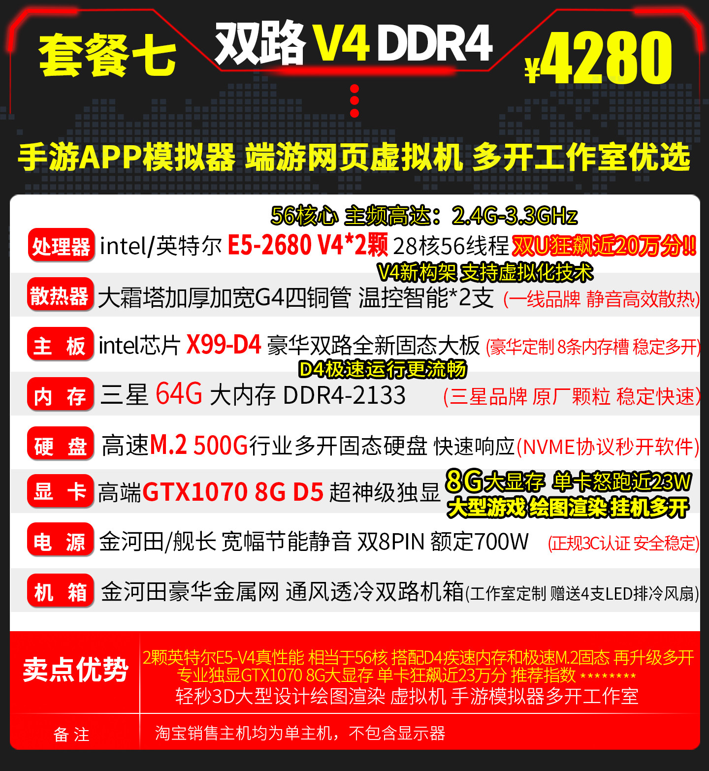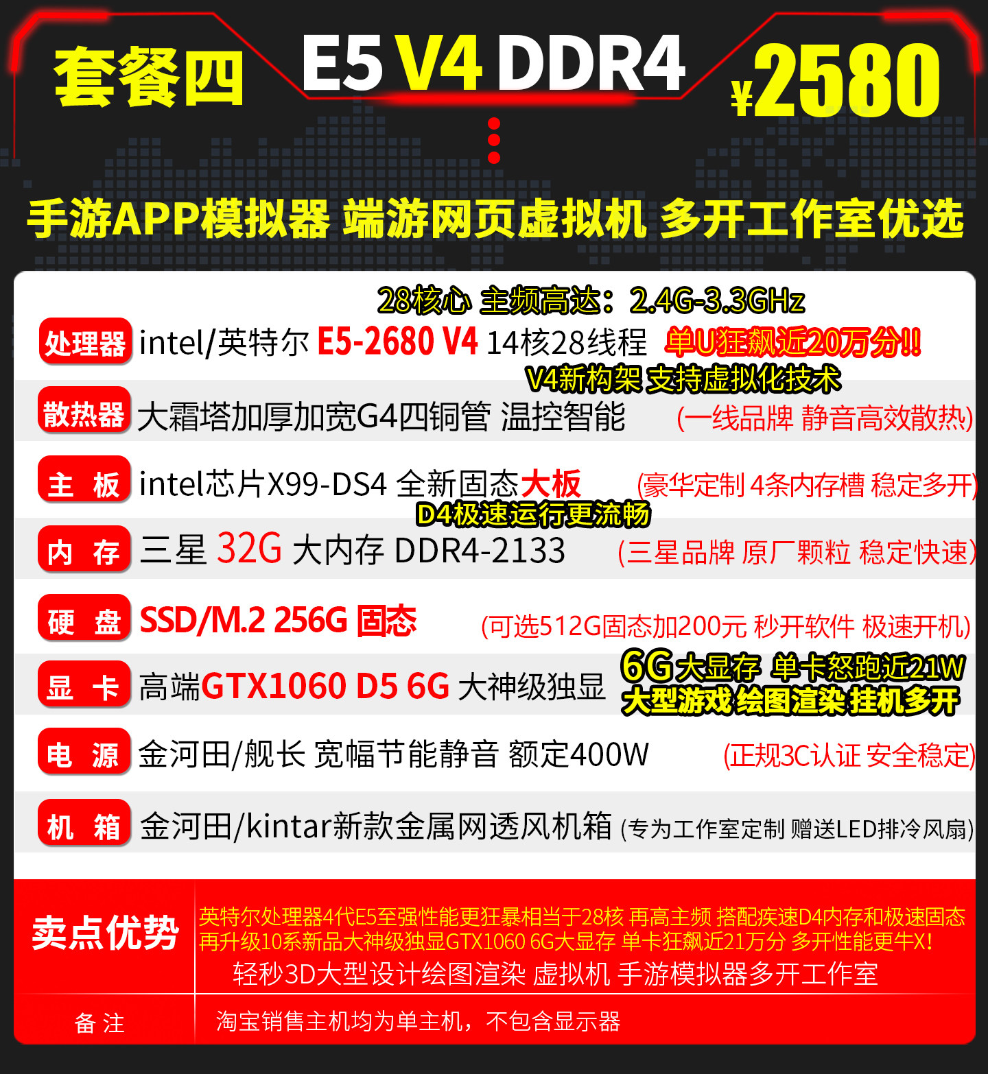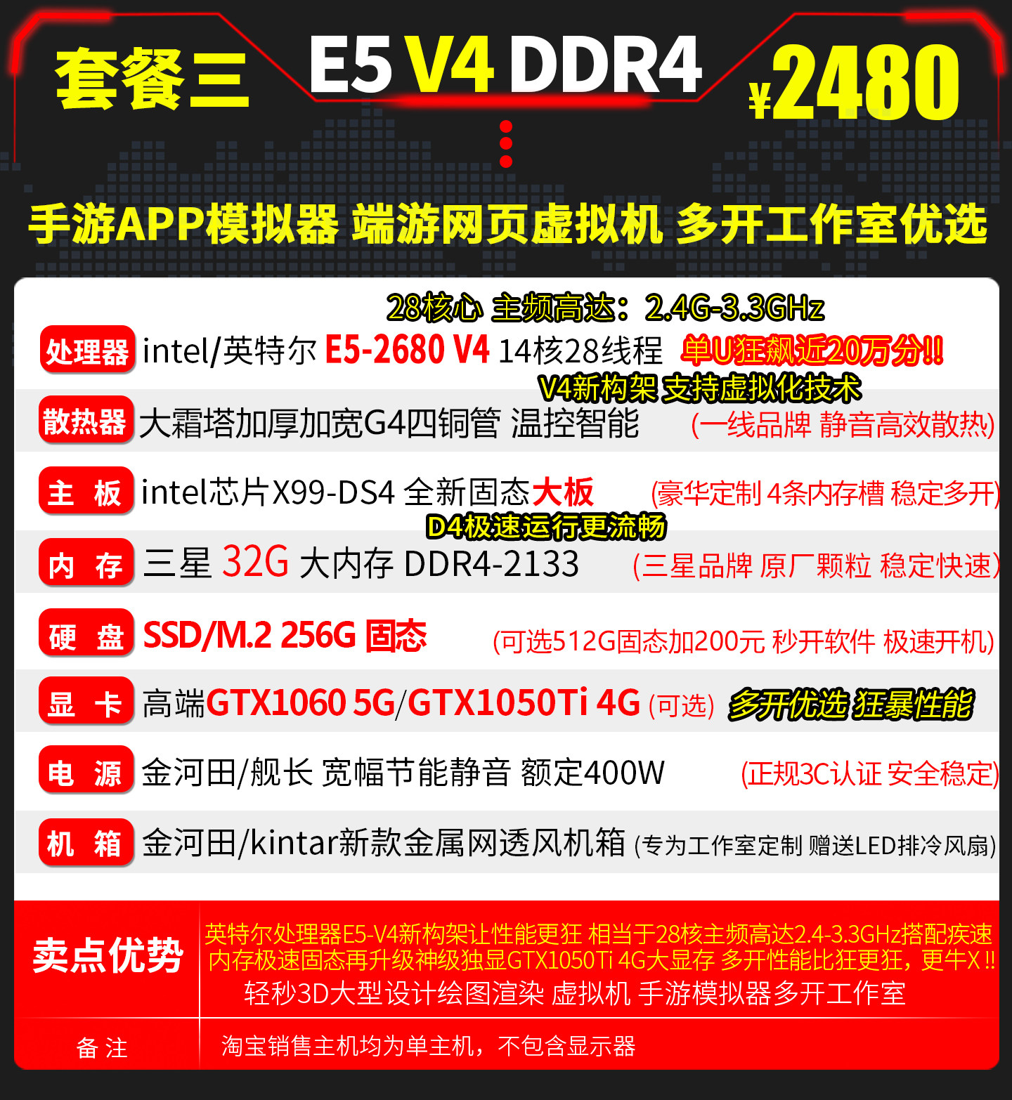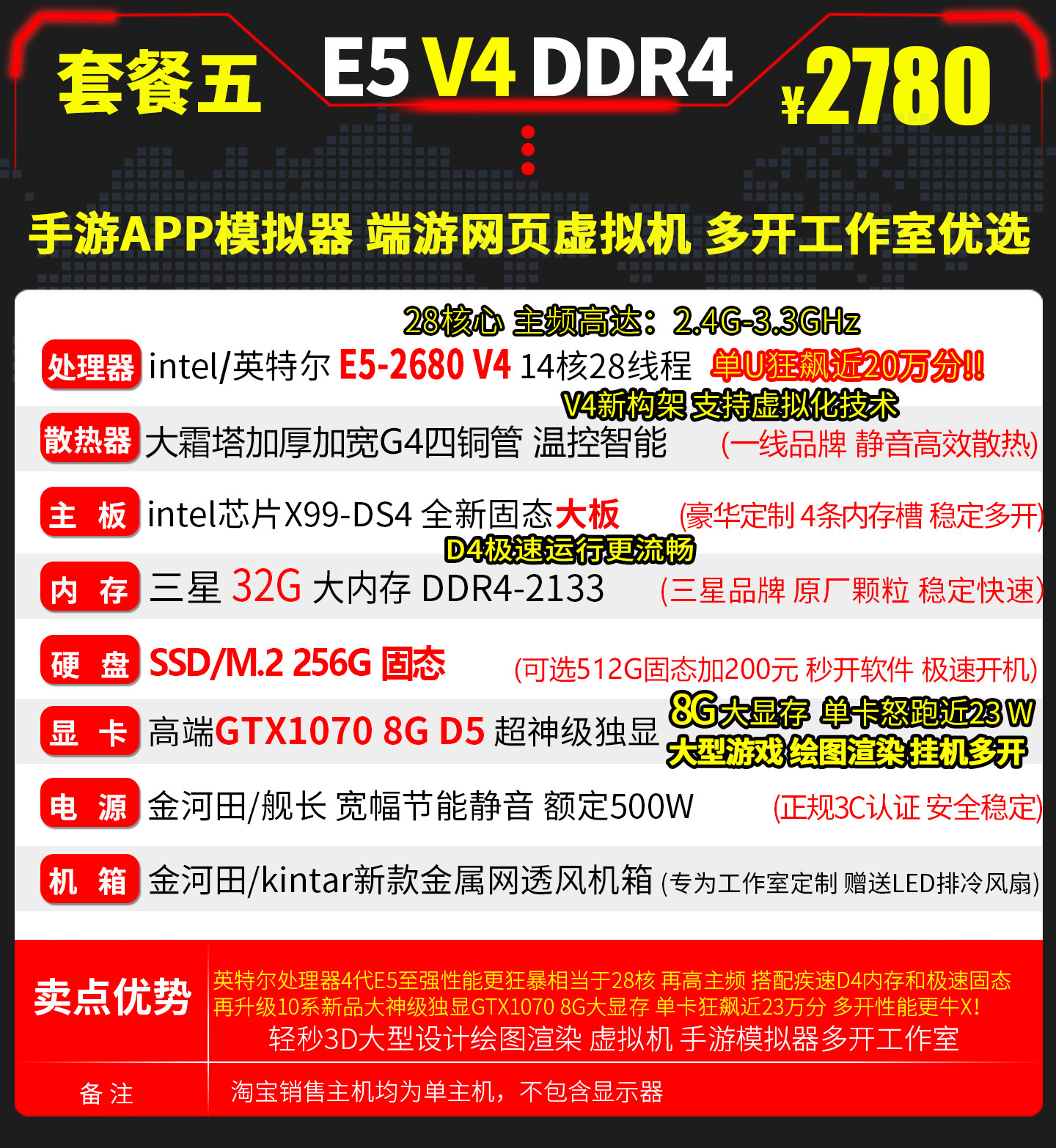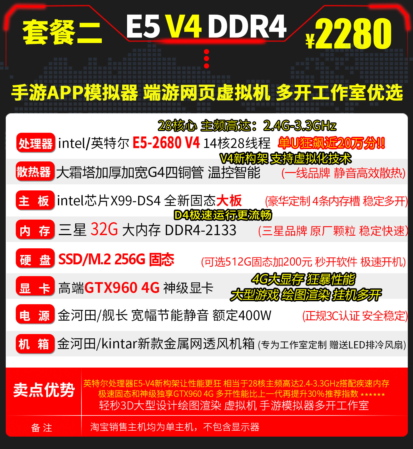 E5 Host 2680V4 Dual-Channel 28-Core Simulator Dnf Virtual Machine Assembly for Mobile Games, Multi-Account, Twelve-Core