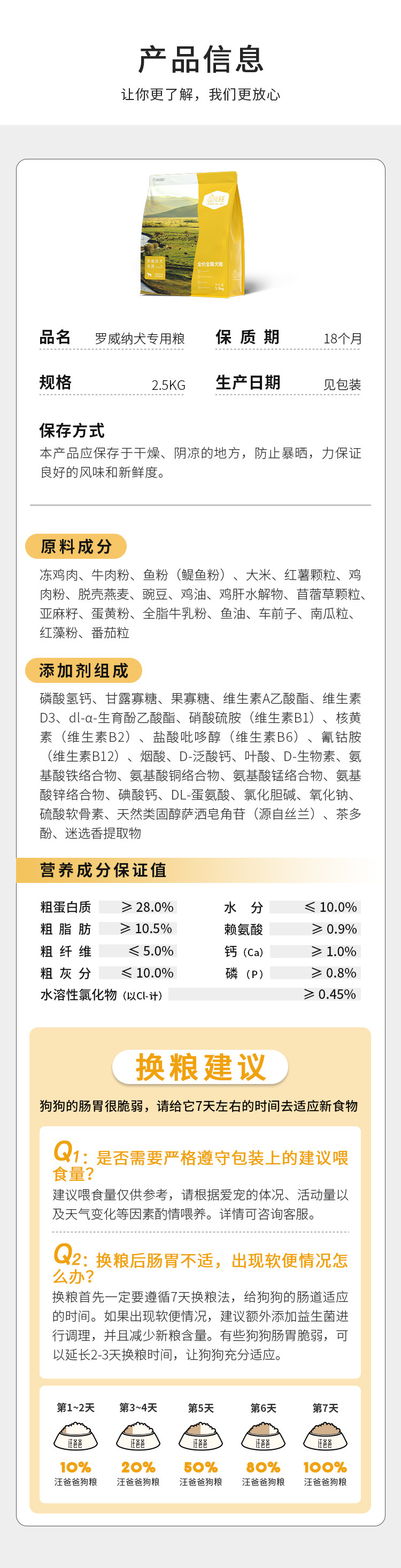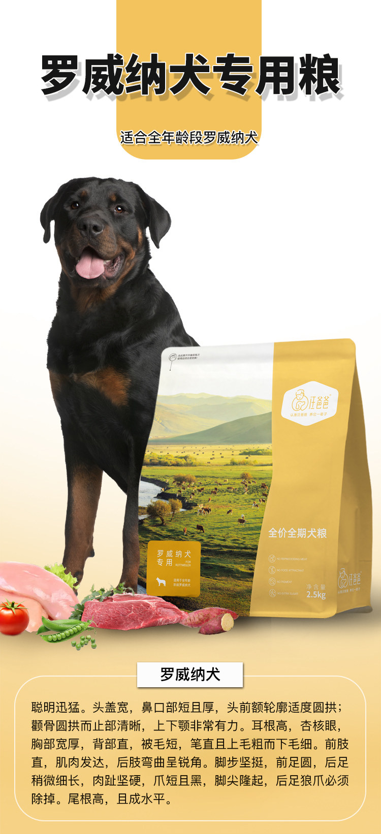Papa Wang's Special Rottweiler Dog Food Nutritional Growth Puppy Adult Dog Medium and Large Dogs Exclusive Formula 2.5kg
