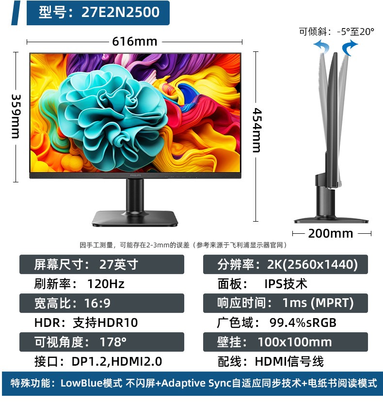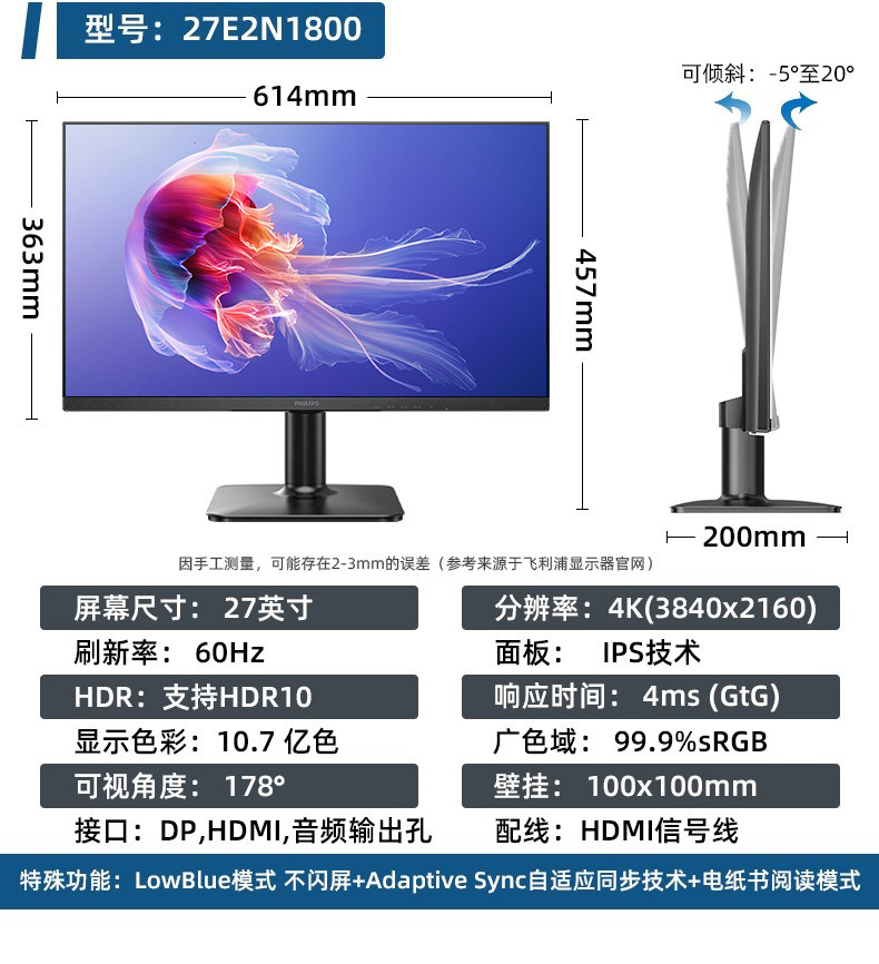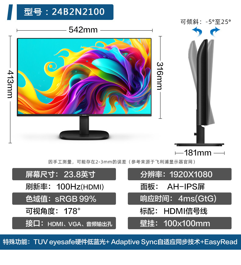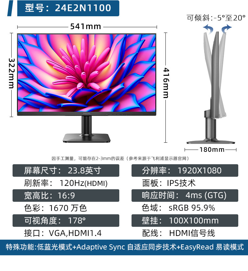 | Color Classification | 21.5inch /75Hz/Va Eye Protection/Low Blue Light,23.8inch /100Hz/Low Blue Light Non-Flickering/Wall-Mounted Plug-In [24E1N1120],White/ 23.8inch /120Hz/Low Blue Light Eye Protection/High-Definition Ips Screen,27inch /100Hz/1Ms Response/Hd Low Blue Light Eye Protection Ips Screen,23.8inch /2K Hd/100Hz/99.91%Srgb/Hdr10/Lift and Rotate,23.8inch /2K Hd/144Hz/1Ms Response/Low Blue Light Eye Protection Ips Screen,27inch /2K Hd/120Hz/Low Blue Light Eye Protection Ips Screen,White/ 27inch /120Hz/Low Blue Light Eye Protection/High-Definition Ips Screen,White/ 27inch /2K Hd/144Hz/Ips Hardware Low Blue Light Eye Protection Screen/Hdr10,27inch /4K Ultra-Clear/Low Blue Light Eye Protection/Ips Screen/High Color Gamut],31.5inch /2K Hd/100Hz High Refresh Rate/Low Blue Light Eye Protection Ips Screen/Wide Color Gamut |