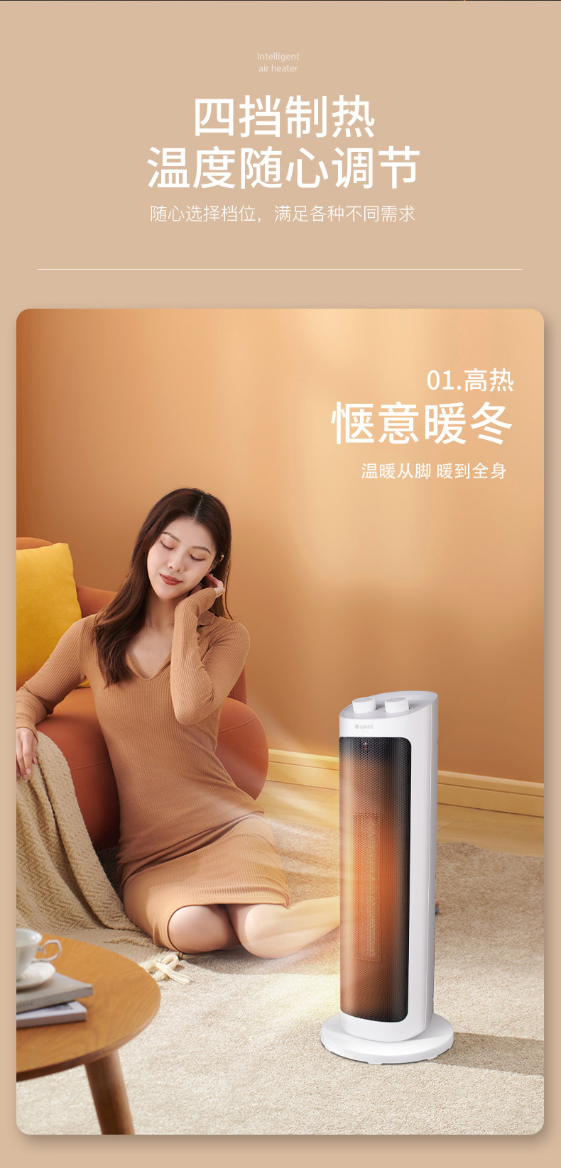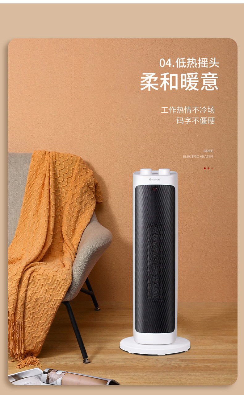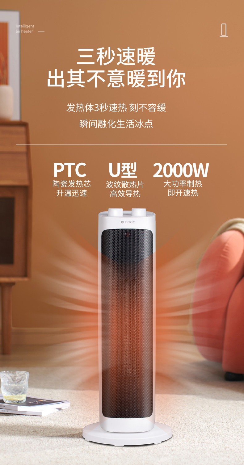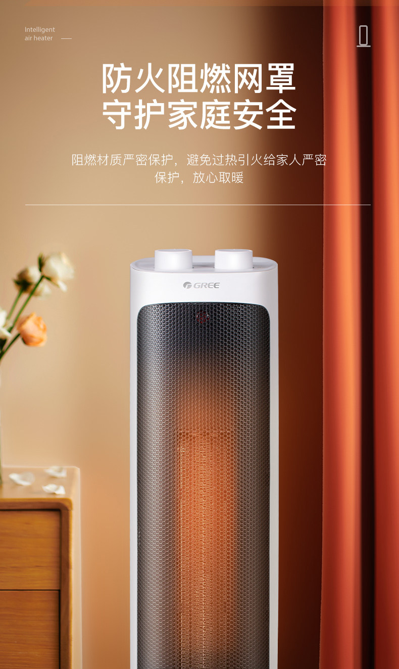 Gree Heater for Home Use in the Bedroom, Quiet Heating, Energy-Saving Heater, Vertical Oscillating Fast Heating, Strong Wind Heater