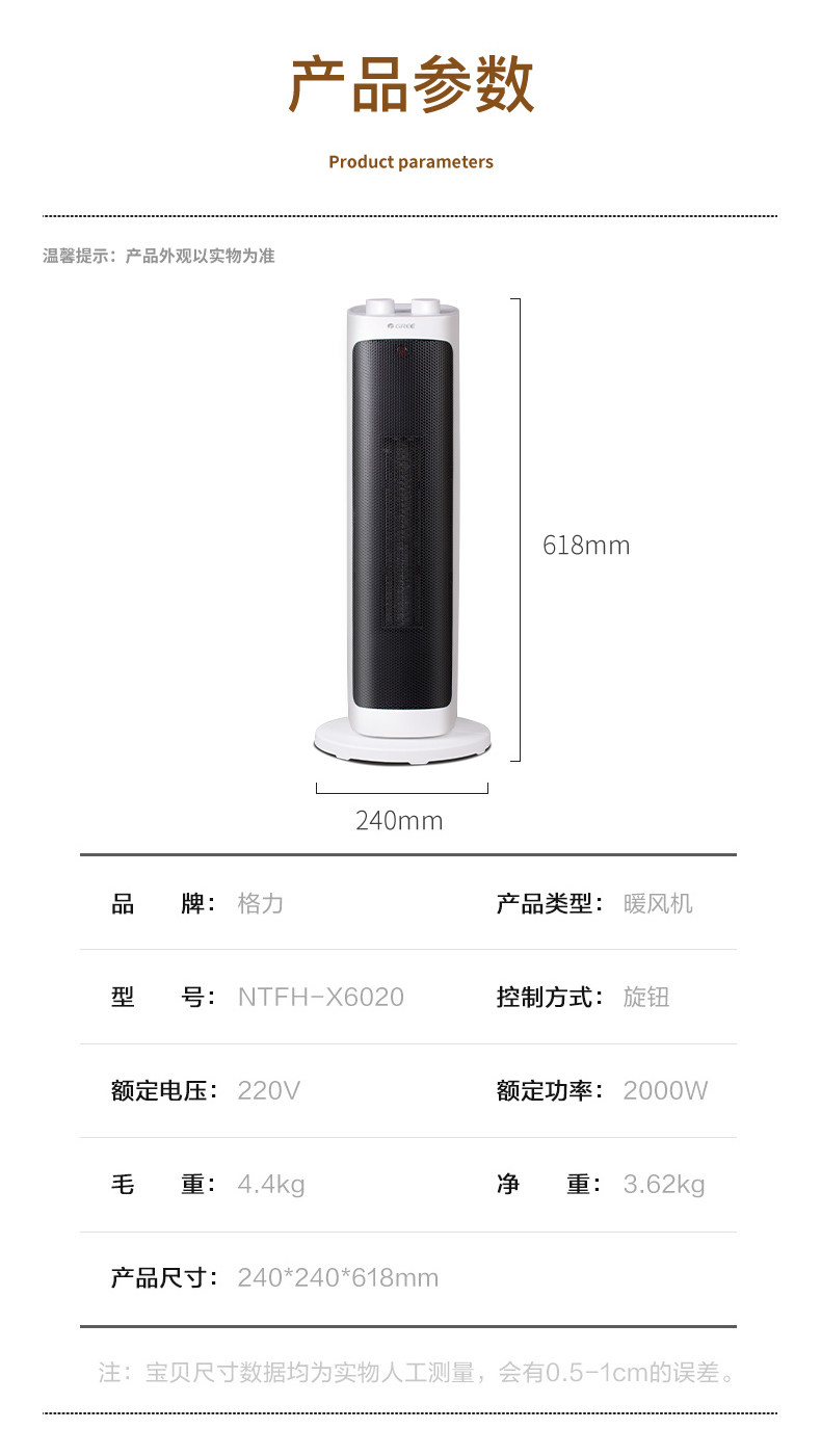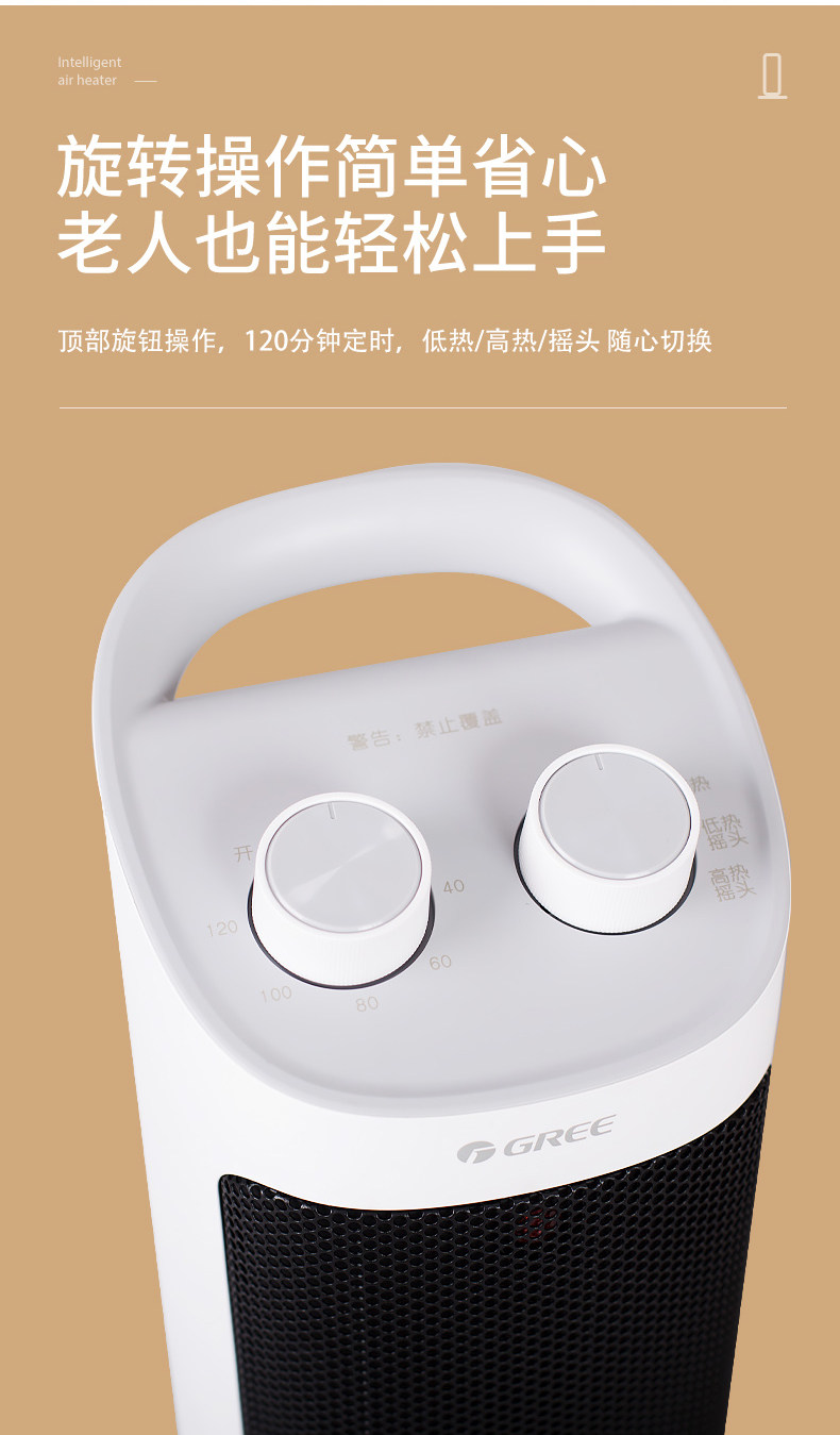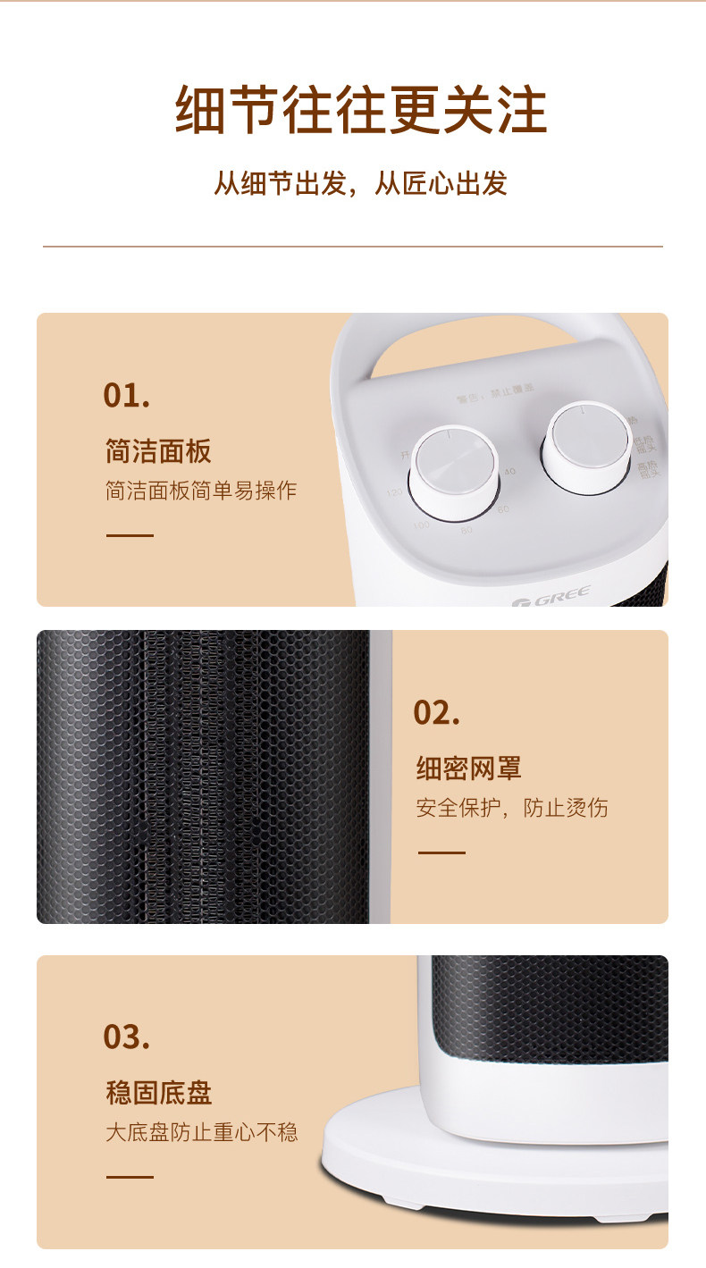 Gree Heater for Home Use in the Bedroom, Quiet Heating, Energy-Saving Heater, Vertical Oscillating Fast Heating, Strong Wind Heater