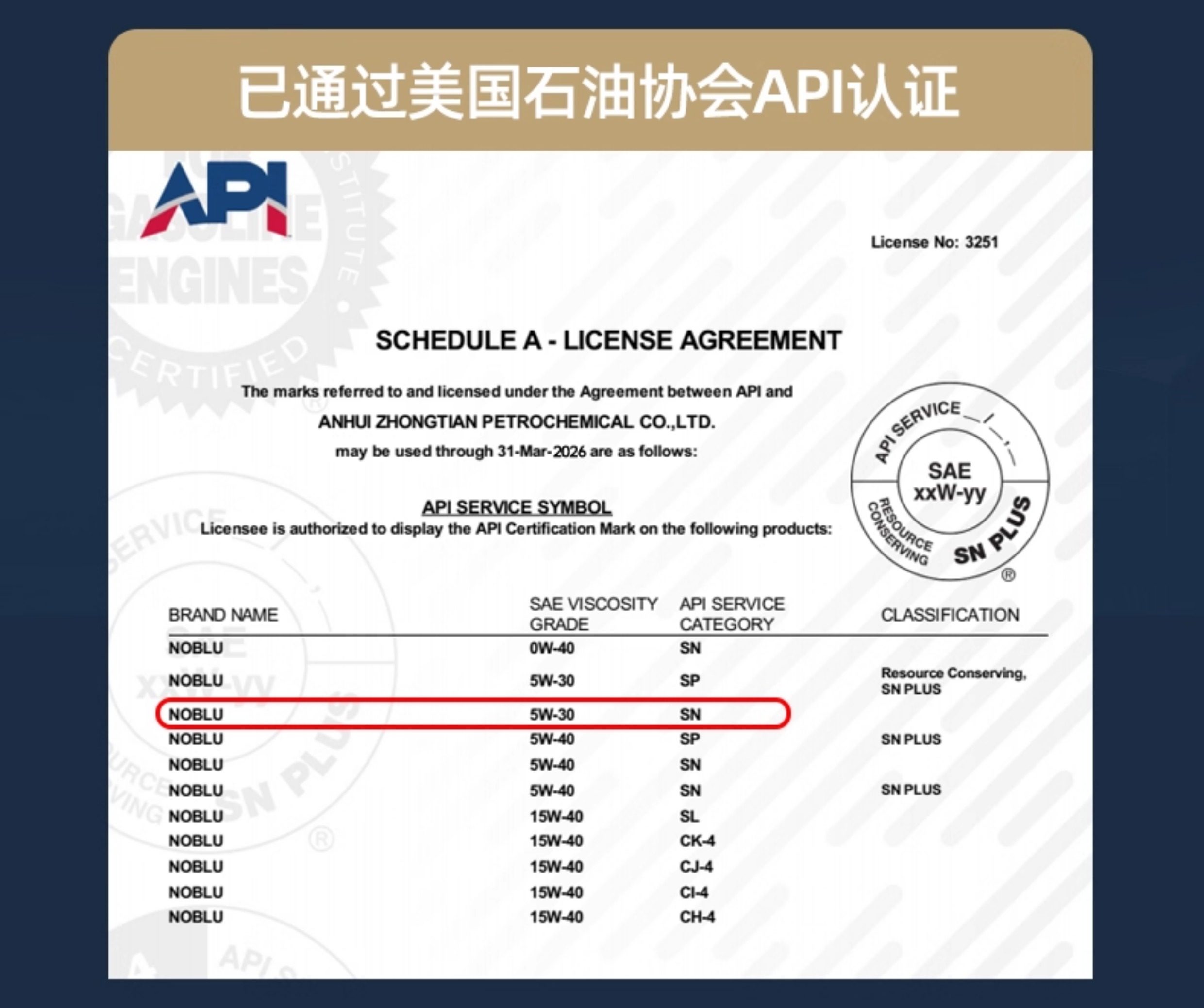| Engine Oil Classification | Fully Synthetic Engine Oil |