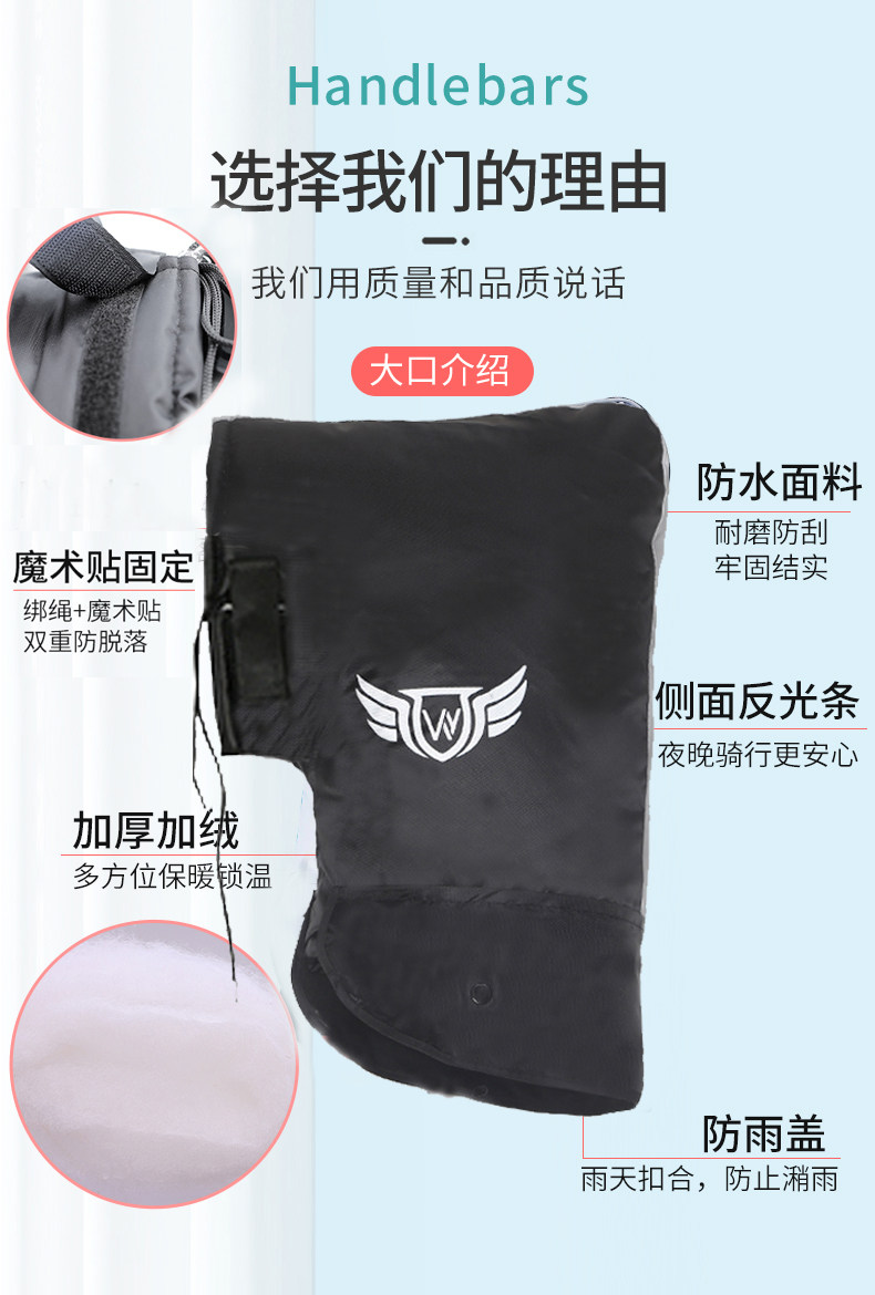 Electric Vehicle Handlebar Covers, Winter Version, Fleece-Lined, Thickened, Windproof, Warm, Waterproof, Cold-Proof, for Electric Scooters and Motorcycles