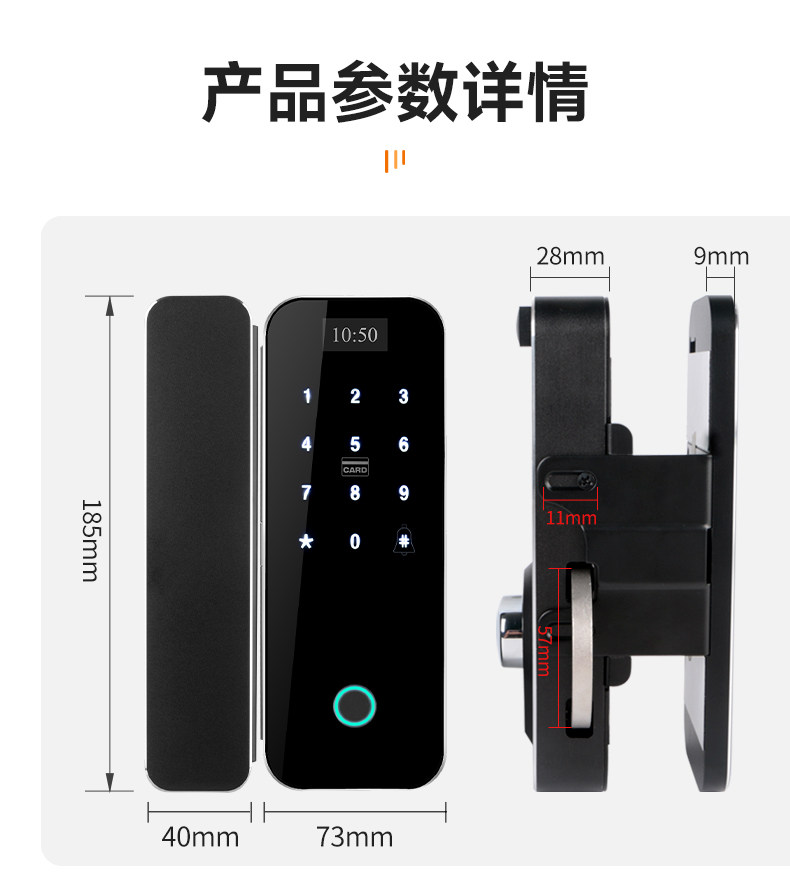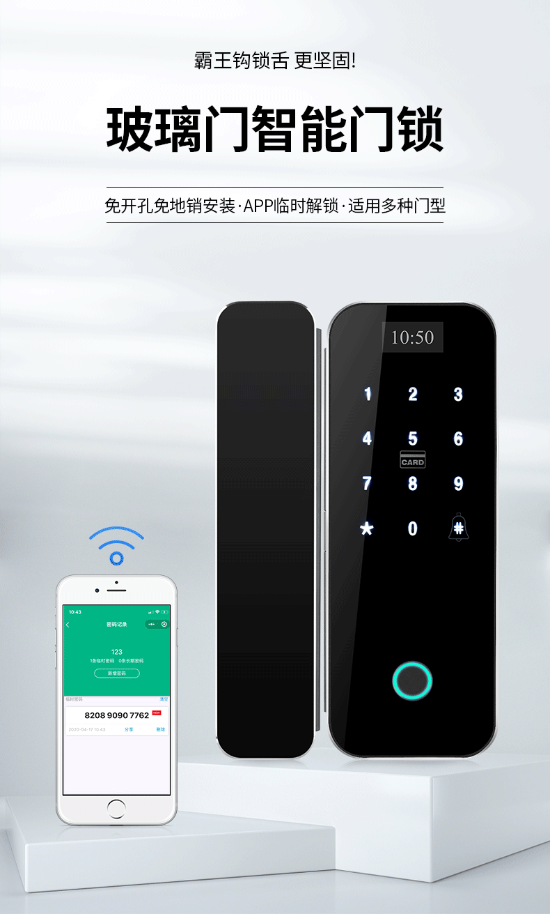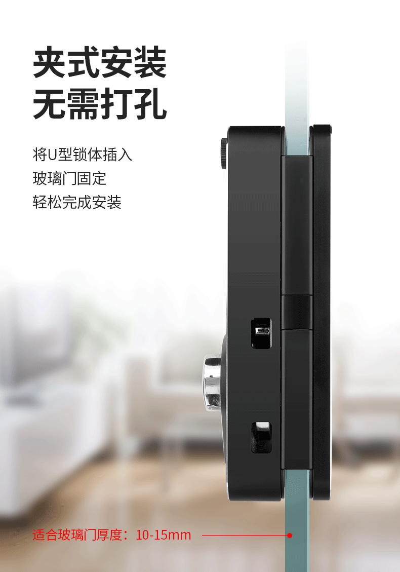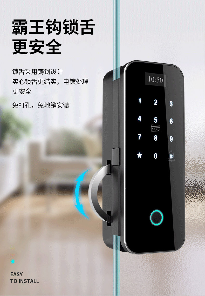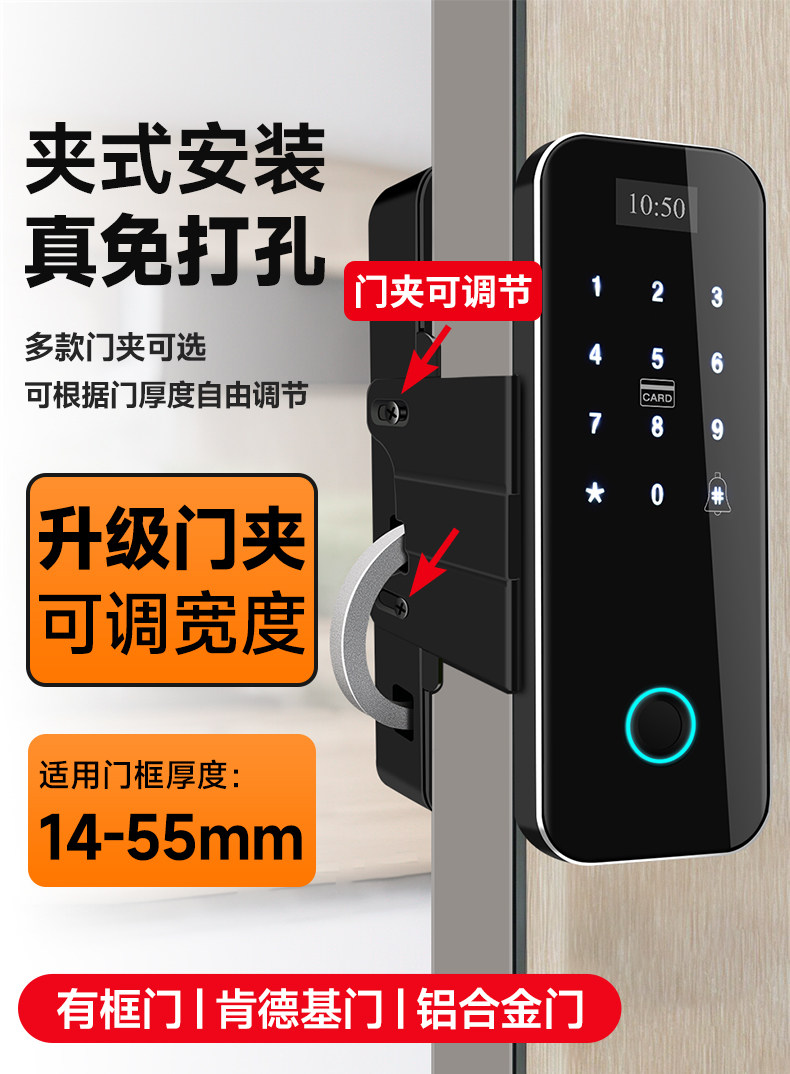 Zucon Office Glass Door Fingerprint Password Lock Shop Sliding Sliding Door Digital Lock Hole-Free Overlord Hook
