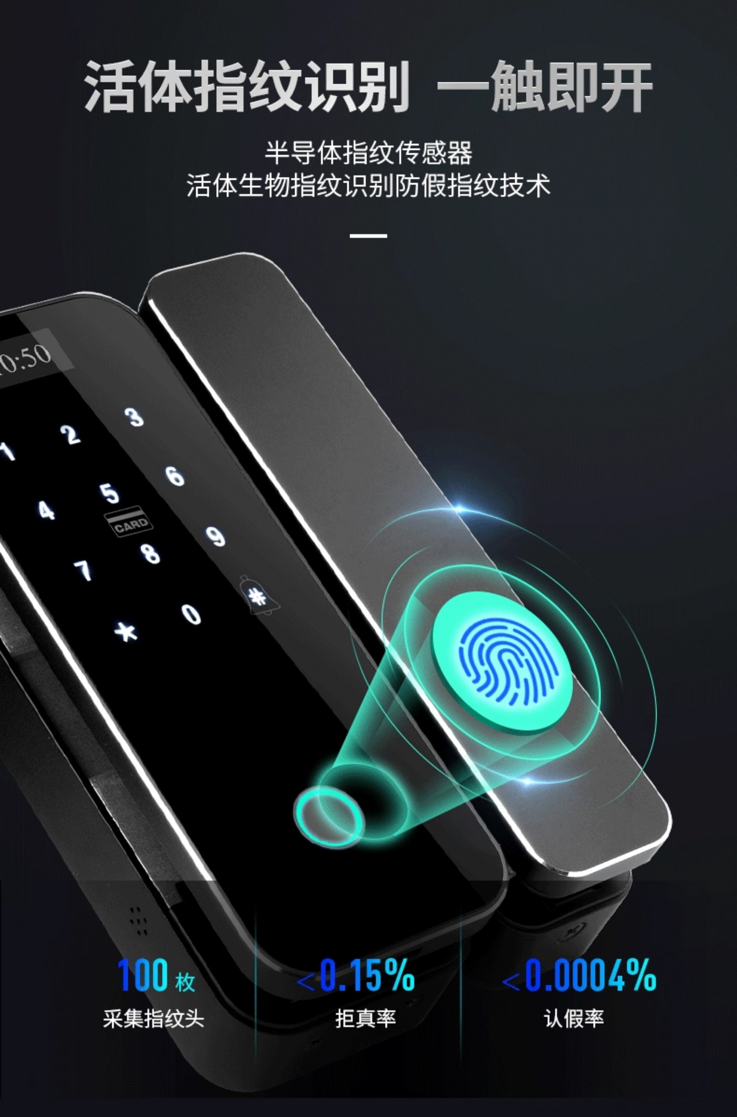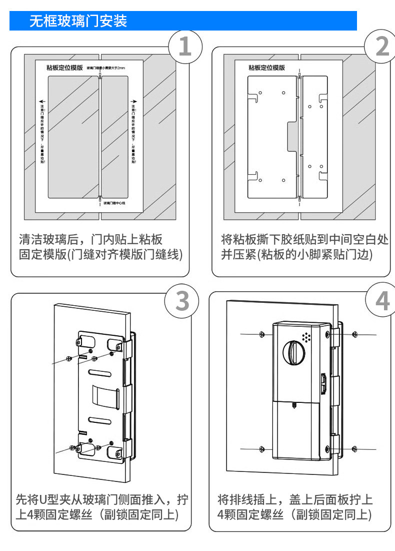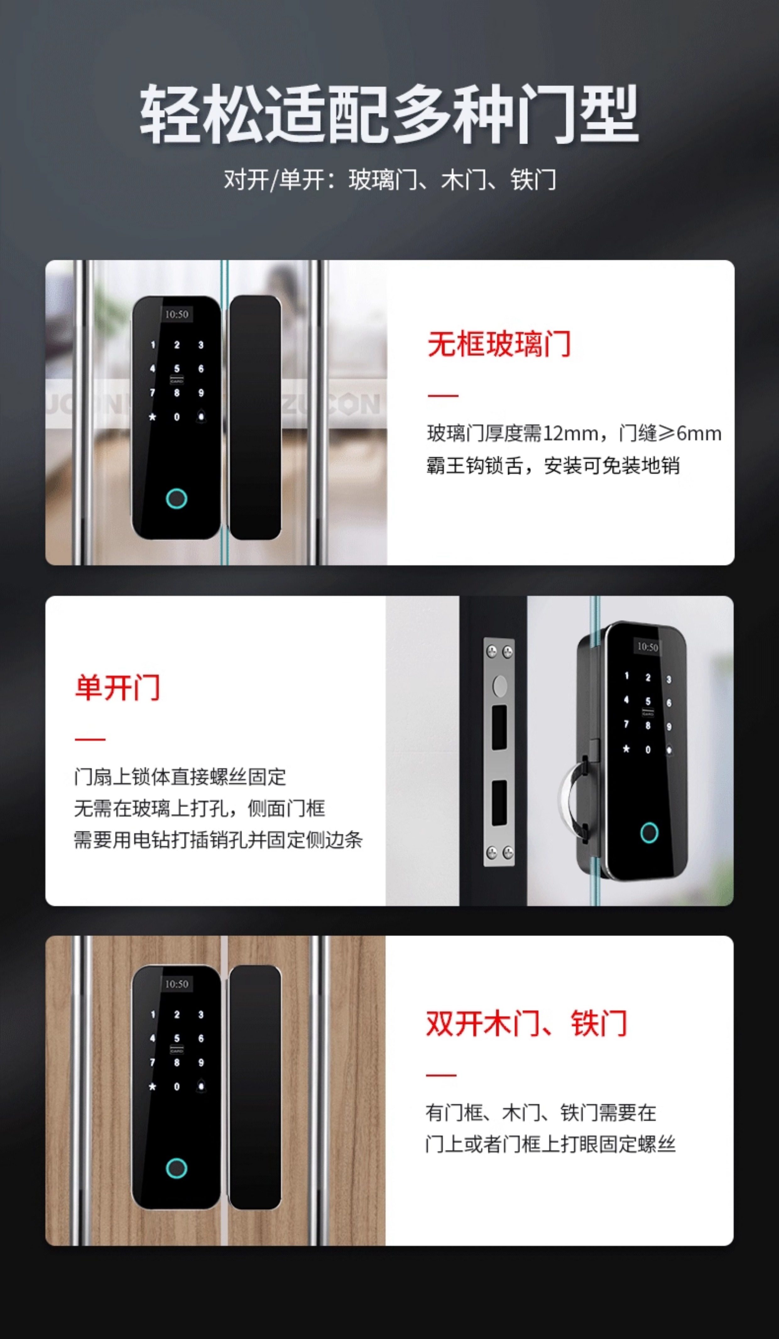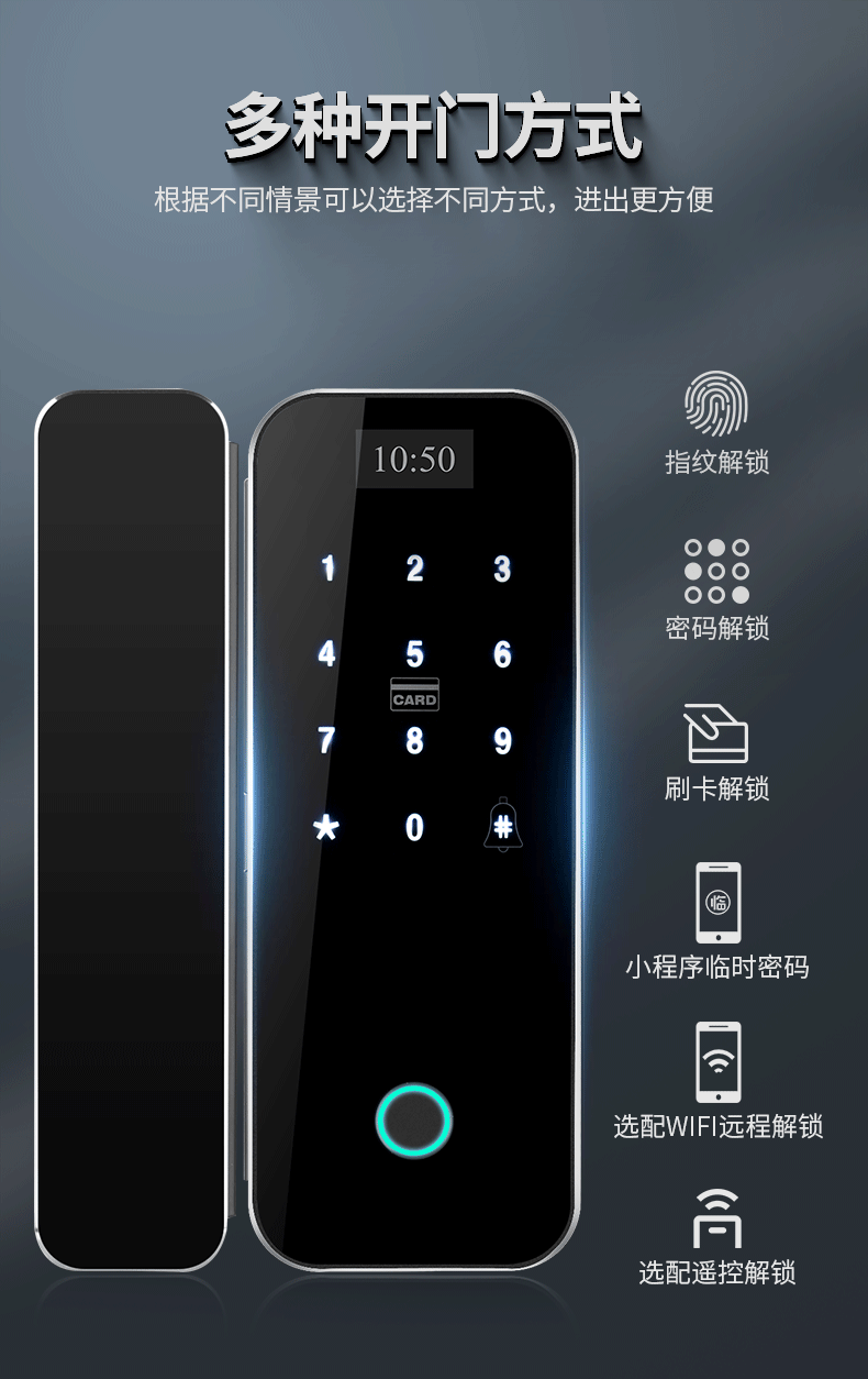 Zucon Office Glass Door Fingerprint Password Lock Shop Sliding Sliding Door Digital Lock Hole-Free Overlord Hook