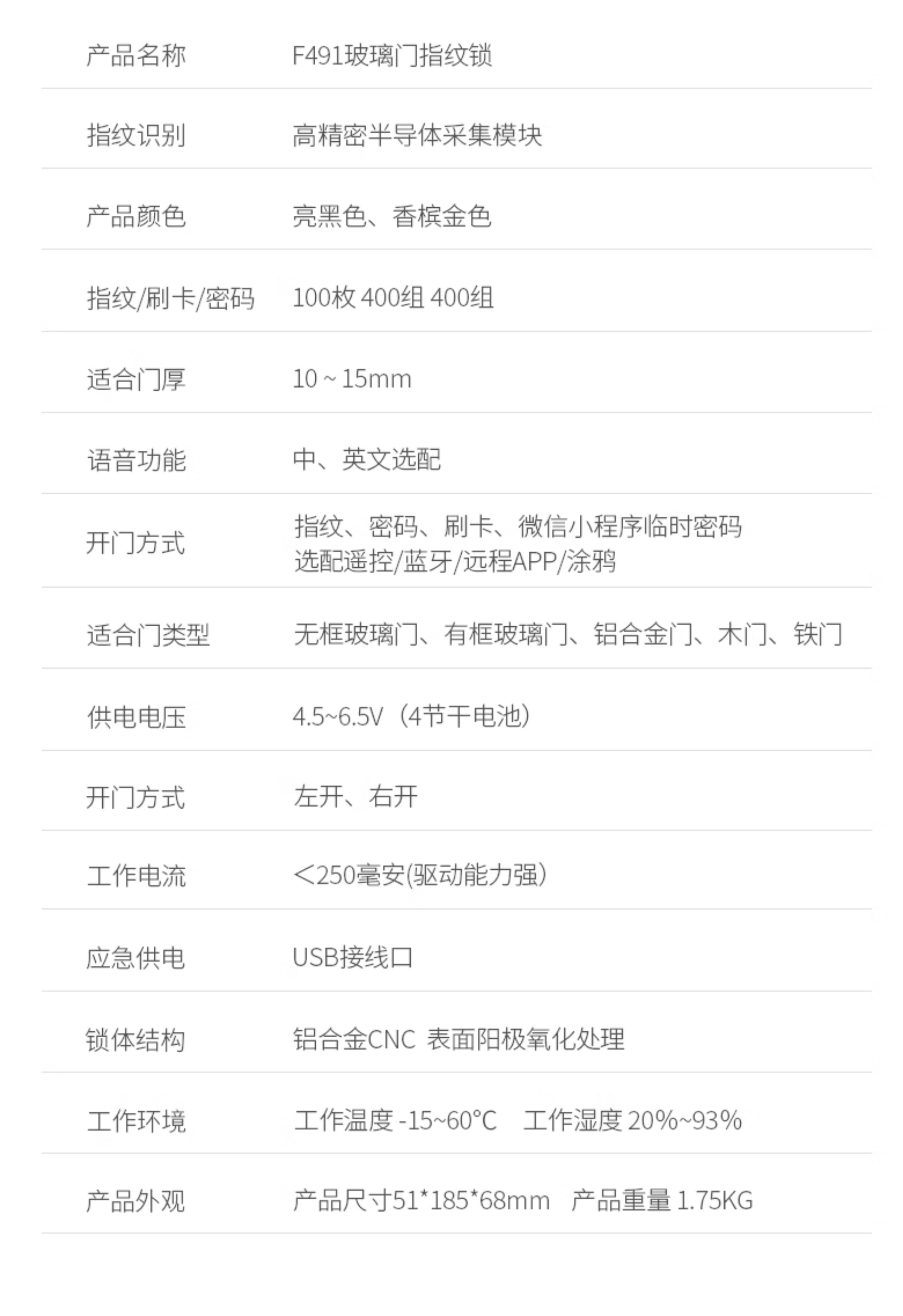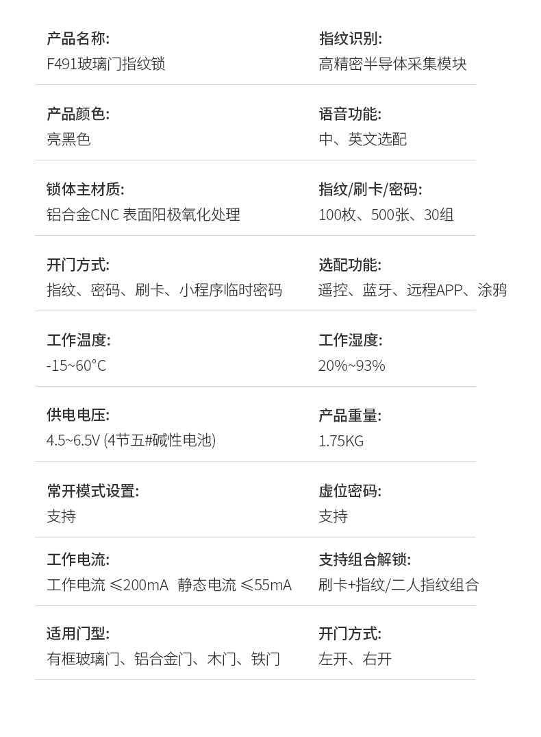 | Finish Color | Bright Black [Double/Single Full Glass Door] No Floor Sales,Bright Black [Single Glass Door, Door Frame Edge Needs to Be Drilled],Bright Black [Wooden/Iron/Framed Door, the Door and Door Frame Need to Be Drilled] No Floor Pins Required,Bright Black + Wifi Graffiti Remote Unlocking [This Version Cannot Be Equipped with Remote Control],Champagne Gold [Double/Single Full Glass Door] - No Floor Mount Required,Champagne Gold [Single Glass Door, Door Frame Edging Requires Drilling],Champagne Gold [Wood/Iron/Framed Door, Door and Frame Require Drilling] - No Ground Nails Required,Champagne Gold + Wifi Graffiti Remote Unlocking [This Version Cannot Be Equipped with Remote Control],Door Clip Adjustment Model-Single/Double Door [Can Be Installed with Door Thickness 14-55mm] |