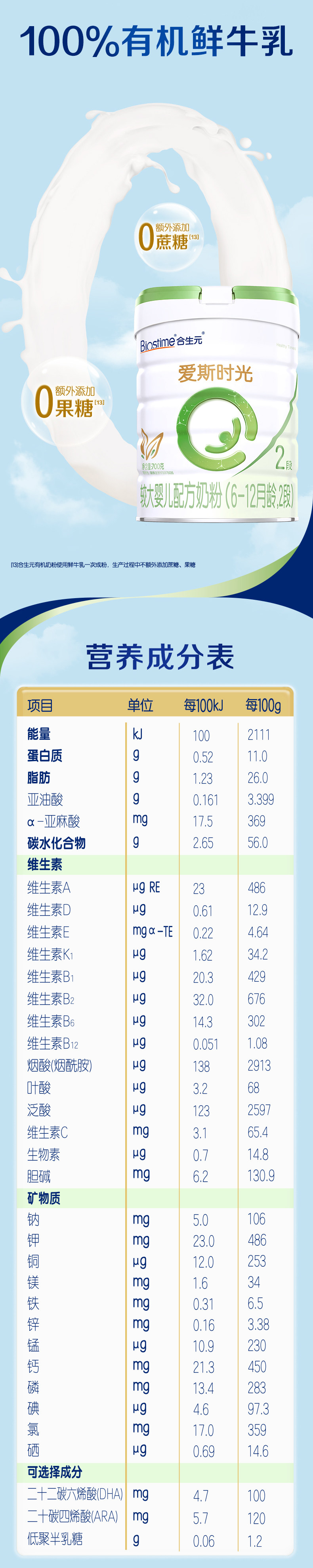 Biostime Aisigang Organic New National Standard Stage 2 Infant Formula Milk Powder 4 Cans 700g Imported 6-12 Months