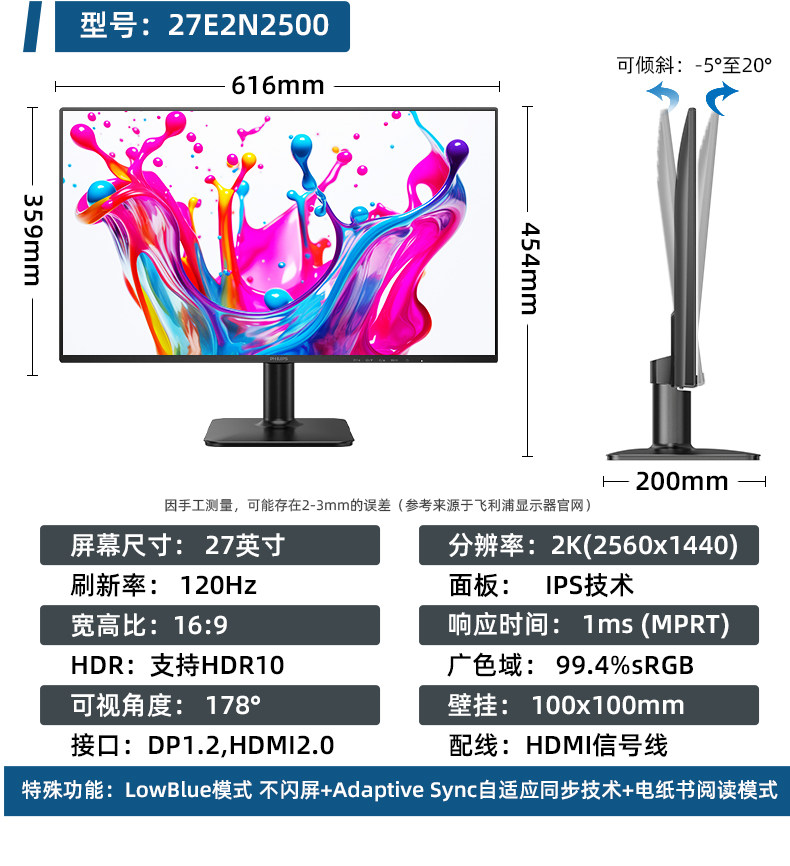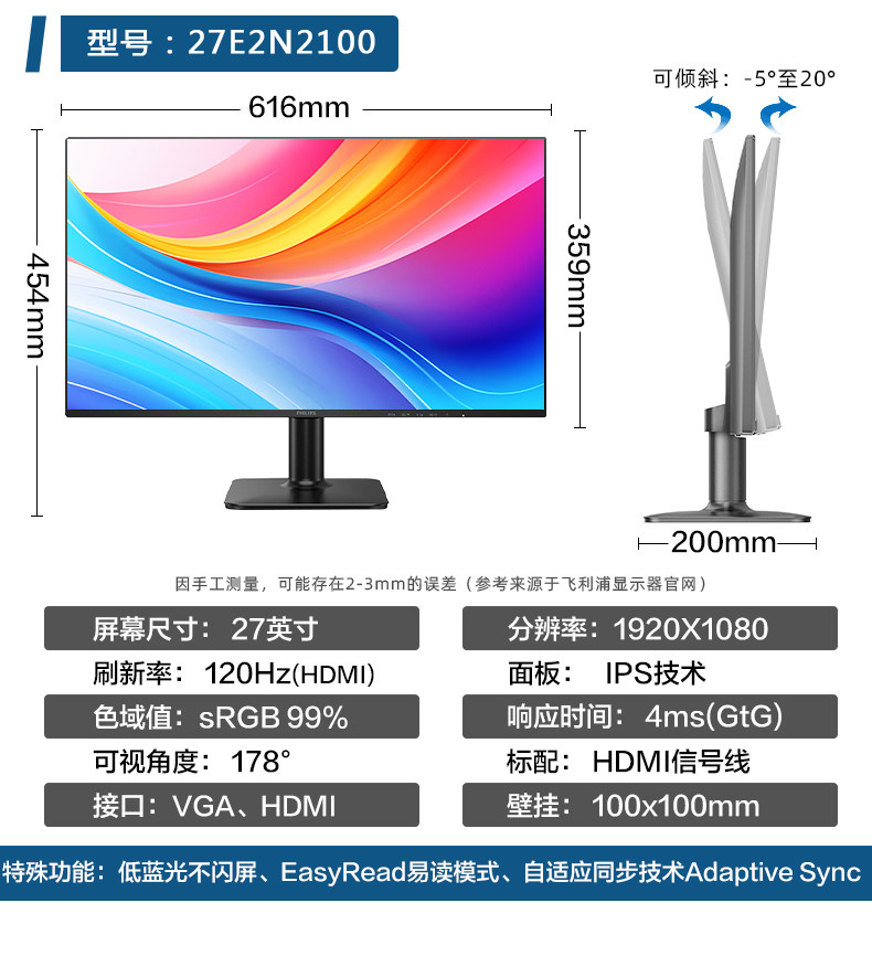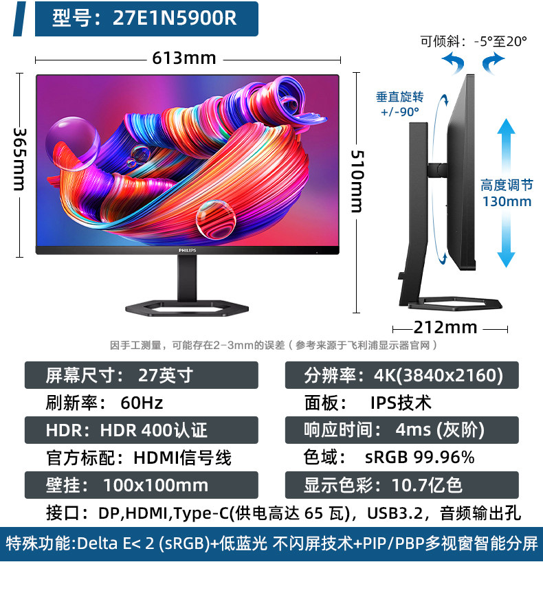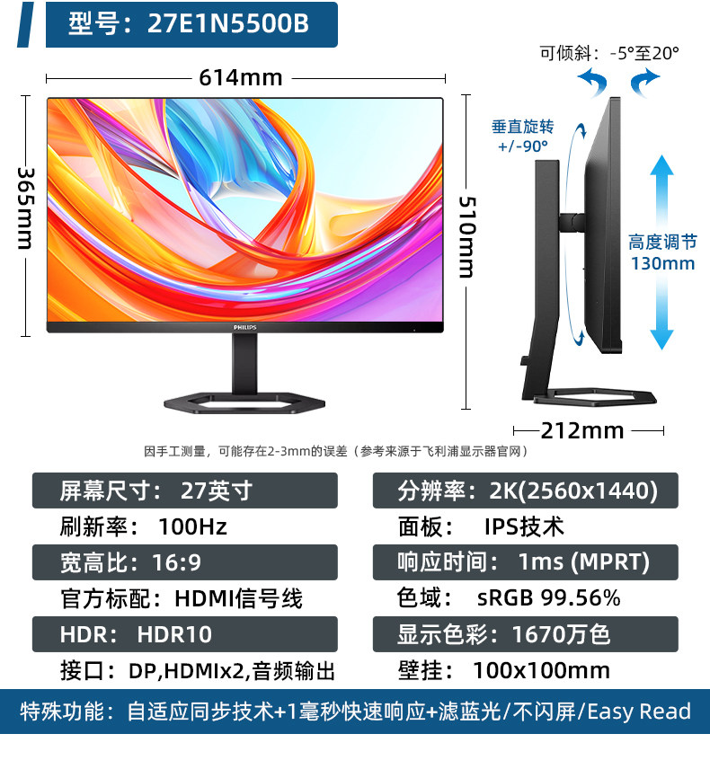 Philips Computer Monitor 24/ 27inch Frameless Ips Screen Liftable Design Office High-Definition Wide Color Gamut